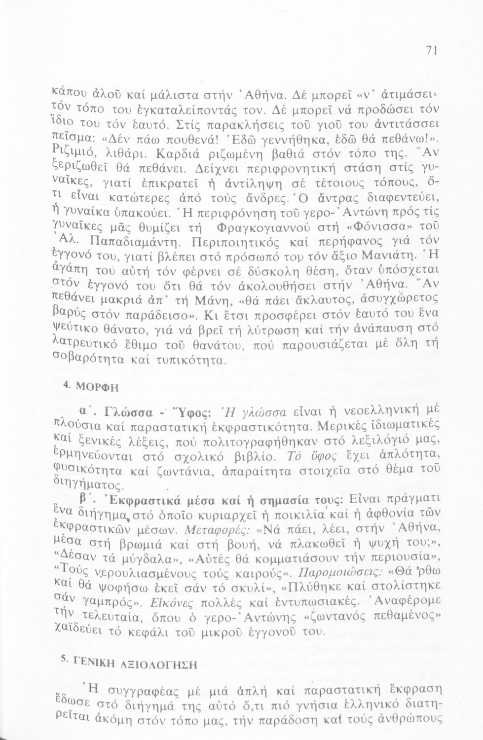 Σχολικό εγχειρίδιο Νέων Ελληνικών Δ΄ Γυμνασίου και Β΄ Αστικού Σχολείου που περιέχει πεζά και ποιήματα Ελλήνων συγγραφέων εμπνευσμένα από τη θρησκευτική και κοινωνική ζωή, την ελληνική μυθολογία, την αρχαία και
