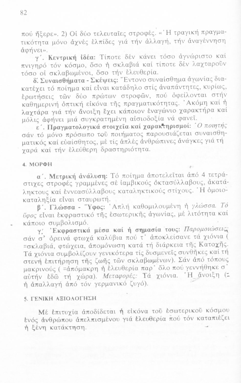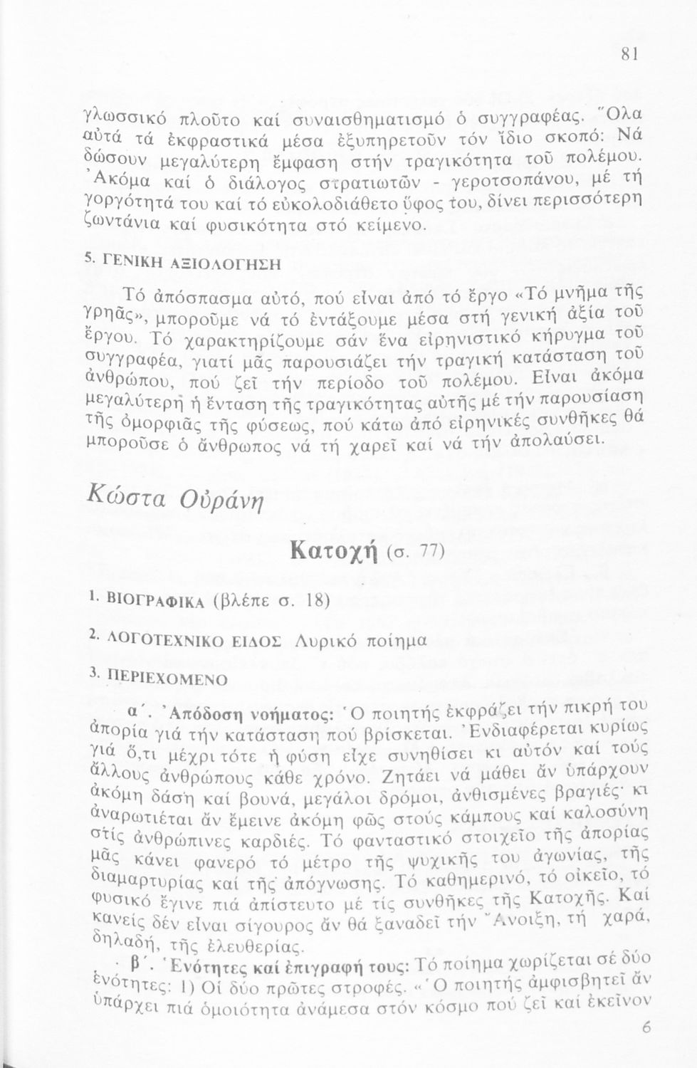 Μαθητικό βοήθημα Νέων Ελληνικών για την Ε΄ και ΣΤ΄ Γυμνασίου που περιλαμβάνει αναλύσεις των κειμένων των αντίστοιχων σχολικών εγχειριδίων από νοηματική, ερμηνευτική και γλωσσική σκοπιά. Περιέχει και βιογραφίες
