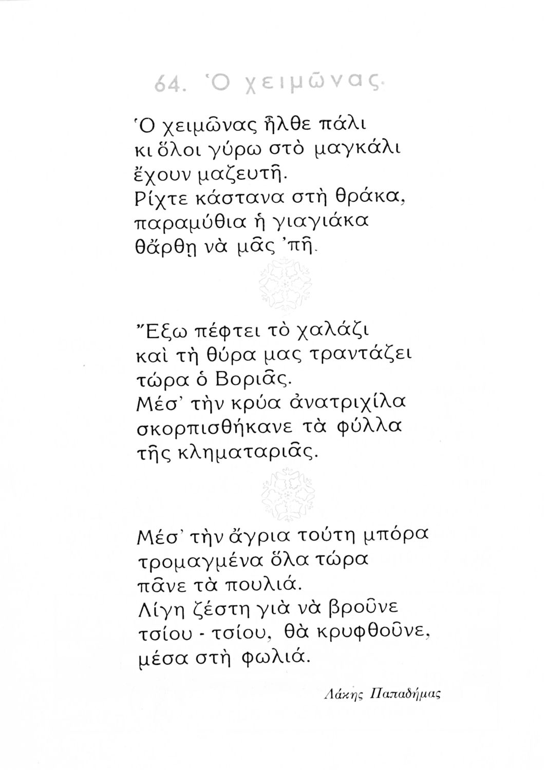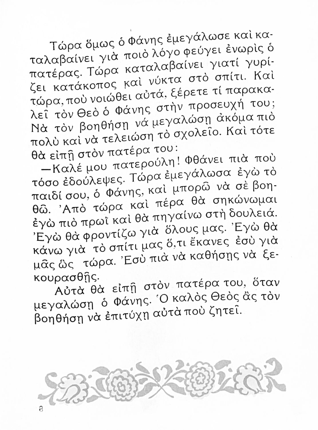 Αναγνωστικό Β' Δημοτικού που είναι χωρισμένο σύμφωνα με τις εποχές του χρόνου και περιλαμβάνει κείμενα ηθοποιητικού περιεχομένου εμπνευσμένα από τη θρησκευτική, εθνική, κοινωνική και οικογενειακή ζωή.