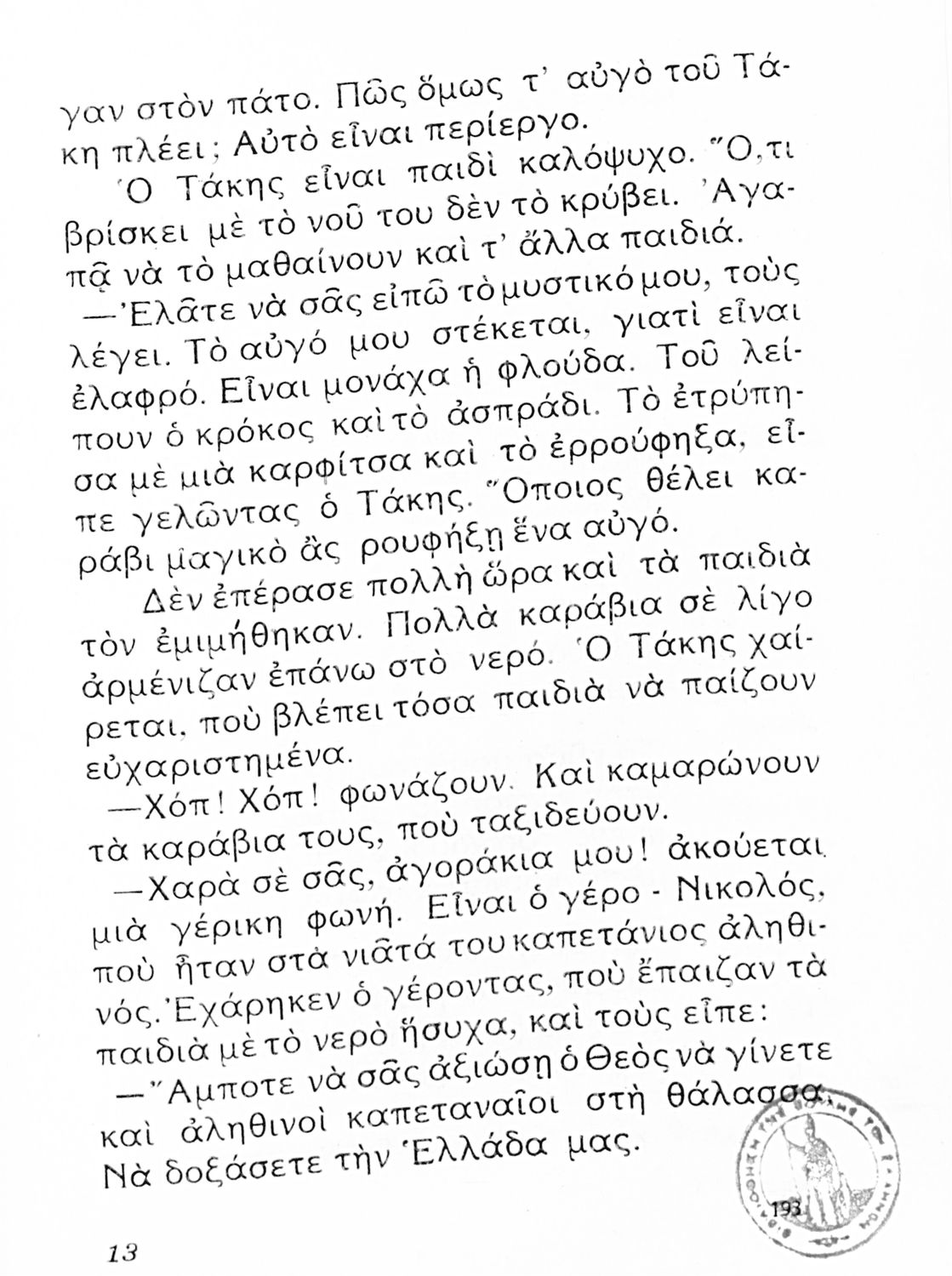 Παρουσίαση περιεχομένου: Αναγνωστικό Β' Δημοτικού που είναι χωρισμένο σύμφωνα με τις εποχές του χρόνου και περιλαμβάνει κείμενα ηθοποιητικού περιεχομένου εμπνευσμένα από τη θρησκευτική, εθνική, κοινωνική και οικογενειακή ζωή.