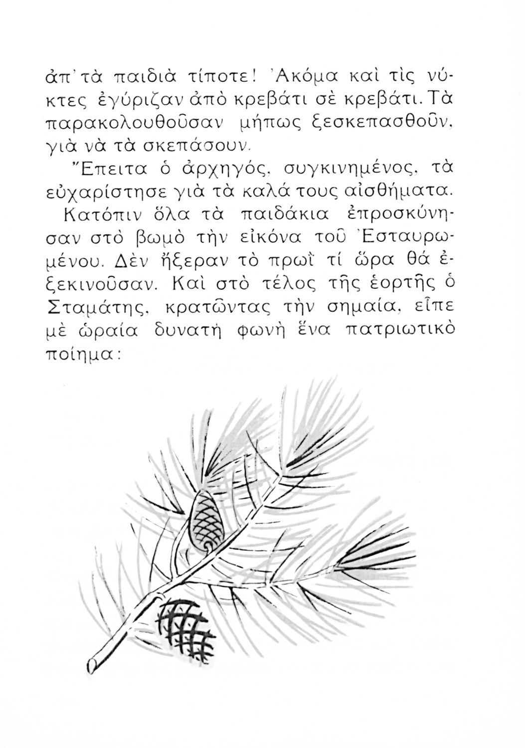 Αναγνωστικό Β' Δημοτικού που είναι χωρισμένο σύμφωνα με τις εποχές του χρόνου και περιλαμβάνει κείμενα ηθοποιητικού περιεχομένου εμπνευσμένα από τη θρησκευτική, εθνική, κοινωνική και οικογενειακή ζωή.