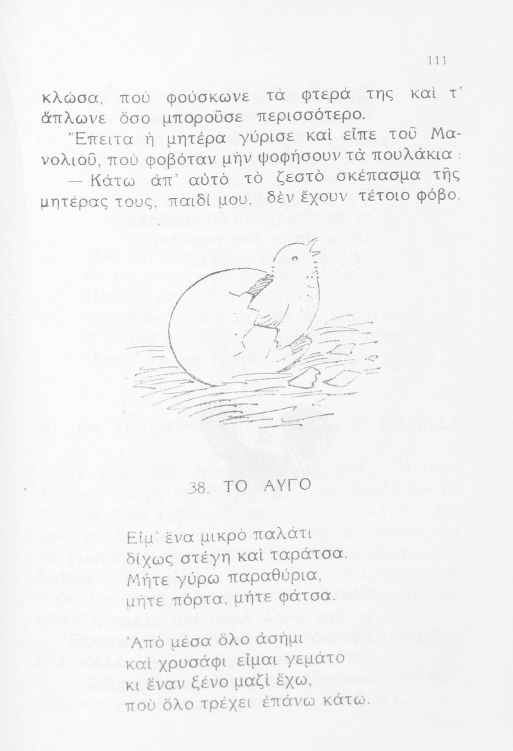Αναγνωστικό Γ' Δημοτικού που περιέχει πεζά και ποιήματα εμπνευσμένα από τη θρησκευτική, εθνική, κοινωνική και ατομική ζωή, και την ελληνική φύση, ιστορία και μυθολογία.