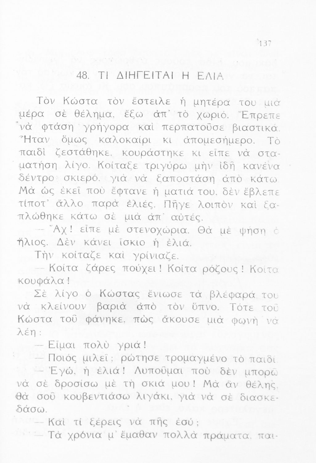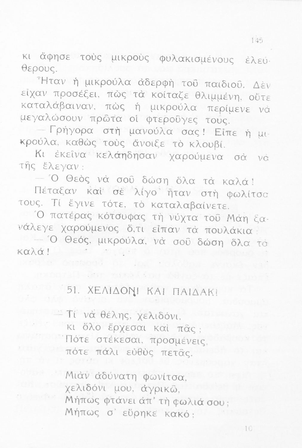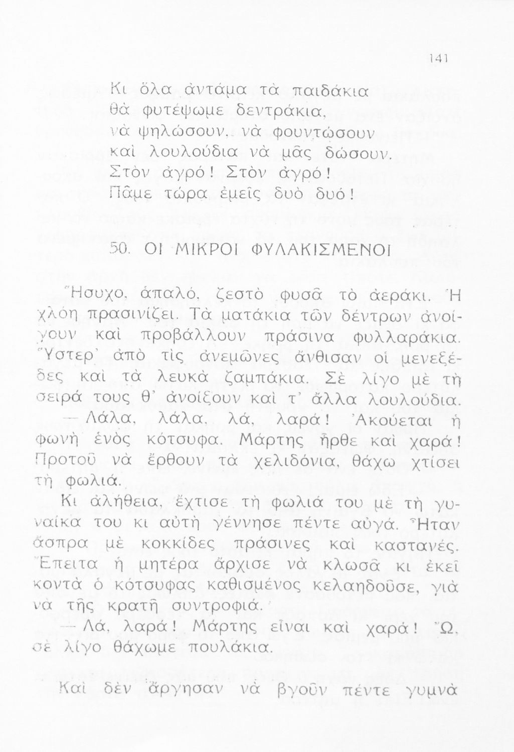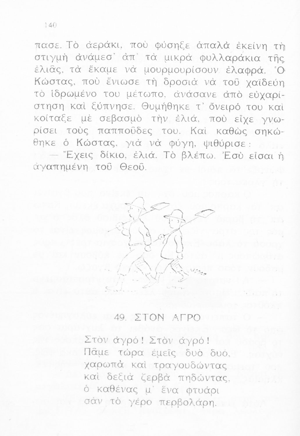 Αναγνωστικό Γ' Δημοτικού που περιέχει πεζά και ποιήματα εμπνευσμένα από τη θρησκευτική, εθνική, κοινωνική και ατομική ζωή, και την ελληνική φύση, ιστορία και μυθολογία.