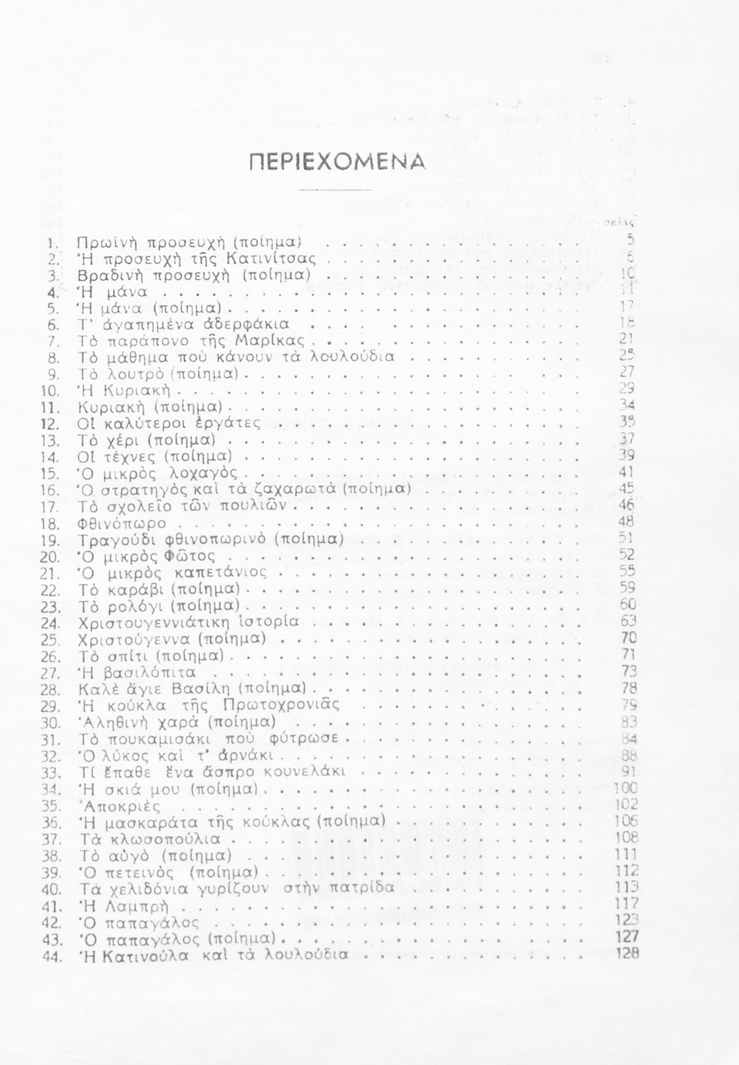 Αναγνωστικό Γ' Δημοτικού που περιέχει πεζά και ποιήματα εμπνευσμένα από τη θρησκευτική, εθνική, κοινωνική και ατομική ζωή, και την ελληνική φύση, ιστορία και μυθολογία.