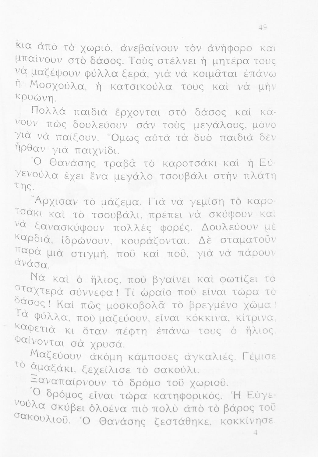 Αναγνωστικό Β΄ Δημοτικού που περιέχει κείμενα πεζά και ποιήματα ηθικοπλαστικού περιεχομένου εμπνευσμένα από την καθημερινότητα των παιδιών, τη θρησκευτική παράδοση, τις εποχές του χρόνου, και την ελληνική φύση.