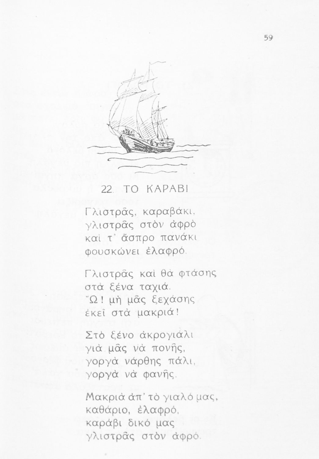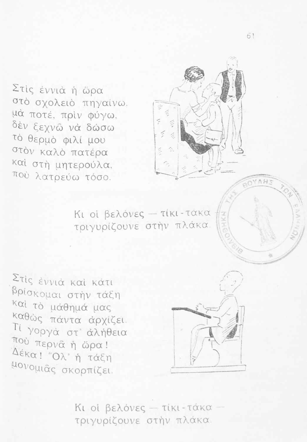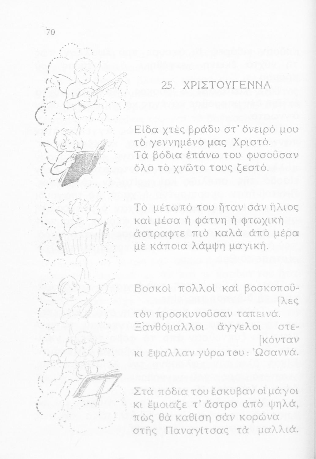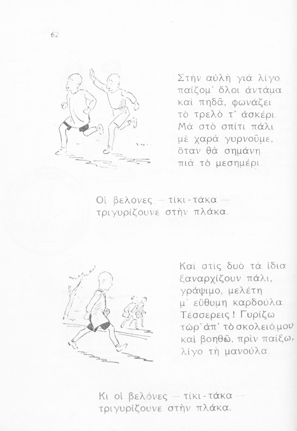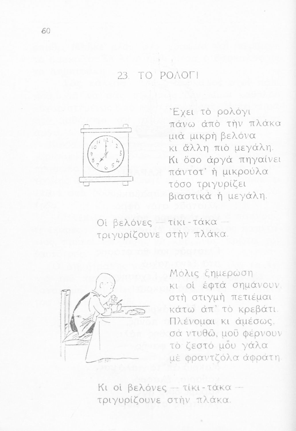 Αναγνωστικό Β΄ Δημοτικού που περιέχει κείμενα πεζά και ποιήματα ηθικοπλαστικού περιεχομένου εμπνευσμένα από την καθημερινότητα των παιδιών, τη θρησκευτική παράδοση, τις εποχές του χρόνου, και την ελληνική φύση.