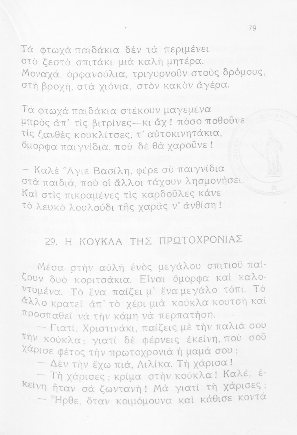 LDR 01303 2200205 4500 035 ## _a03-20555559 040 ## _aΒιβλιοθήκη της Βουλής των Ελλήνων 041 ## _ael 100 ## _aΑρσινόη Ταμπακοπούλου _aΘεώνη Δρακοπούλου (Μυρτιώτισσα) 110 ## _a20555559 245 0# _aΚρινολούλουδα. Αναγνωστικό για τη Δευτέρα Τάξη του Δημοτικού Σχολείου 260 ## _aΑθήνα _bΟργανισμός Εκδόσεως Διδακτικών Βιβλίων _c1947 300 ## _a160 _bΣκίτσα, εικόνες, (ασπρόμαυρα) 520 ## _aΑναγνωστικό Β΄ Δημοτικού που περιέχει κείμενα πεζά και ποιήματα ηθικοπλαστικού περιεχομένου εμπνευσμένα από την καθημερινότητα των παιδιών, τη θρησκευτική παράδοση, τις εποχές του χρόνου, και την ελληνική φύση. 521 ## _aΒ' Δημοτικού 522 ## _aΕλλάδα 546 ## _aΔημοτική 563 ## _aΣκληρό Εξώφυλλο 650 #4 _aΕλληνική ύπαιθρος _aΘρησκεία _aΟικογένεια 700 ## _aΑντ. Βώττης