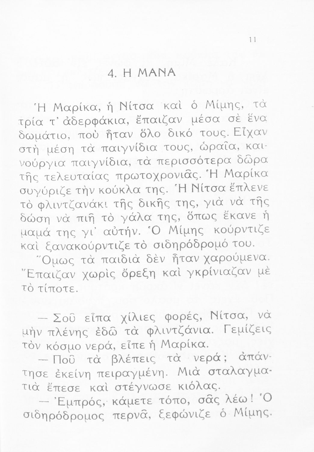 Αναγνωστικό για τους μαθητές της Δ΄ Δημοτικού που περιλαμβάνει ποιήματα και πεζά με θέματα από την καθημερινή ζωή των Ελλήνων, τη φύση, την ιστορία και την θρησκεία τους.