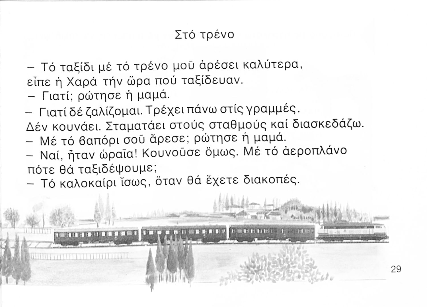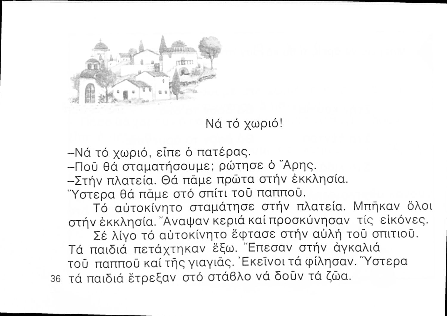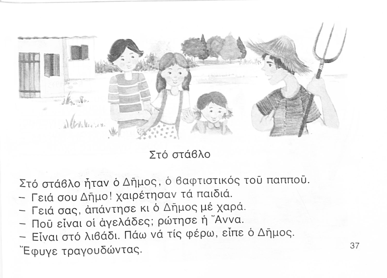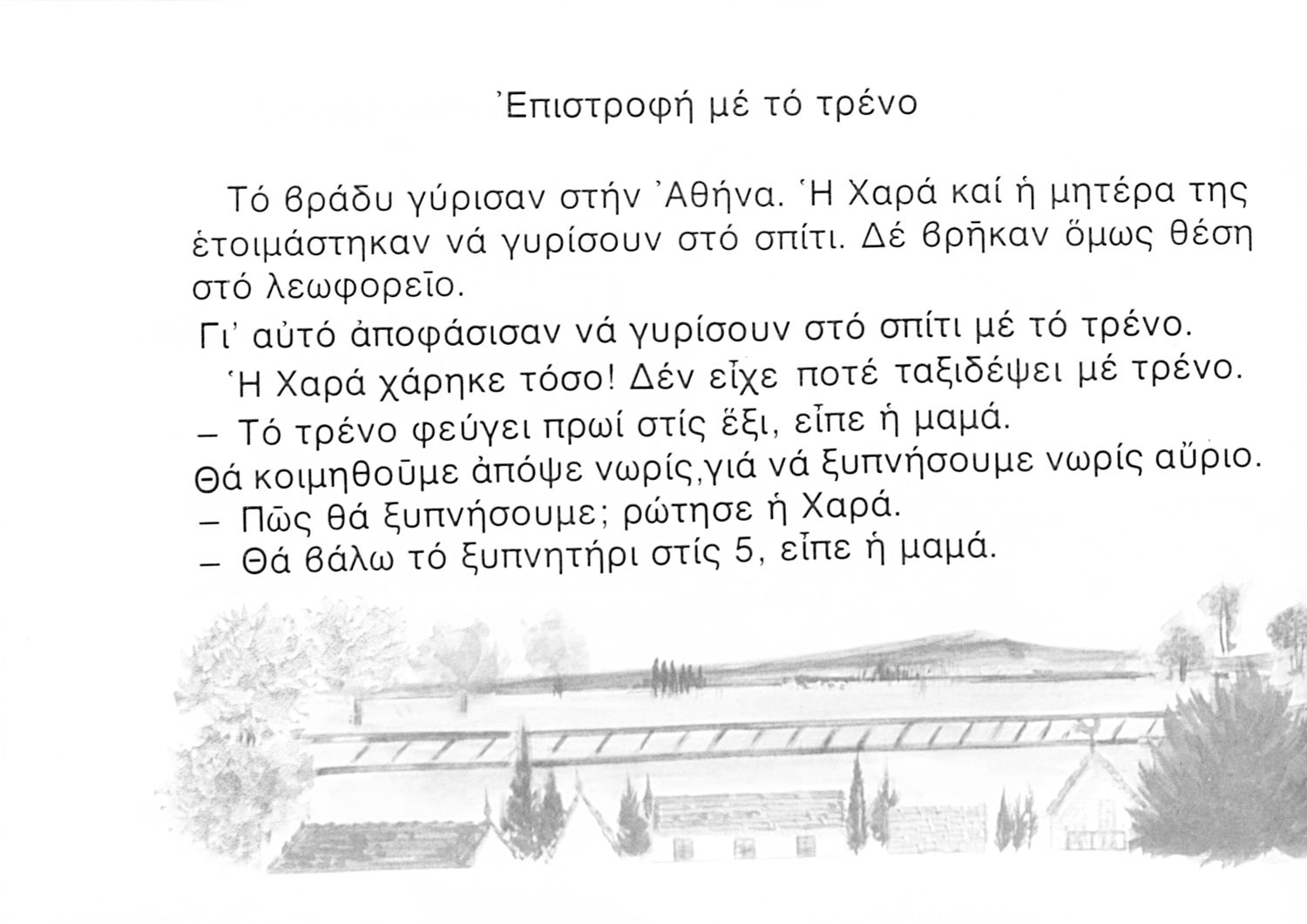 Αναγνωστικό Α΄ Δημοτικού που περιέχει λέξεις, προτάσεις και σύντομα κείμενα Ελλήνων συγγραφέων τα οποία αντλούν τα θέματά τους από την καθημερινή ζωή των ανθρώπων, την ελληνική ύπαιθρο, την αγροτική ζωή και τον οικογενειακό περίγυρο.