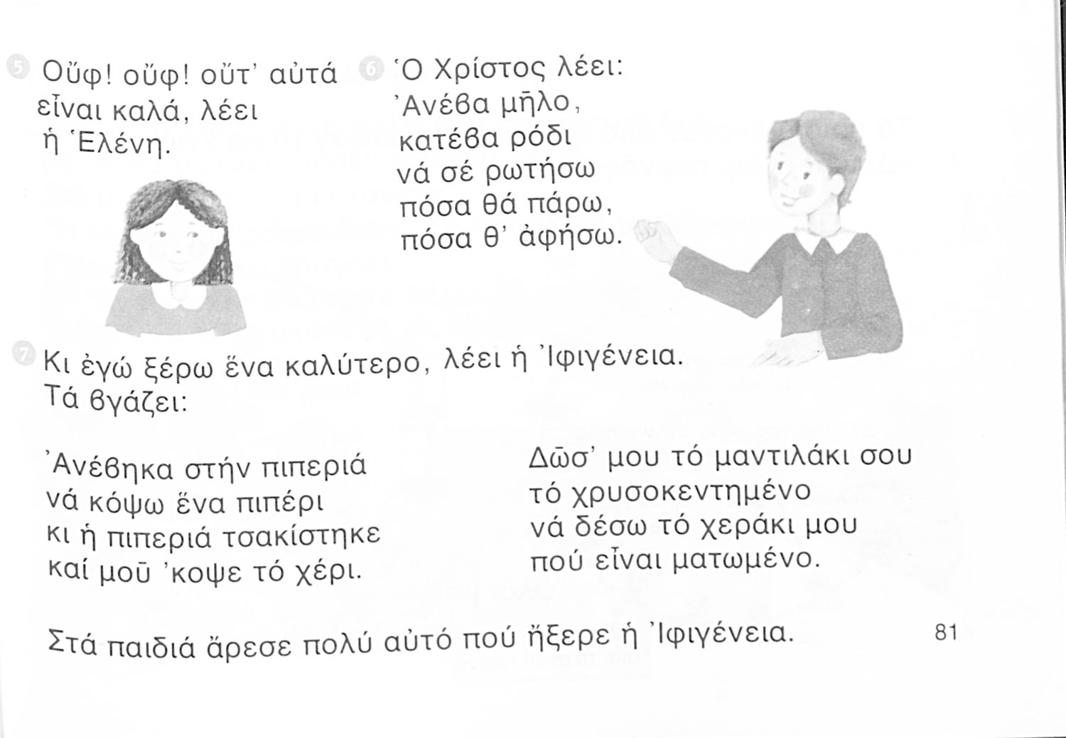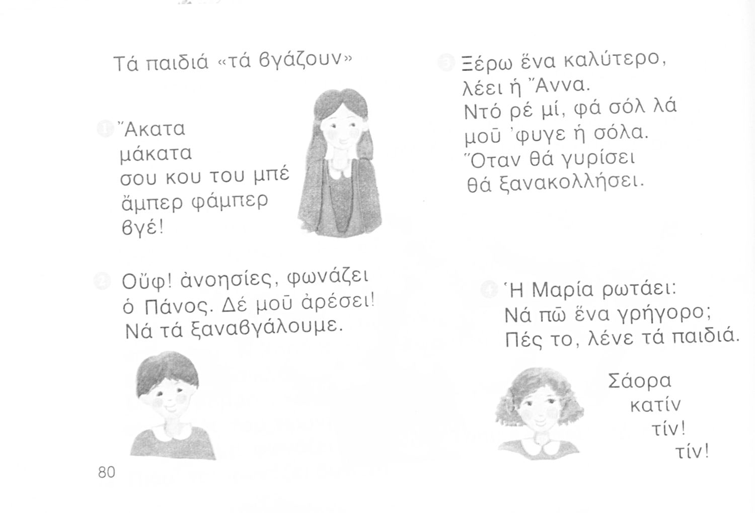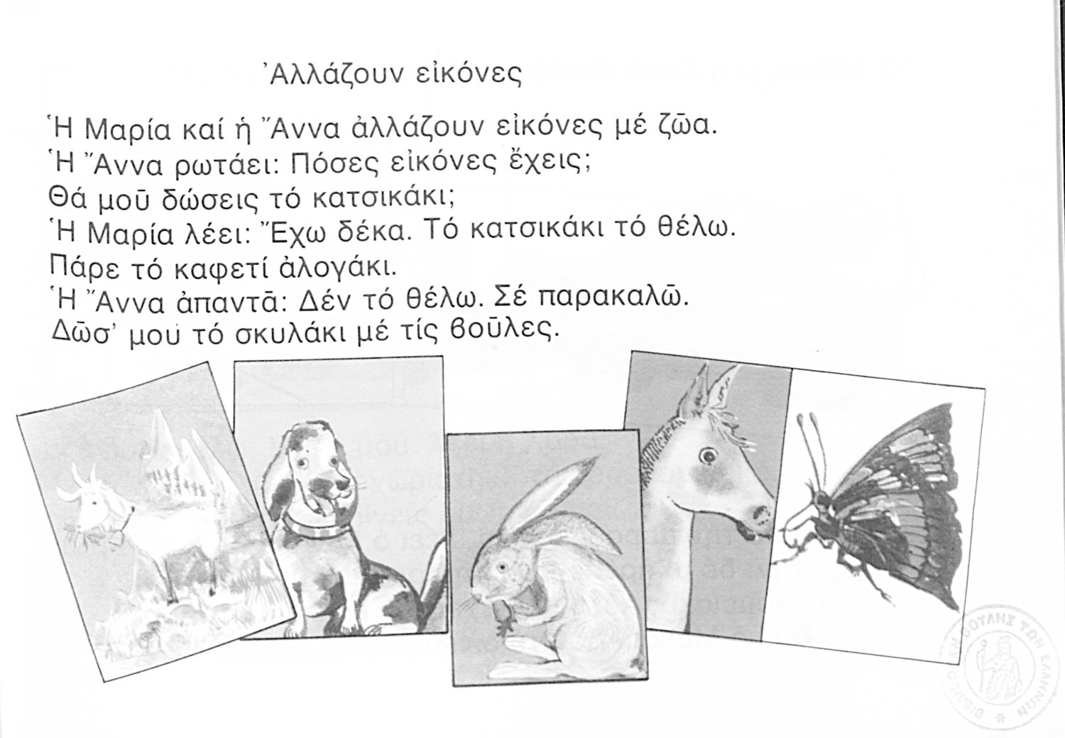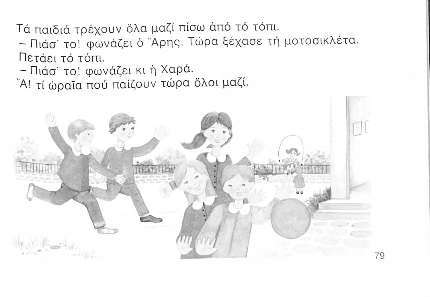 Αναγνωστικό Α΄ Δημοτικού που περιέχει λέξεις, προτάσεις και σύντομα κείμενα Ελλήνων συγγραφέων τα οποία αντλούν τα θέματά τους από την καθημερινή ζωή των ανθρώπων, την ελληνική ύπαιθρο, την αγροτική ζωή και τον οικογενειακό περίγυρο.
