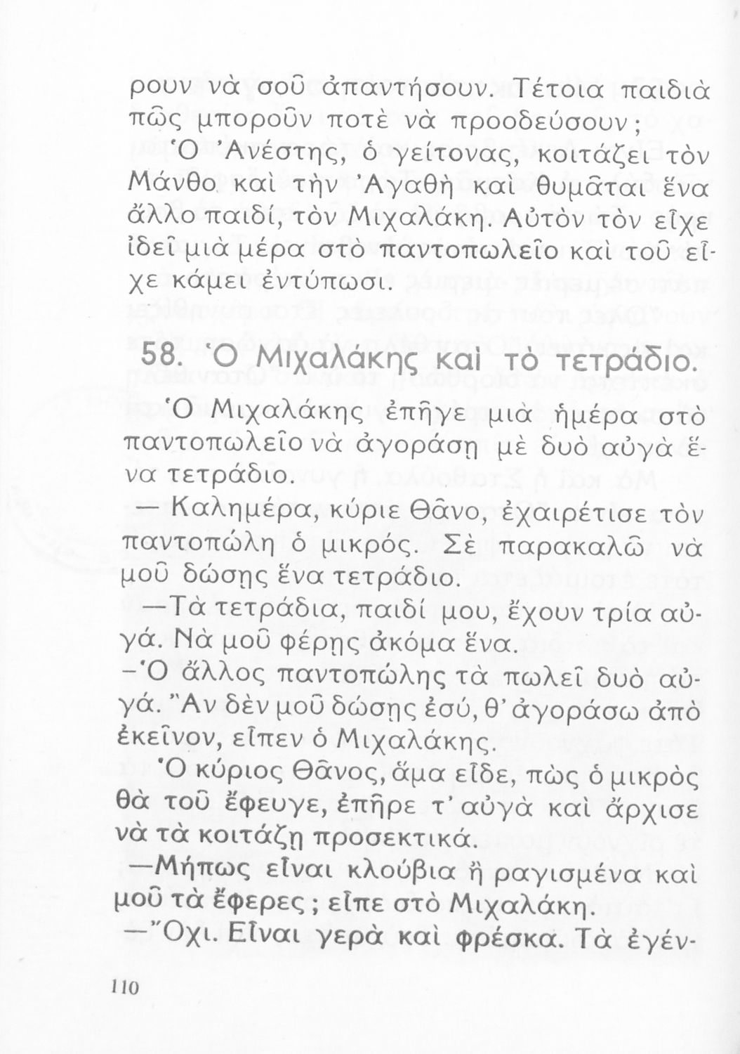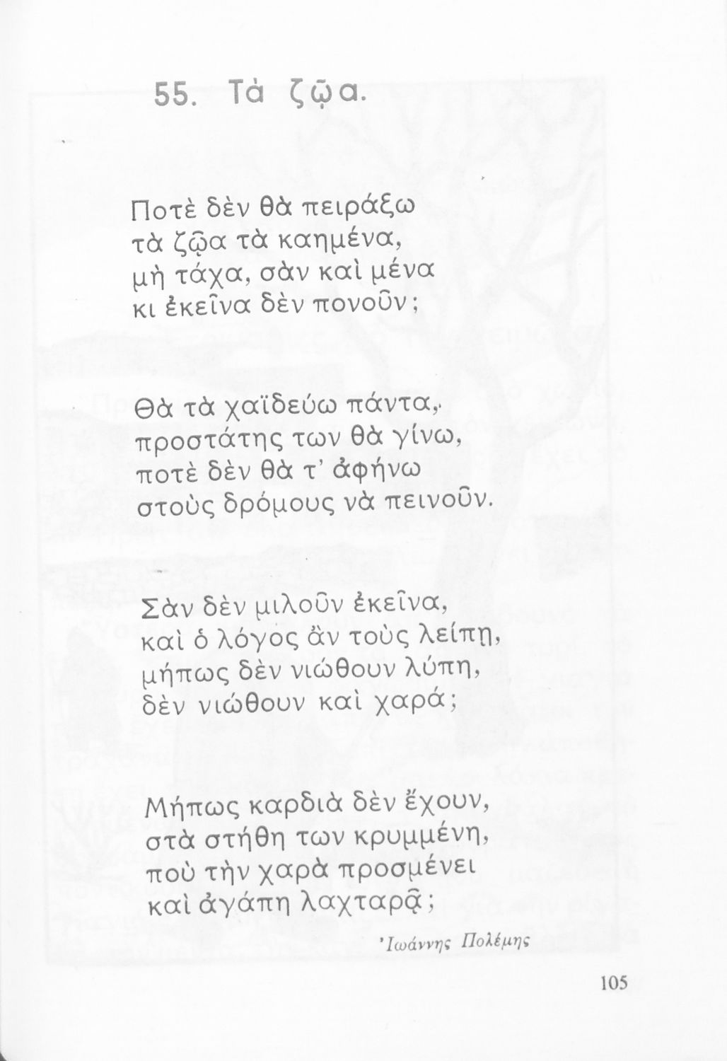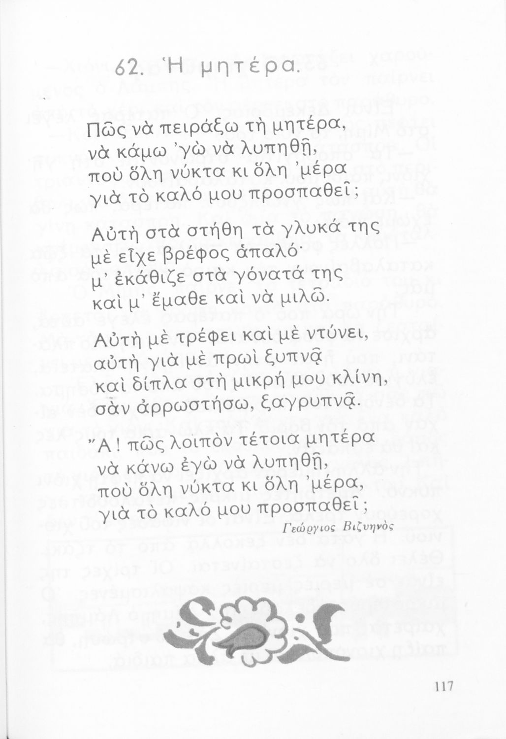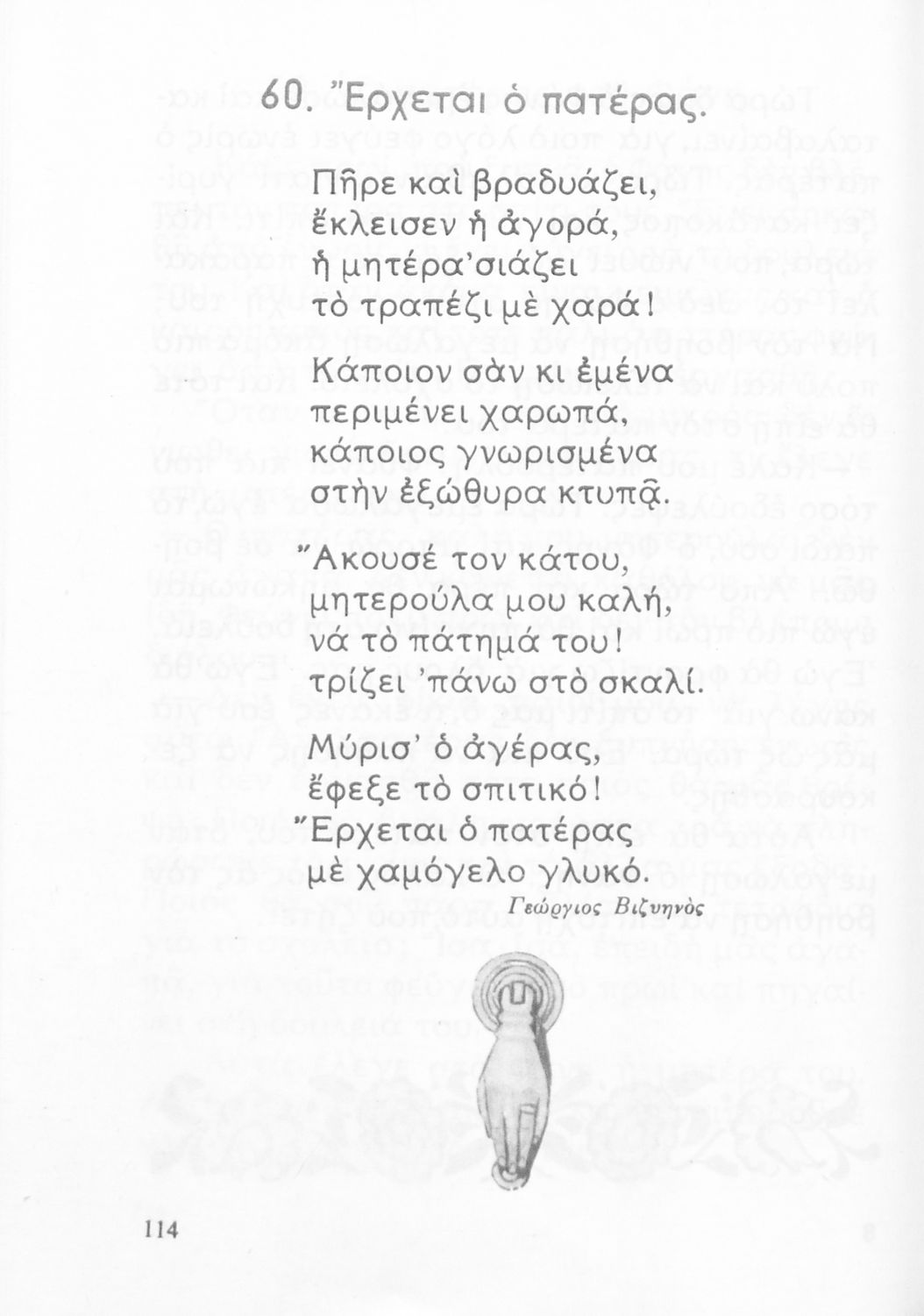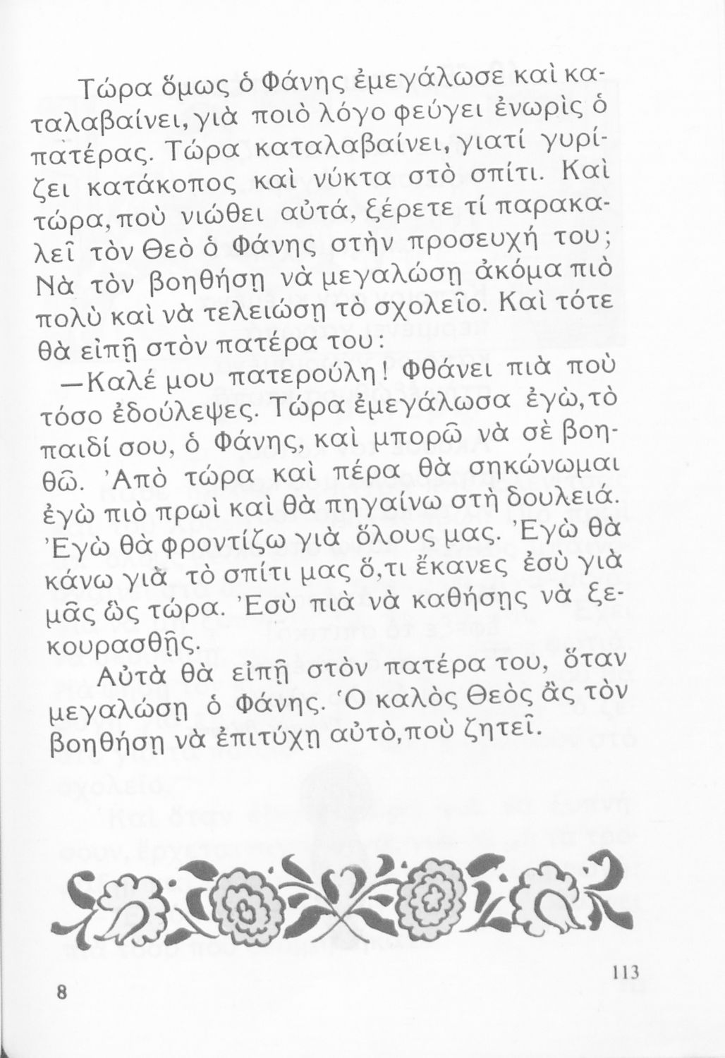 Αναγνωστικό Β' Δημοτικού που περιλαμβάνει ποιήματα και πεζά εμπνευσμένα από την καθημερινή ζωή, την ελληνική μυθολογία, την ελληνική φύση και τη θρησκευτική παράδοση.