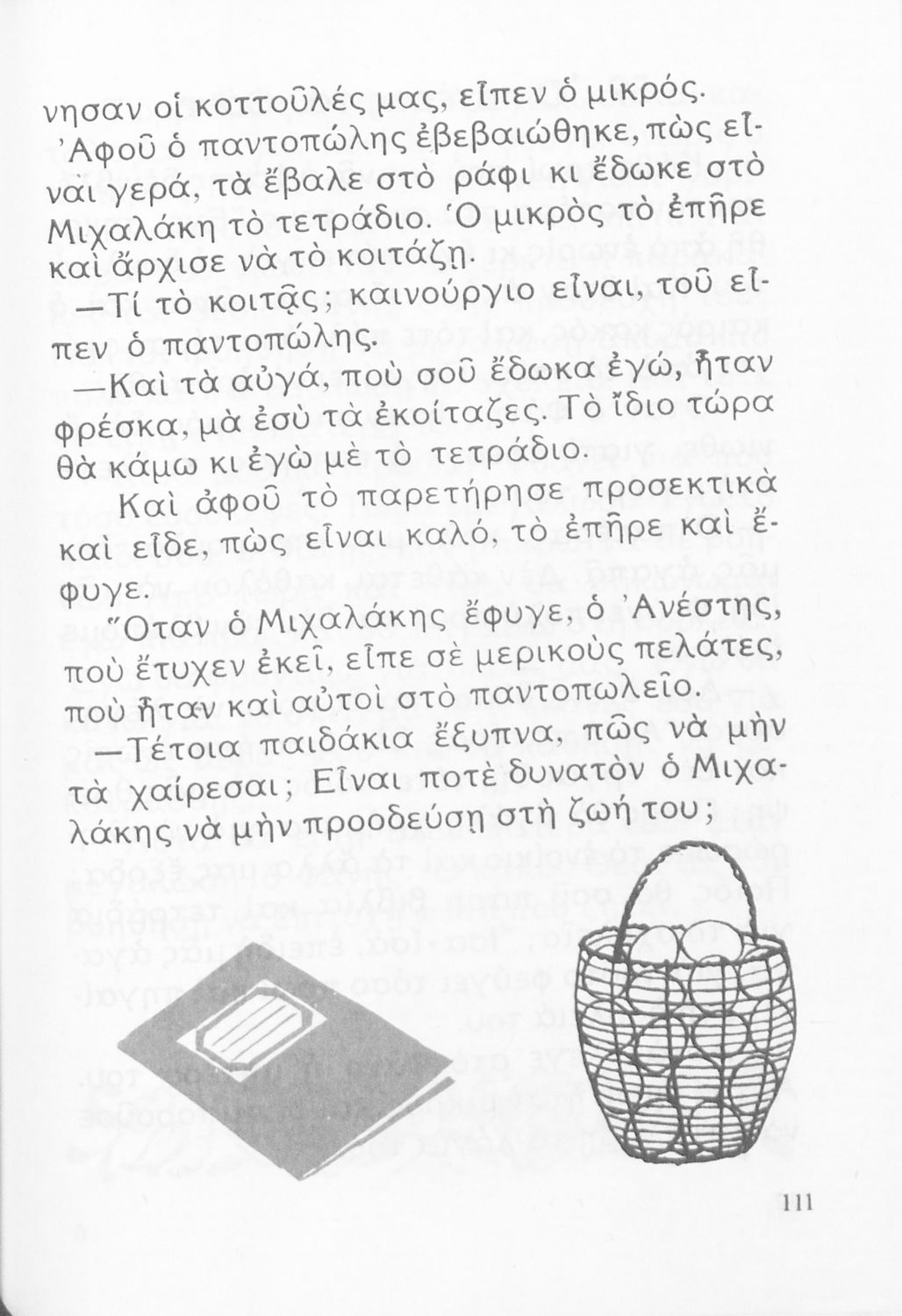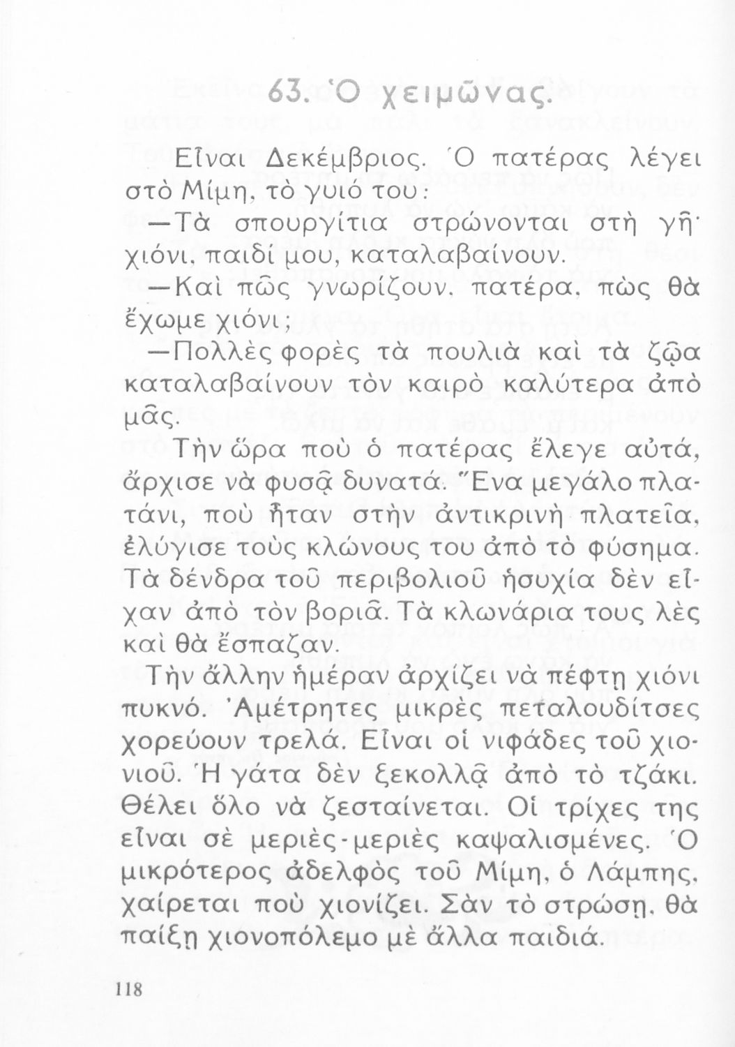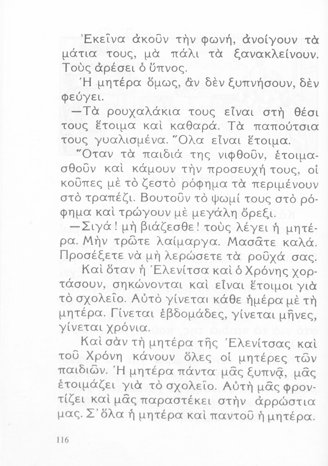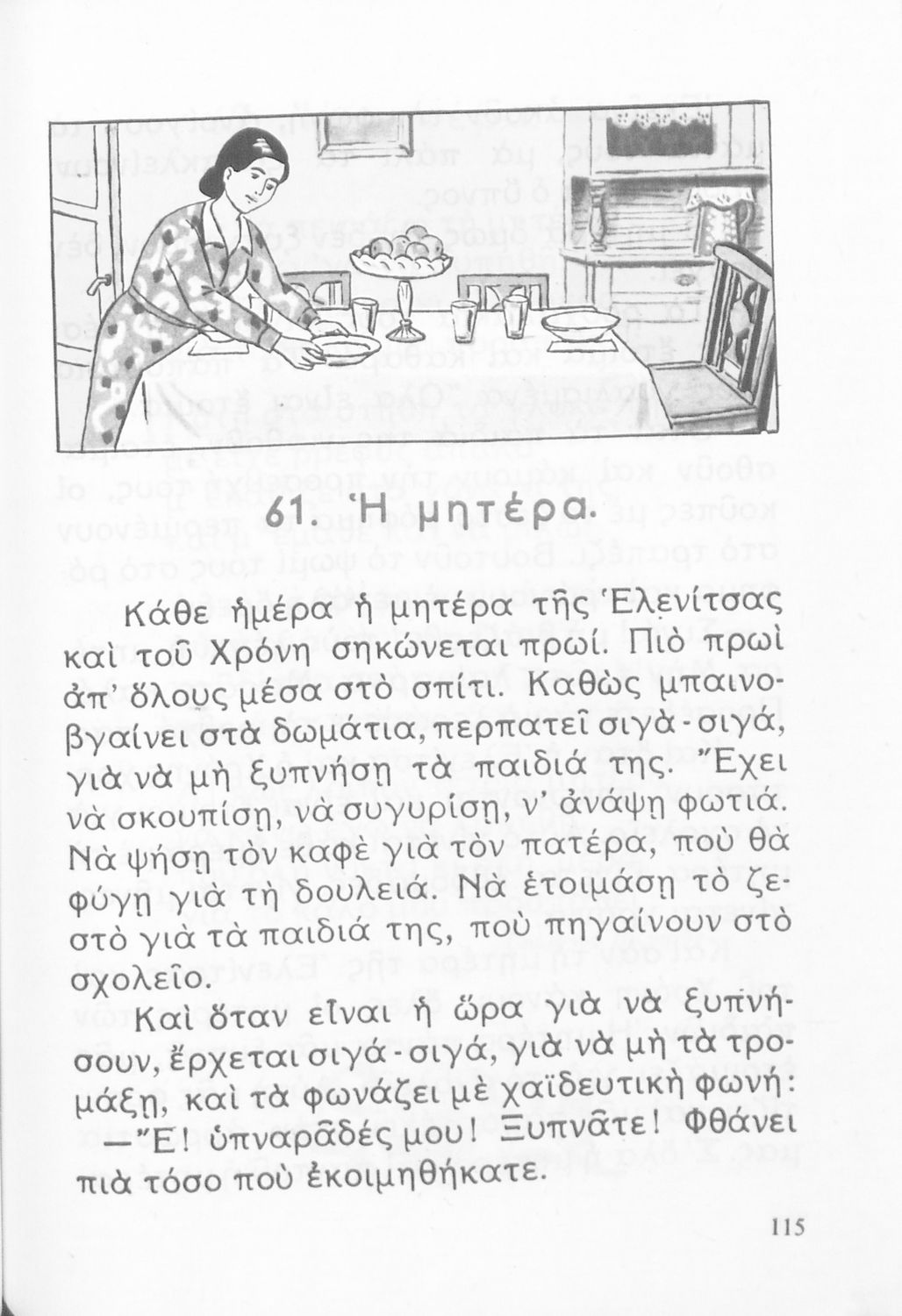 Αναγνωστικό Β' Δημοτικού που περιλαμβάνει μικρά διηγήματα και ποιήματα με περιεχόμενο από την οικογενειακή και κοινωνική ζωή, την ελληνική φύση, την ελληνική ιστορία και μυθολογία και την υγιεινή.