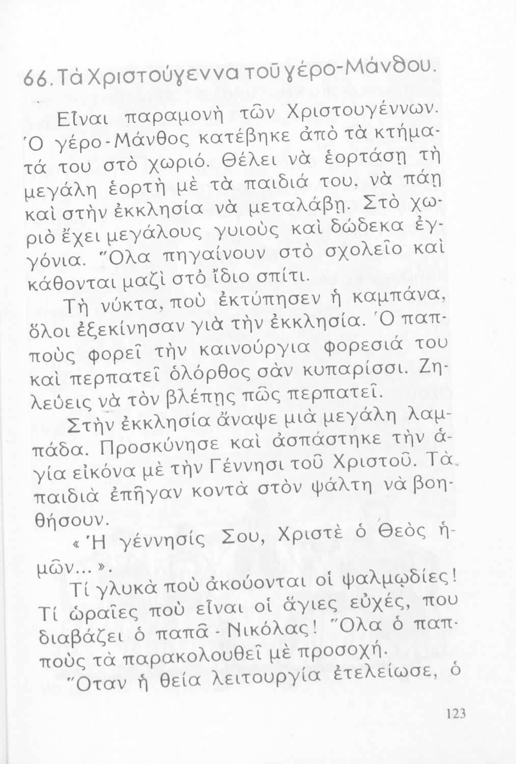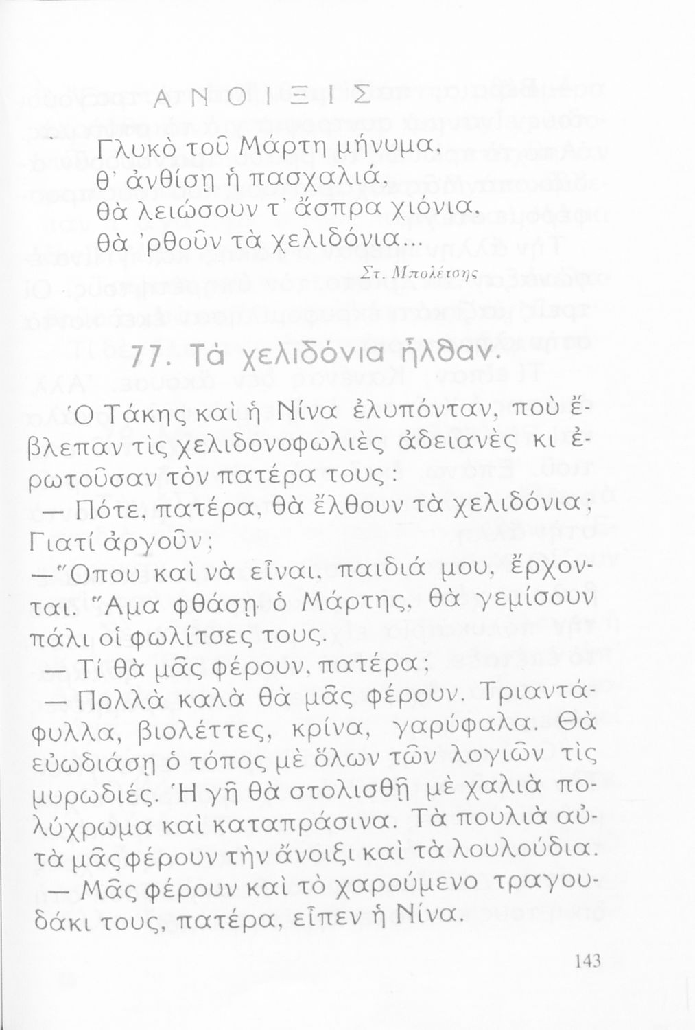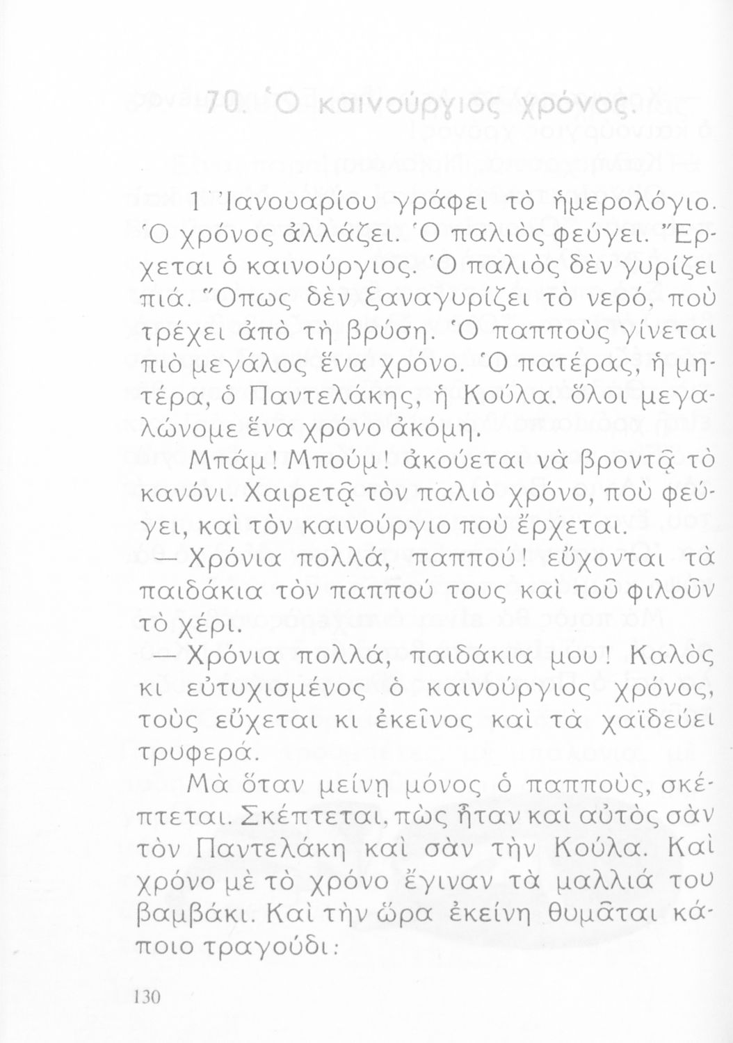 Αναγνωστικό Β' Δημοτικού που είναι χωρισμένο σύμφωνα με τις εποχές του χρόνου και περιλαμβάνει κείμενα ηθοποιητικού περιεχομένου εμπνευσμένα από τη θρησκευτική, εθνική, κοινωνική και οικογενειακή ζωή.