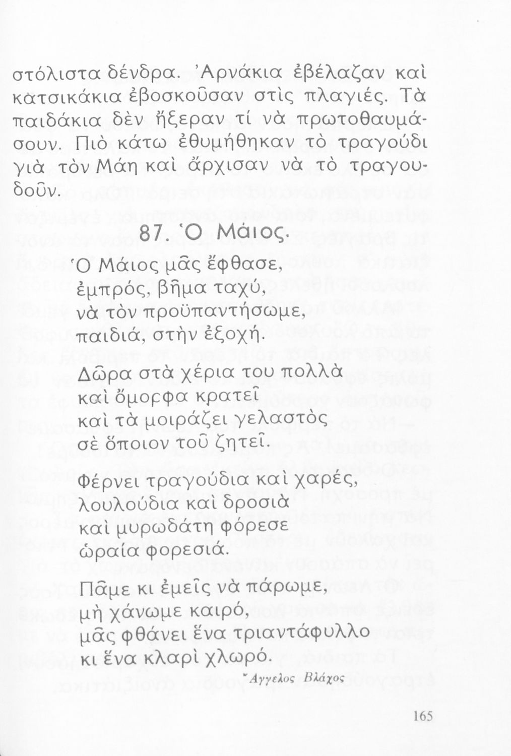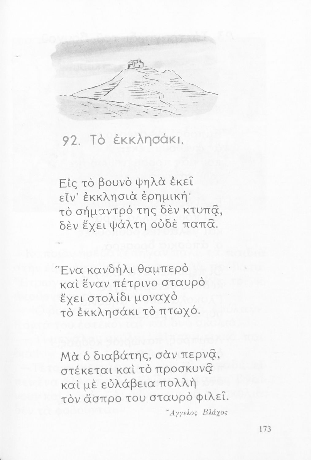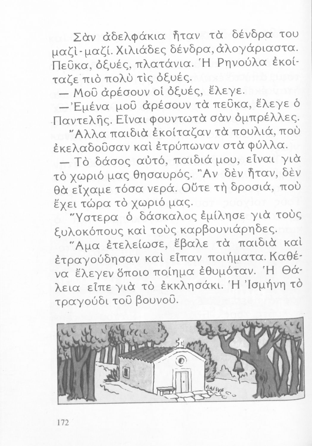 Αναγνωστικό Β' Δημοτικού που περιλαμβάνει ποιήματα και πεζά εμπνευσμένα από την καθημερινή ζωή, την ελληνική μυθολογία, την ελληνική φύση και τη θρησκευτική παράδοση.