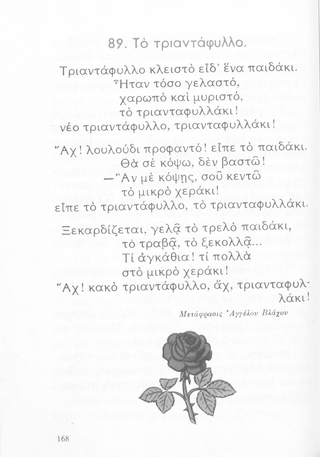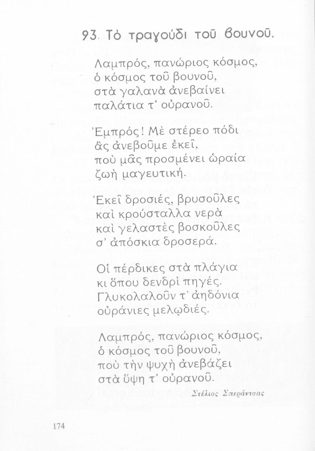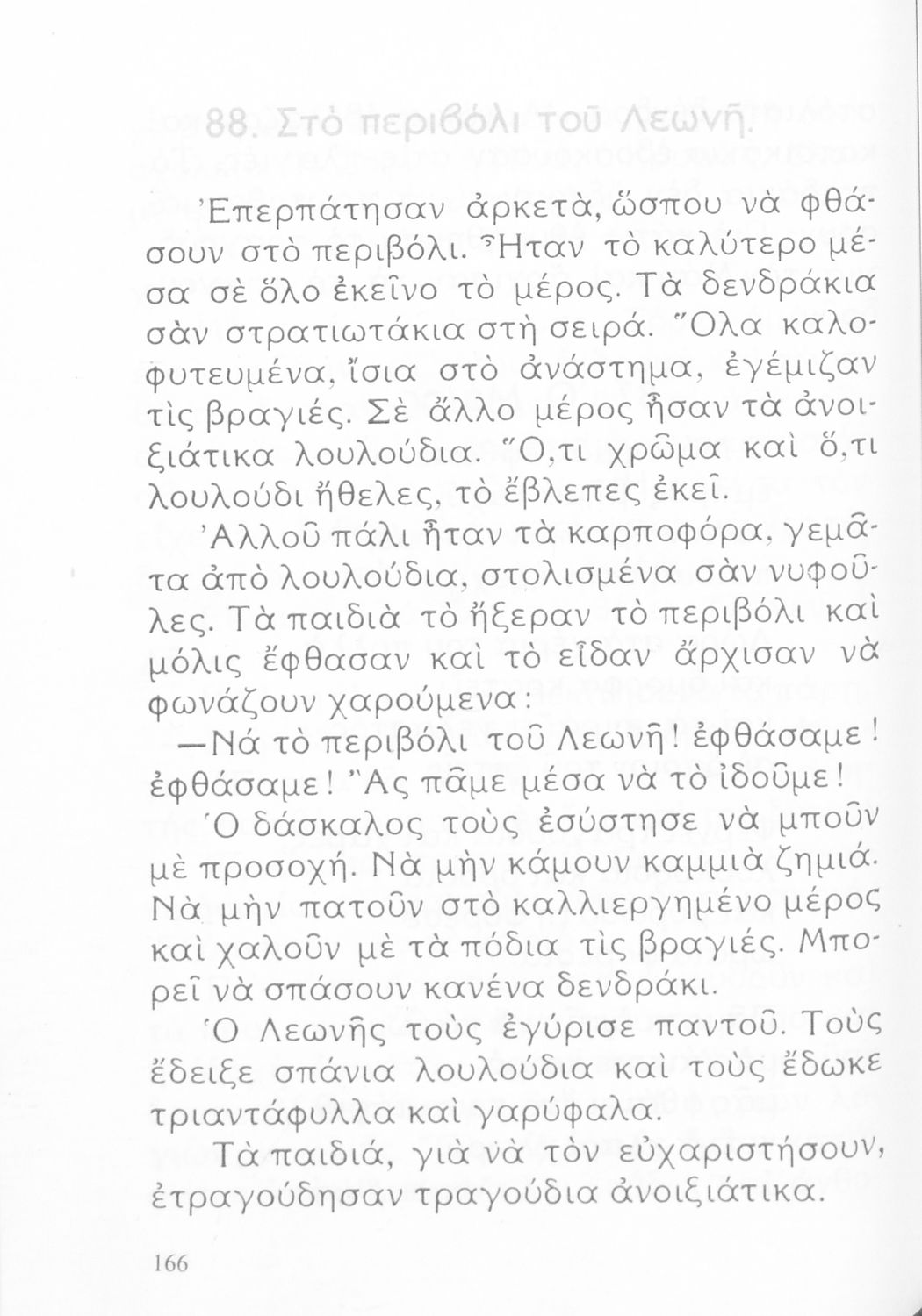 Αναγνωστικό Β' Δημοτικού που περιλαμβάνει ποιήματα και πεζά εμπνευσμένα από την καθημερινή ζωή, την ελληνική μυθολογία, την ελληνική φύση και τη θρησκευτική παράδοση.
