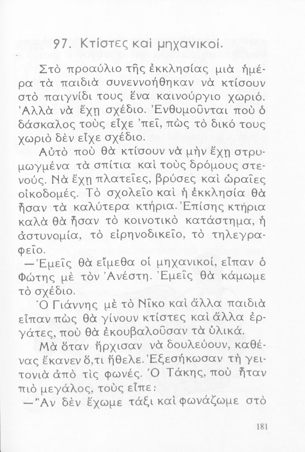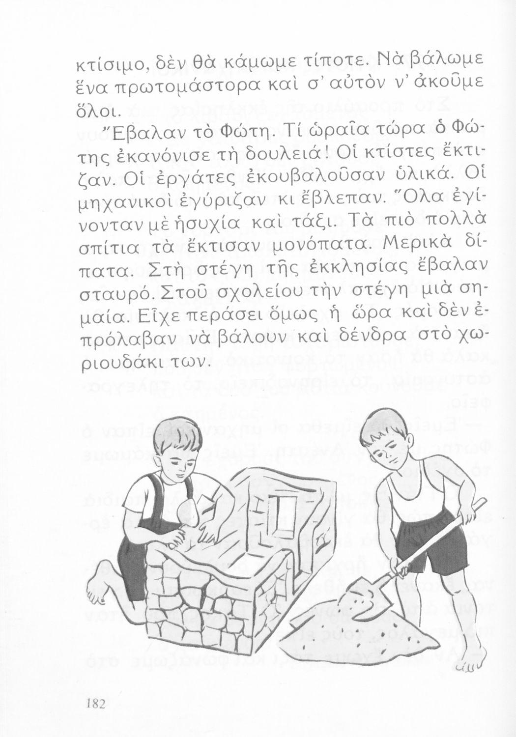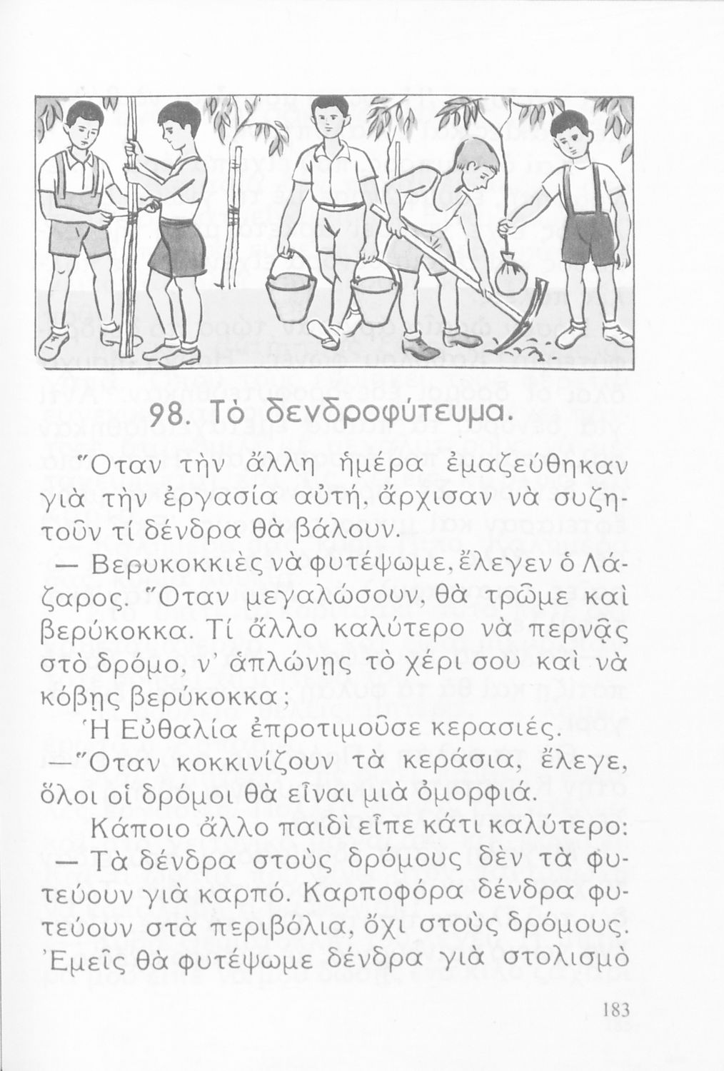 Αναγνωστικό Β' Δημοτικού που περιλαμβάνει μικρά διηγήματα και ποιήματα με περιεχόμενο από την οικογενειακή και κοινωνική ζωή, την ελληνική φύση, την ελληνική ιστορία και μυθολογία και την υγιεινή.