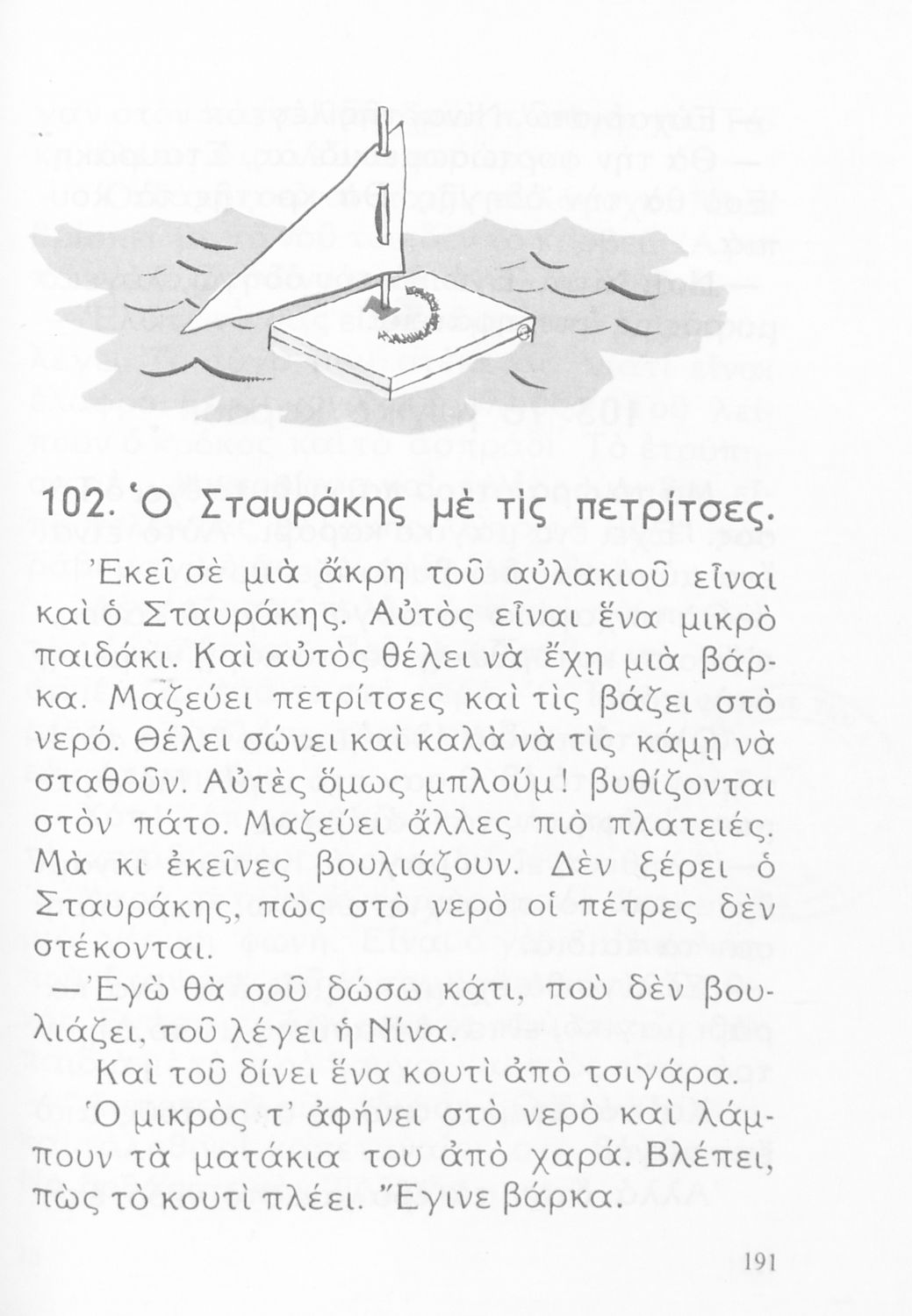 Αναγνωστικό Β' Δημοτικού που είναι χωρισμένο σύμφωνα με τις εποχές του χρόνου και περιλαμβάνει κείμενα ηθοποιητικού περιεχομένου εμπνευσμένα από τη θρησκευτική, εθνική, κοινωνική και οικογενειακή ζωή.