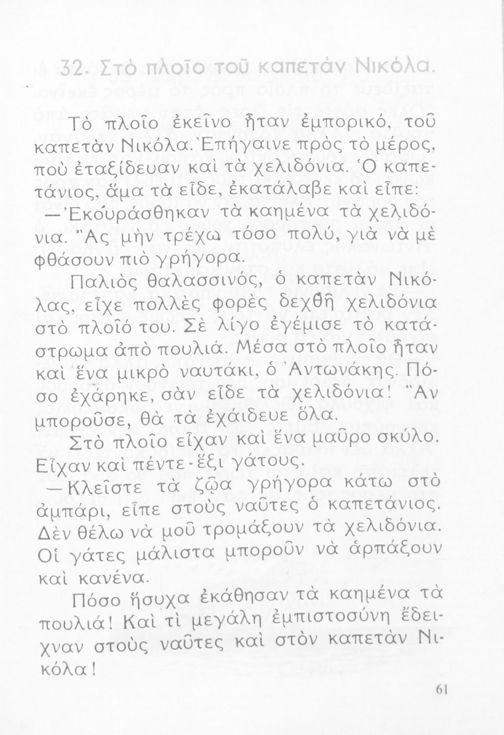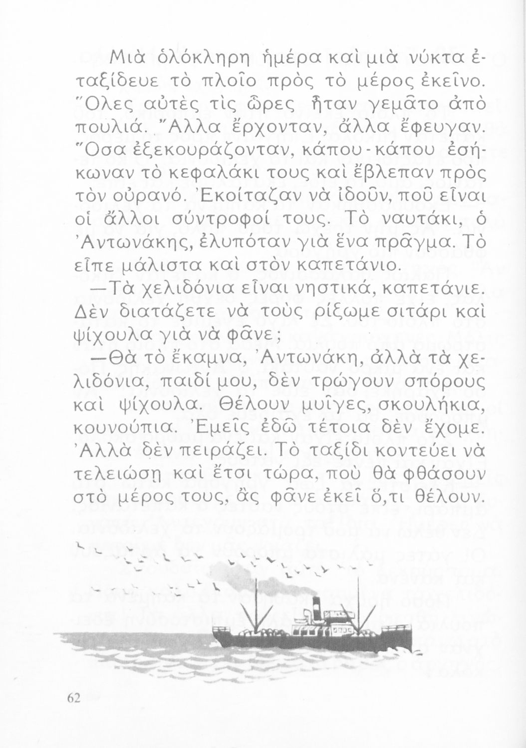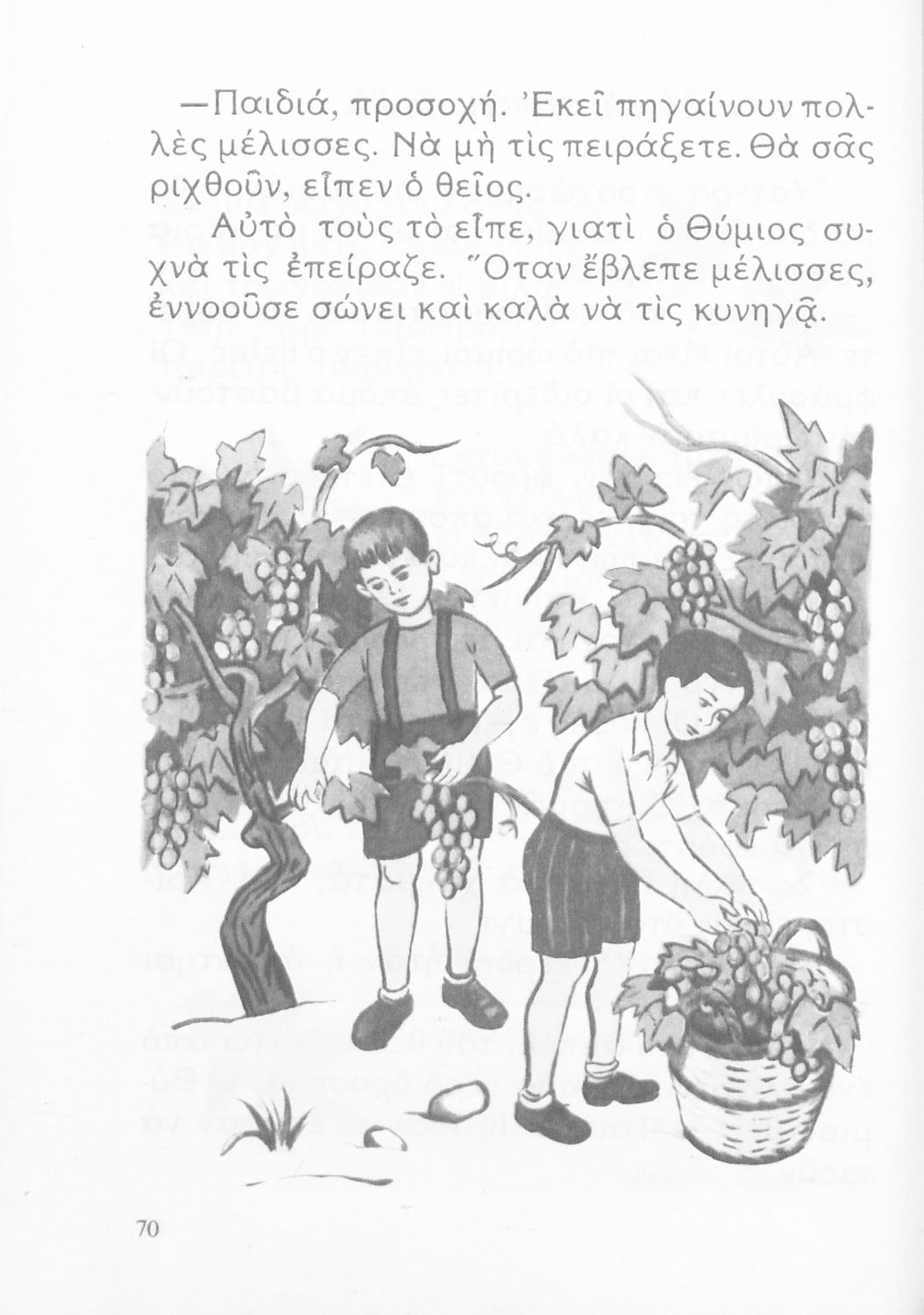 Αναγνωστικό Β' Δημοτικού που περιλαμβάνει μικρά διηγήματα και ποιήματα με περιεχόμενο από την οικογενειακή και κοινωνική ζωή, την ελληνική φύση, την ελληνική ιστορία και μυθολογία και την υγιεινή.