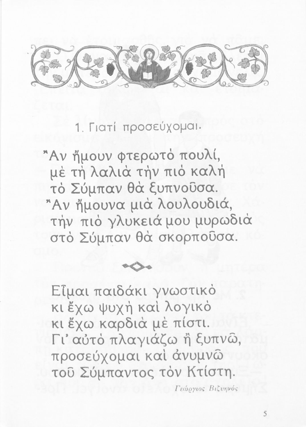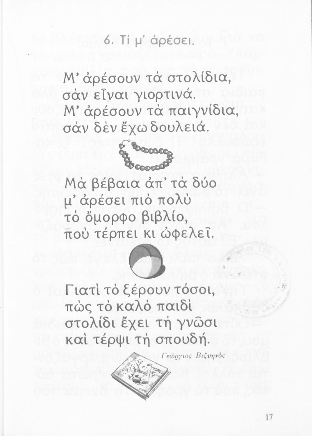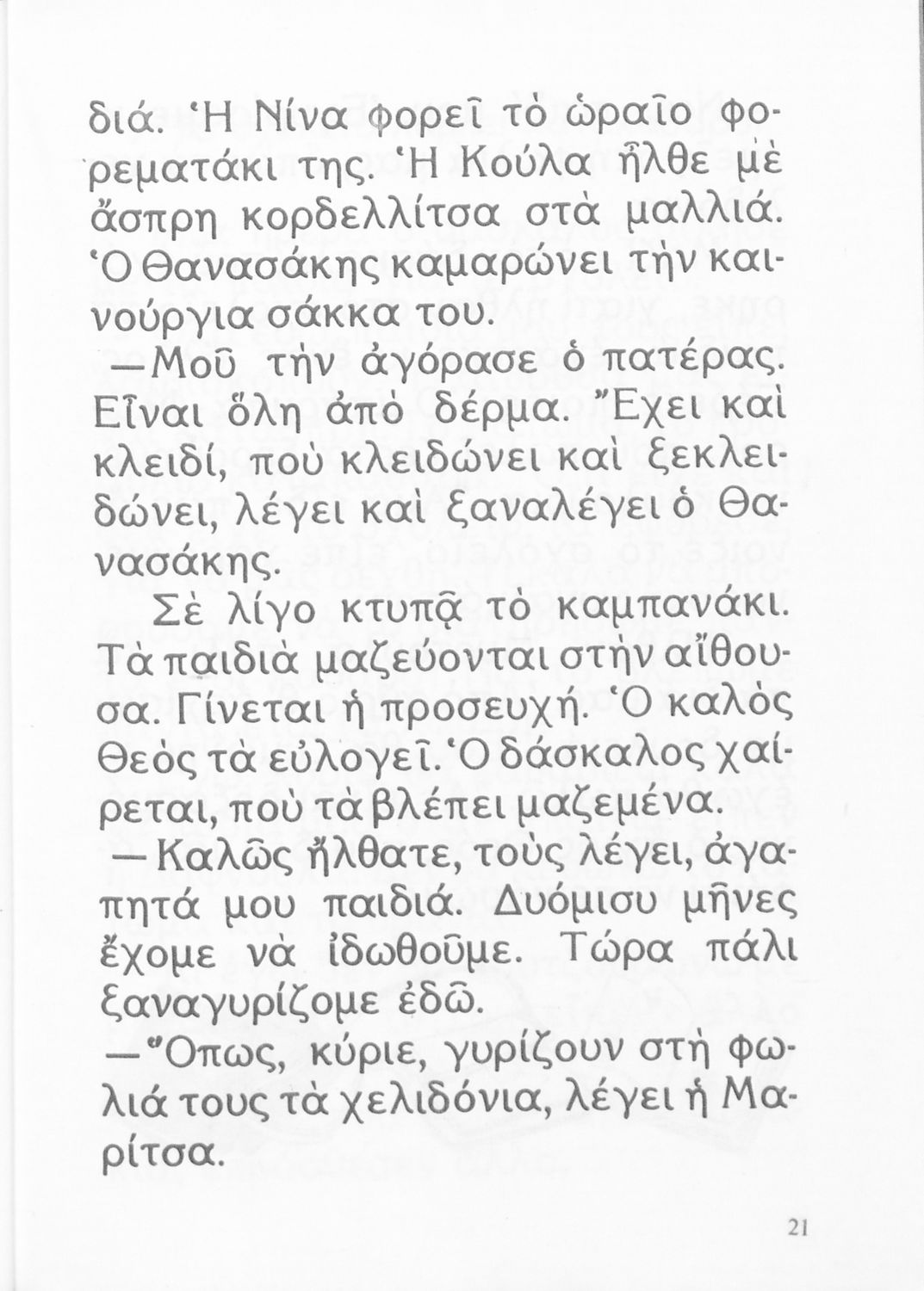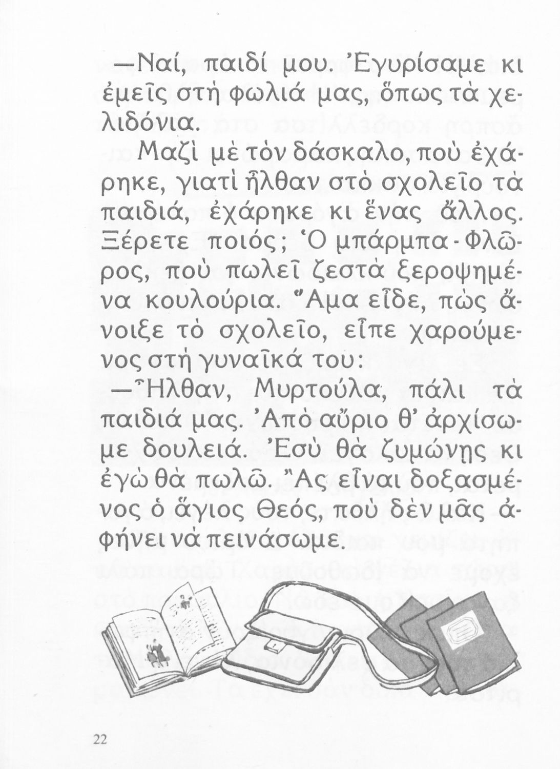 Αναγνωστικό Β' Δημοτικού που είναι χωρισμένο σύμφωνα με τις εποχές του χρόνου και περιλαμβάνει κείμενα ηθοποιητικού περιεχομένου εμπνευσμένα από τη θρησκευτική, εθνική, κοινωνική και οικογενειακή ζωή.