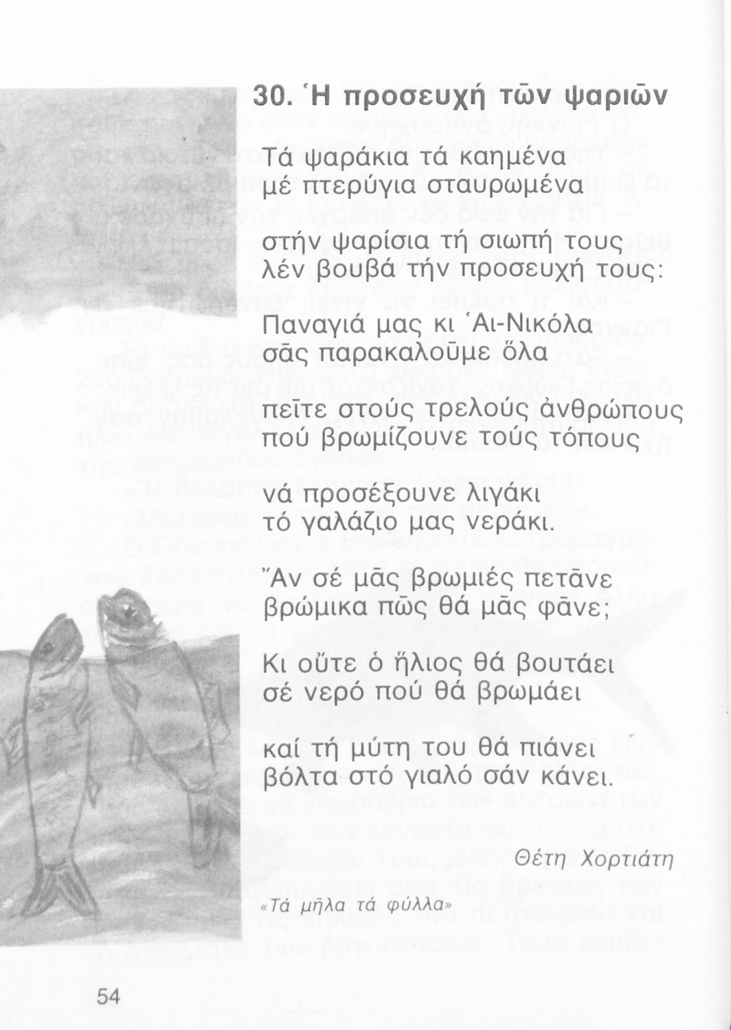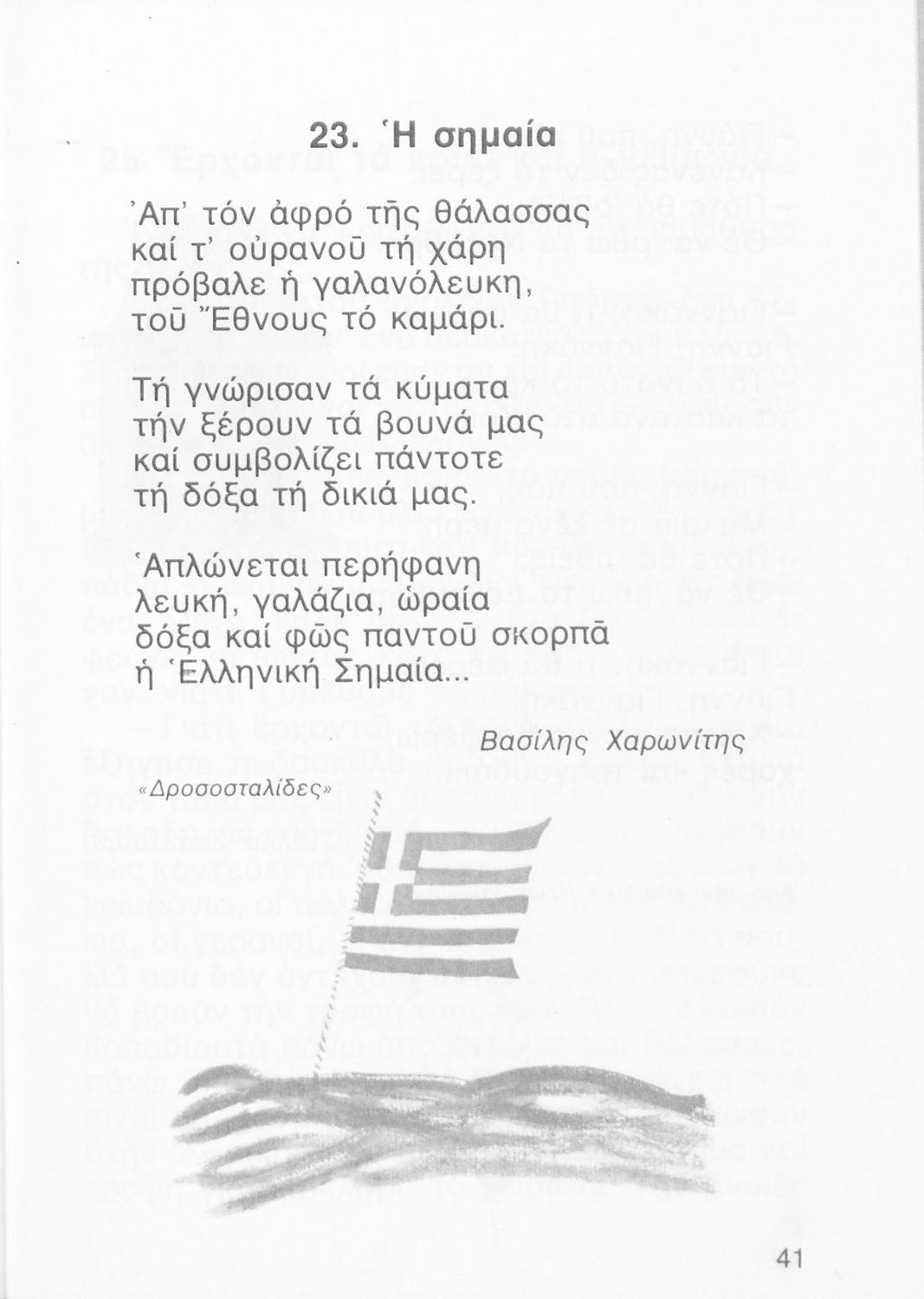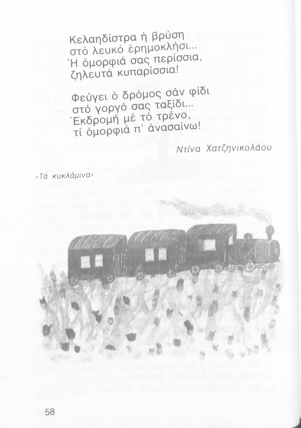 Αναγνωστικό Β' Δημοτικού που περιλαμβάνει ποιήματα και πεζά εμπνευσμένα από την καθημερινή ζωή, την ελληνική μυθολογία, την ελληνική φύση και τη θρησκευτική παράδοση.