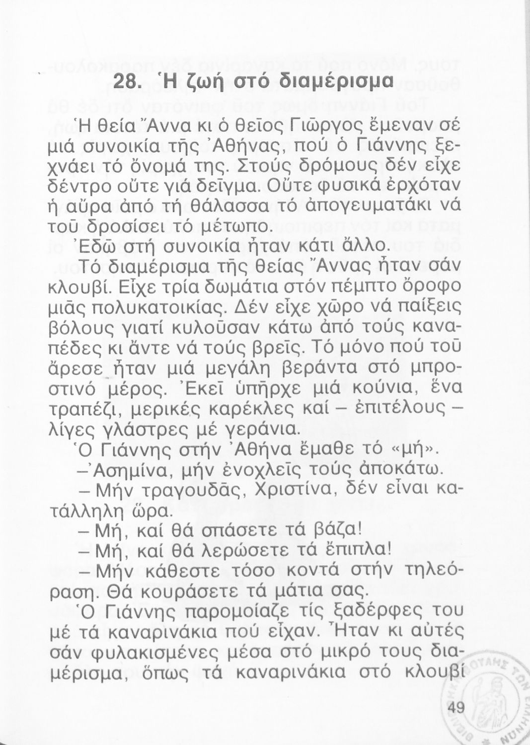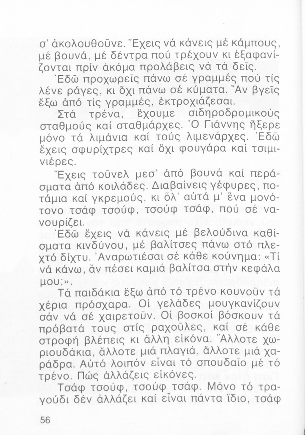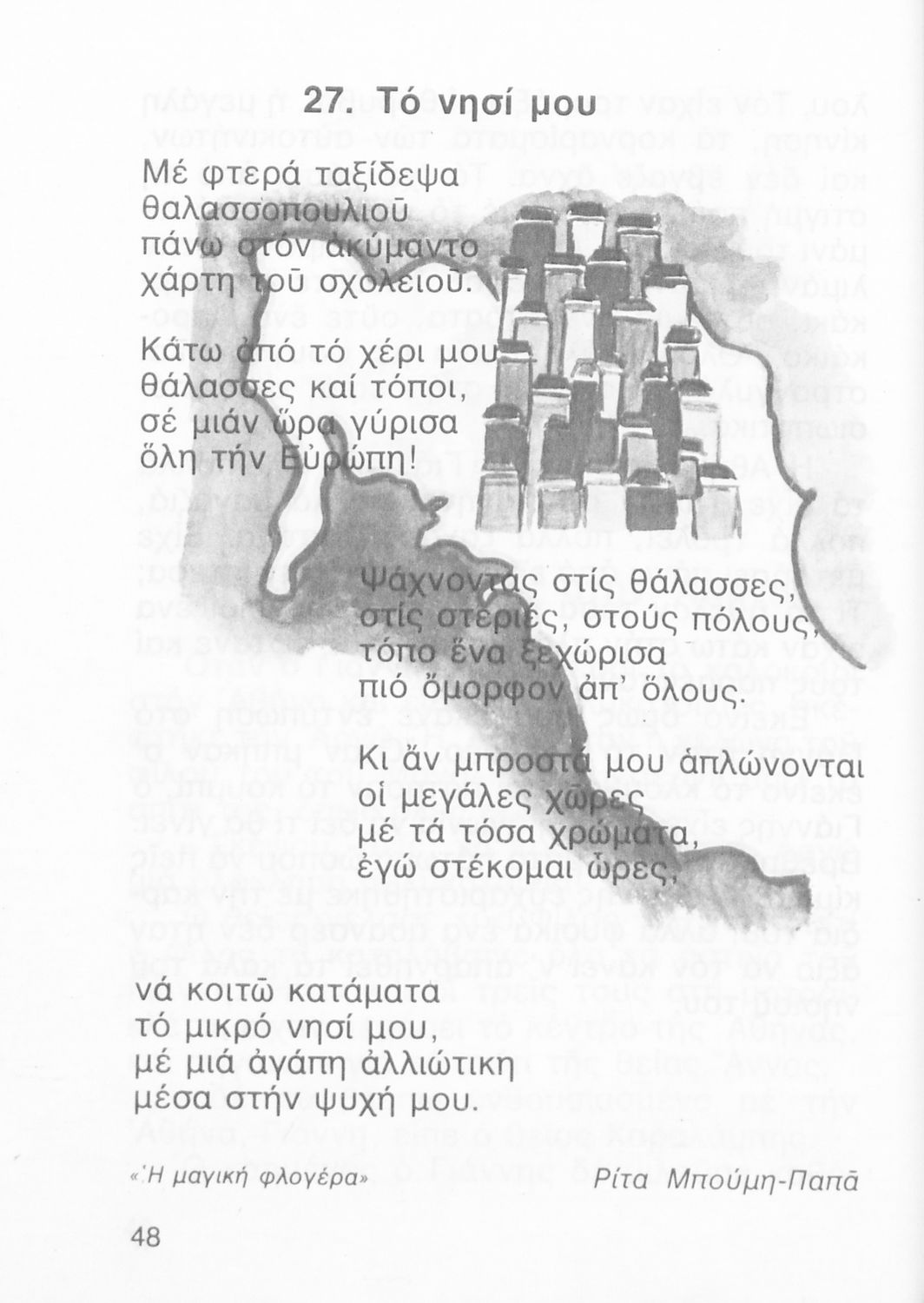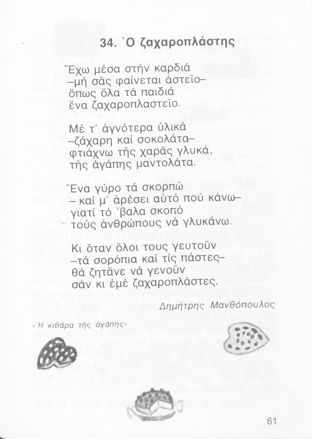 Αναγνωστικό Β' Δημοτικού που περιλαμβάνει ποιήματα και πεζά εμπνευσμένα από την καθημερινή ζωή, την ελληνική μυθολογία, την ελληνική φύση και τη θρησκευτική παράδοση.