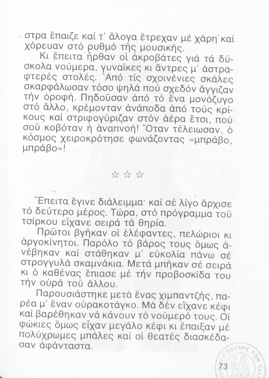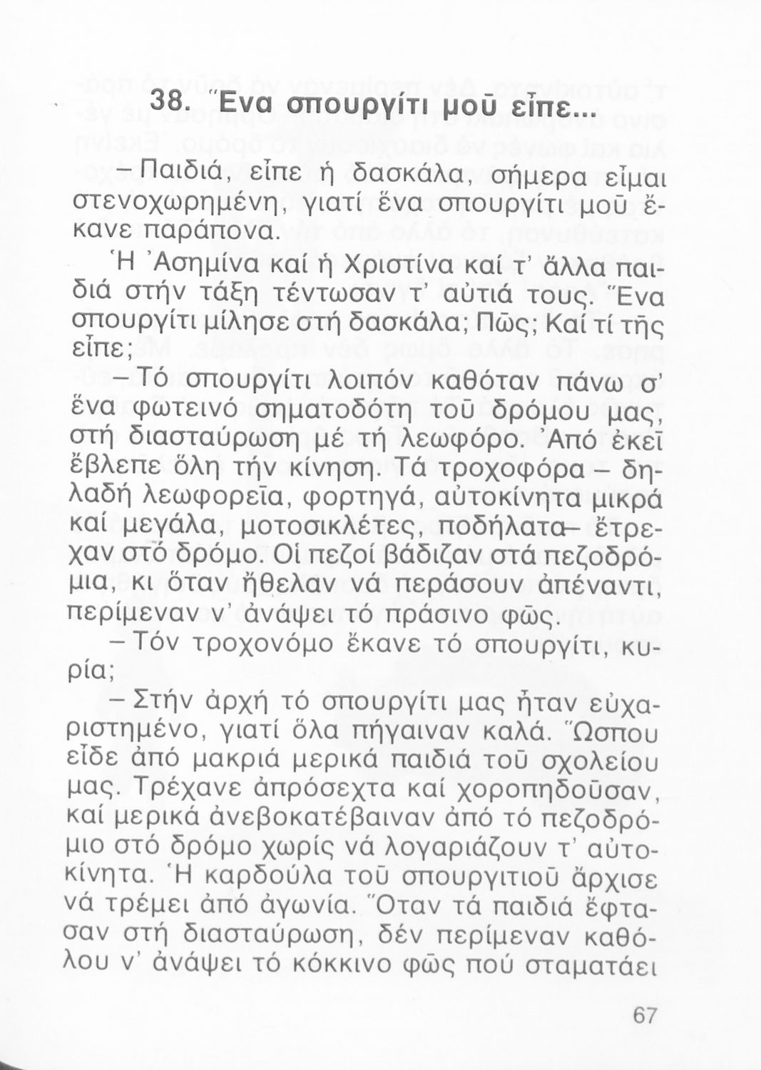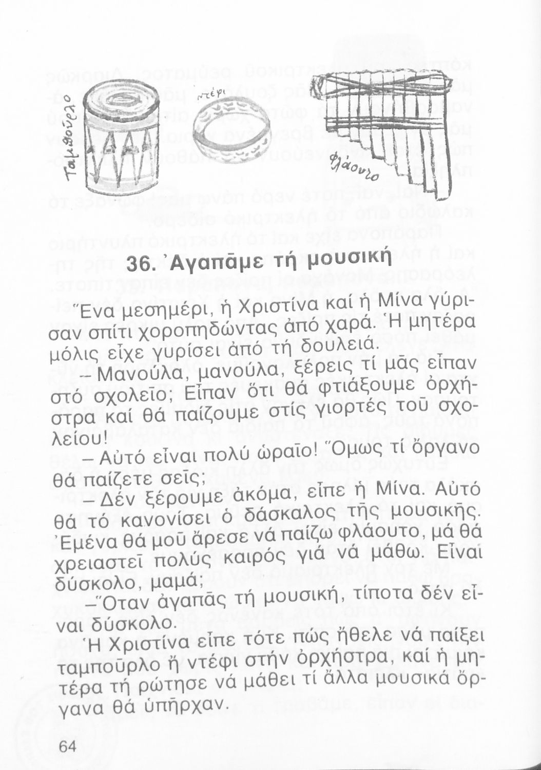 Αναγνωστικό Β' Δημοτικού που περιλαμβάνει μικρά διηγήματα και ποιήματα με περιεχόμενο από την οικογενειακή και κοινωνική ζωή, την ελληνική φύση, την ελληνική ιστορία και μυθολογία και την υγιεινή.