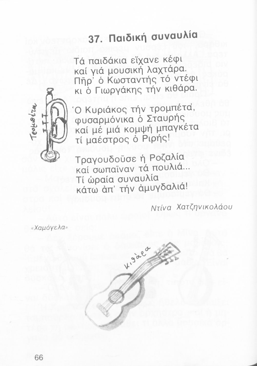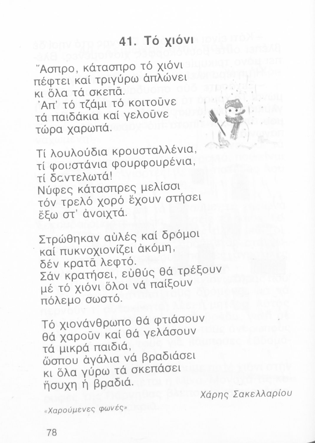 Αναγνωστικό Β' Δημοτικού που περιλαμβάνει ποιήματα και πεζά εμπνευσμένα από την καθημερινή ζωή, την ελληνική μυθολογία, την ελληνική φύση και τη θρησκευτική παράδοση.