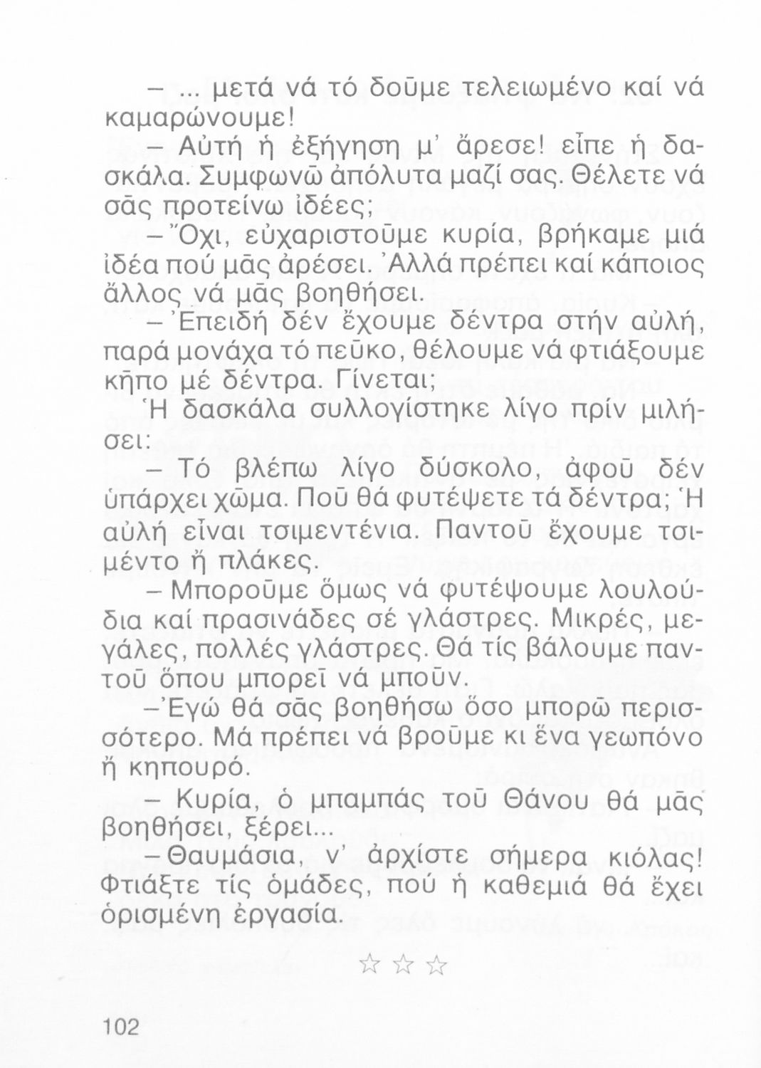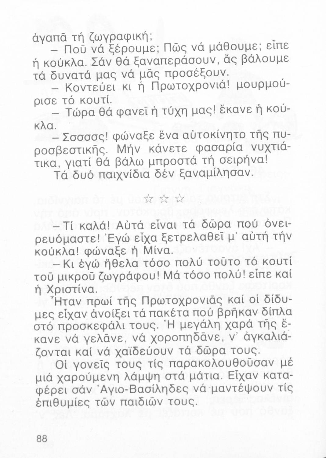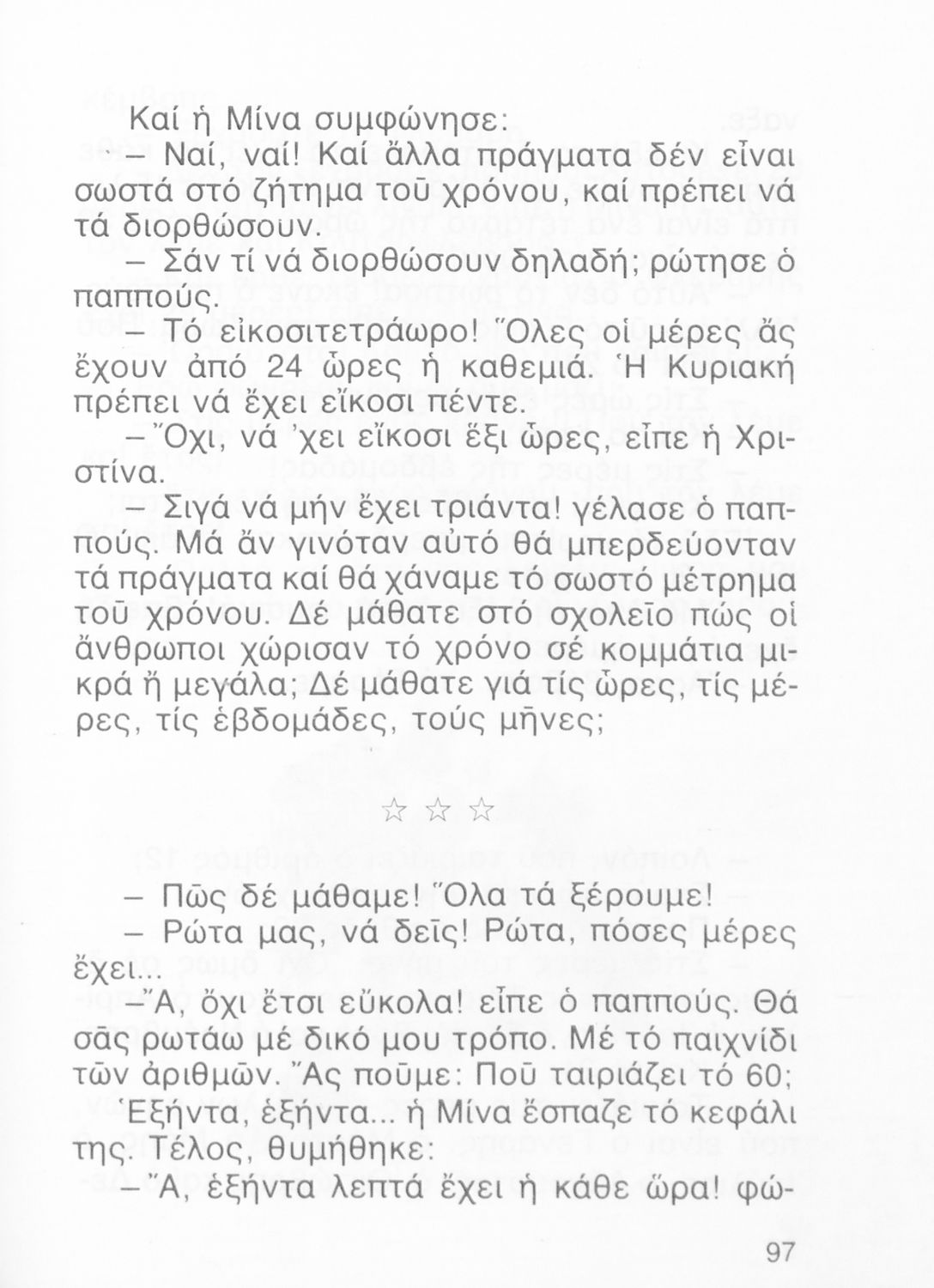 Αναγνωστικό Β' Δημοτικού που περιλαμβάνει μικρά διηγήματα και ποιήματα με περιεχόμενο από την οικογενειακή και κοινωνική ζωή, την ελληνική φύση, την ελληνική ιστορία και μυθολογία και την υγιεινή.