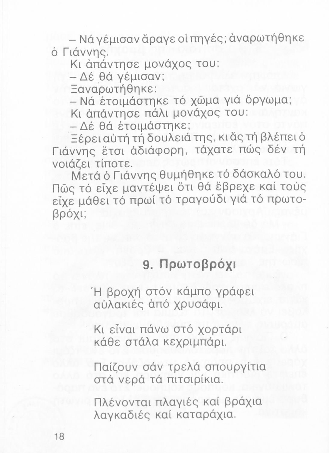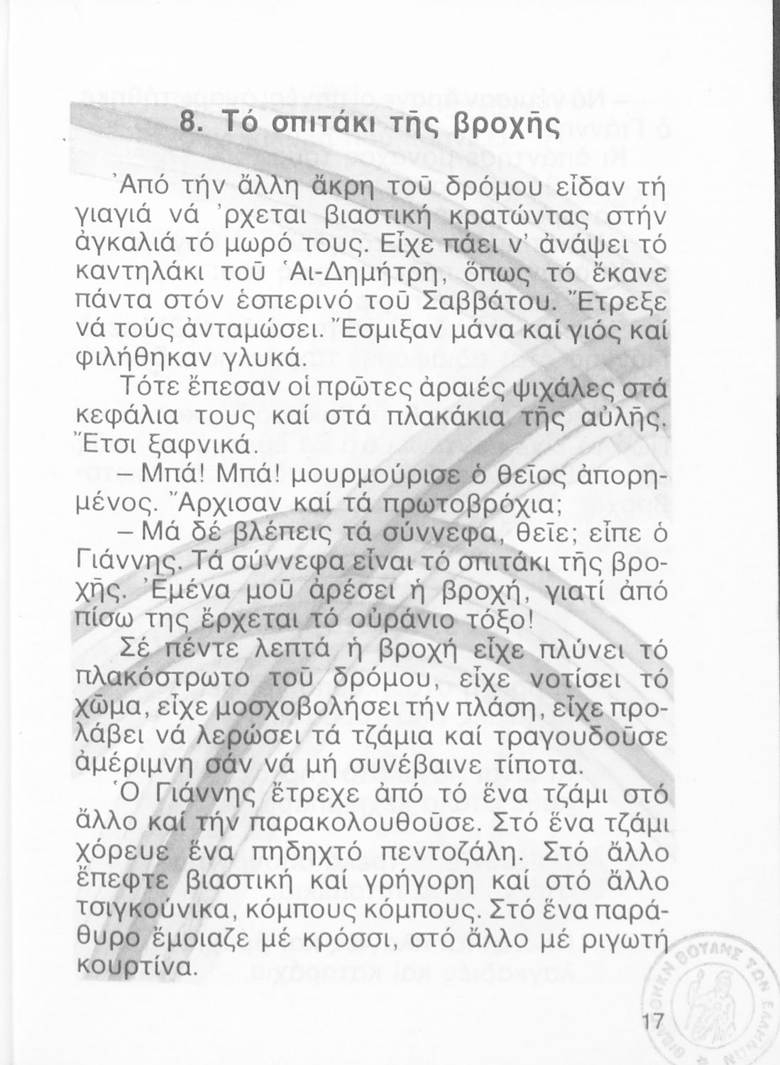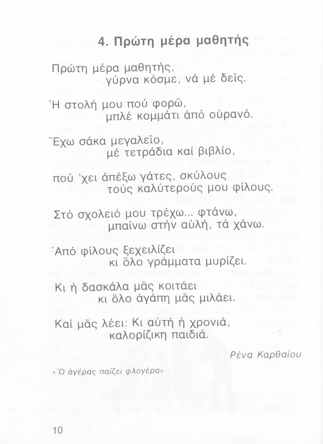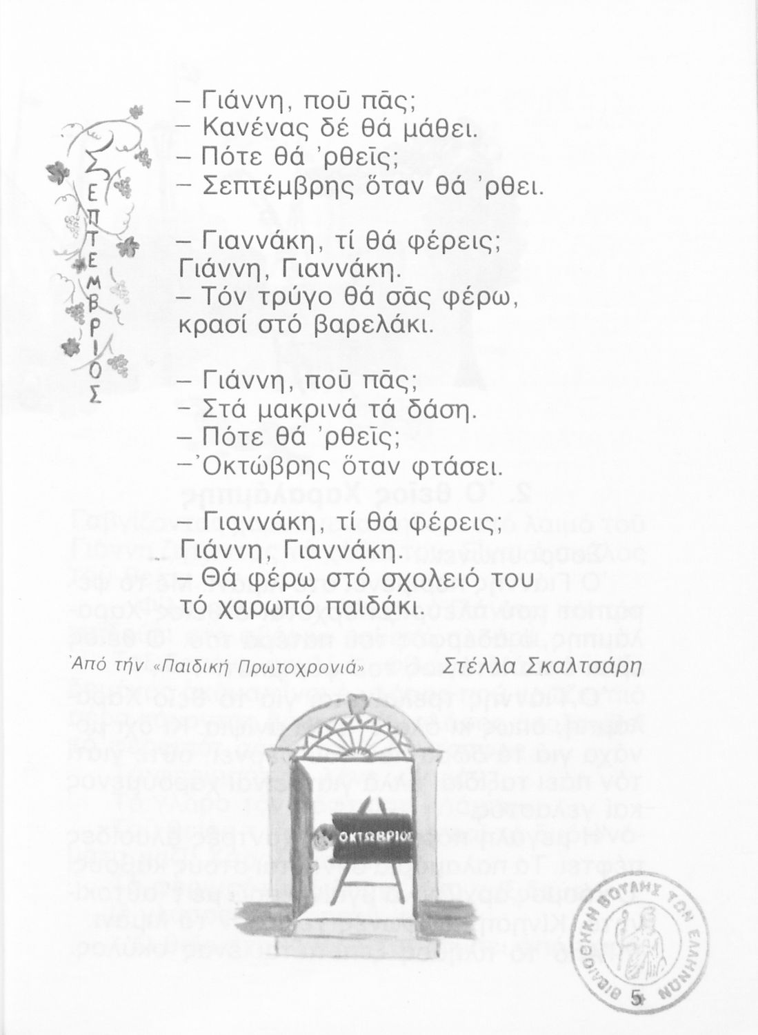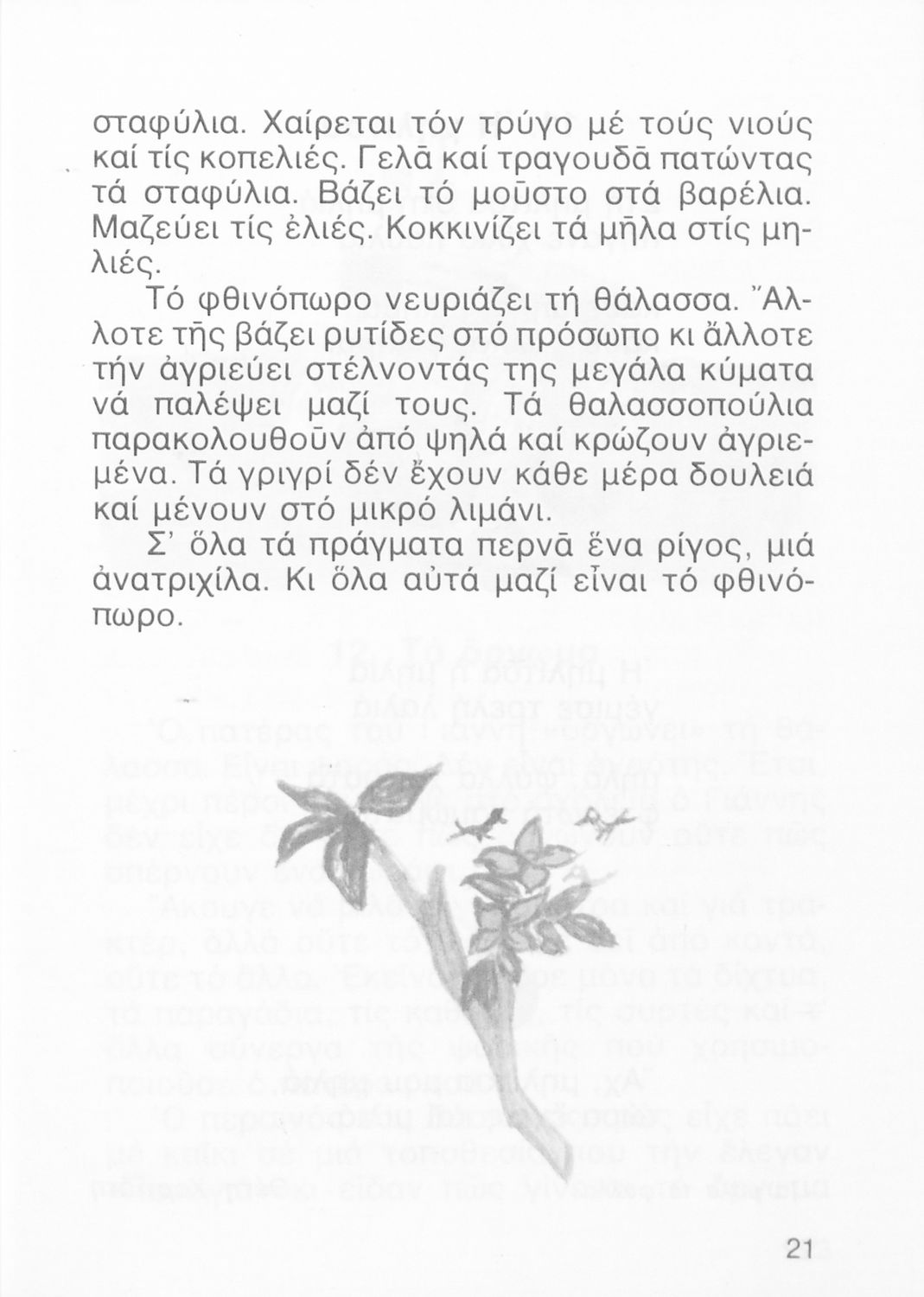 Αναγνωστικό Β' Δημοτικού που περιλαμβάνει ποιήματα και πεζά εμπνευσμένα από την καθημερινή ζωή, την ελληνική μυθολογία, την ελληνική φύση και τη θρησκευτική παράδοση.