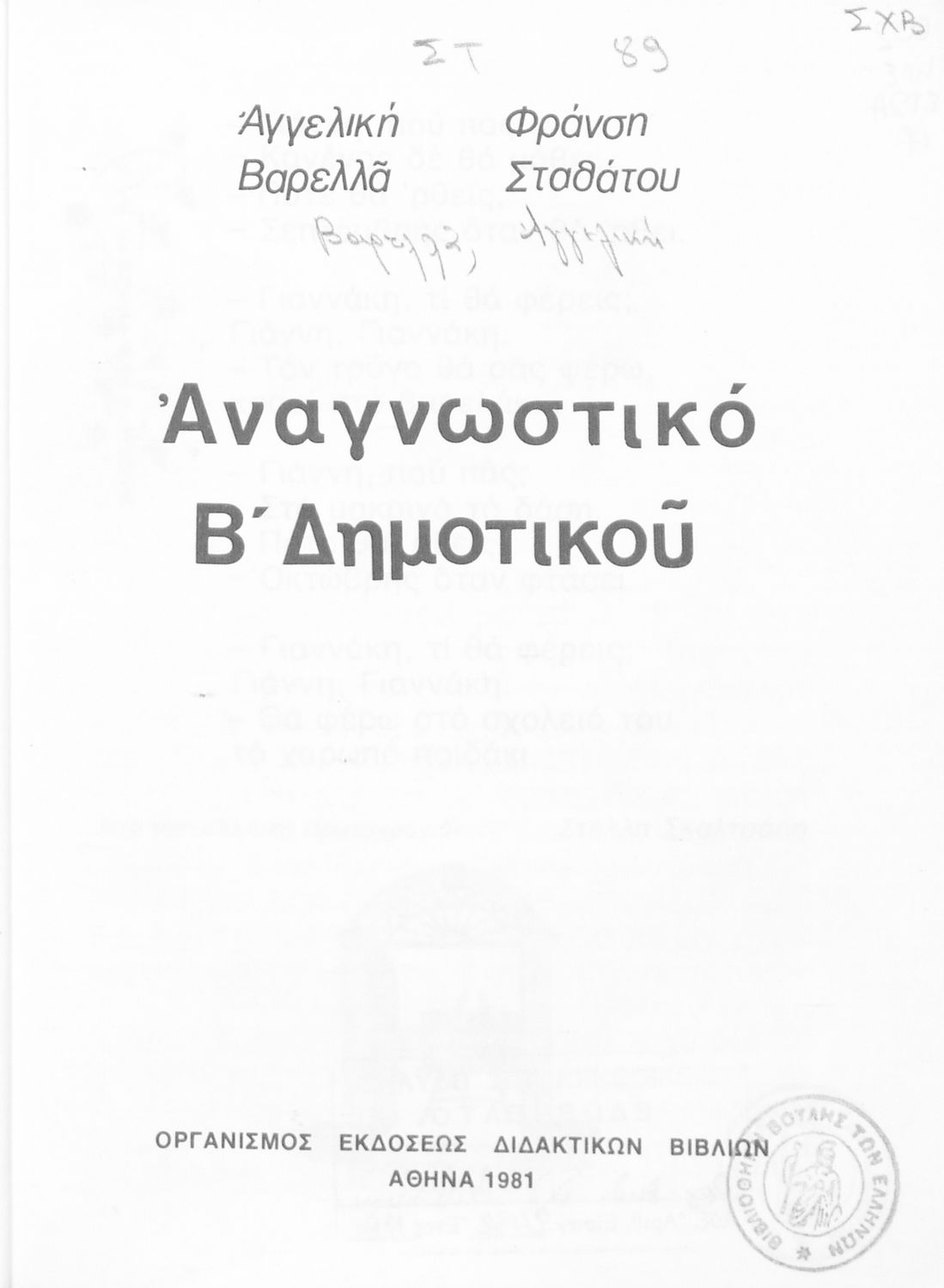 Εκδότης: Οργανισμός Εκδόσεως Διδακτικών Βιβλίων Έτος έκδοσης: 1981 Τόπος έκδοσης: Αθήνα Έκδοση: 2η Υπουργική απόφαση / Σύμβαση: 3569/10-3-1981 Έτος έγκρισης: 1981 |
