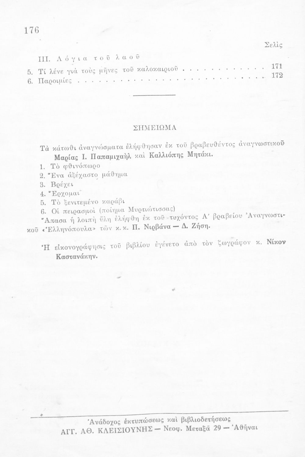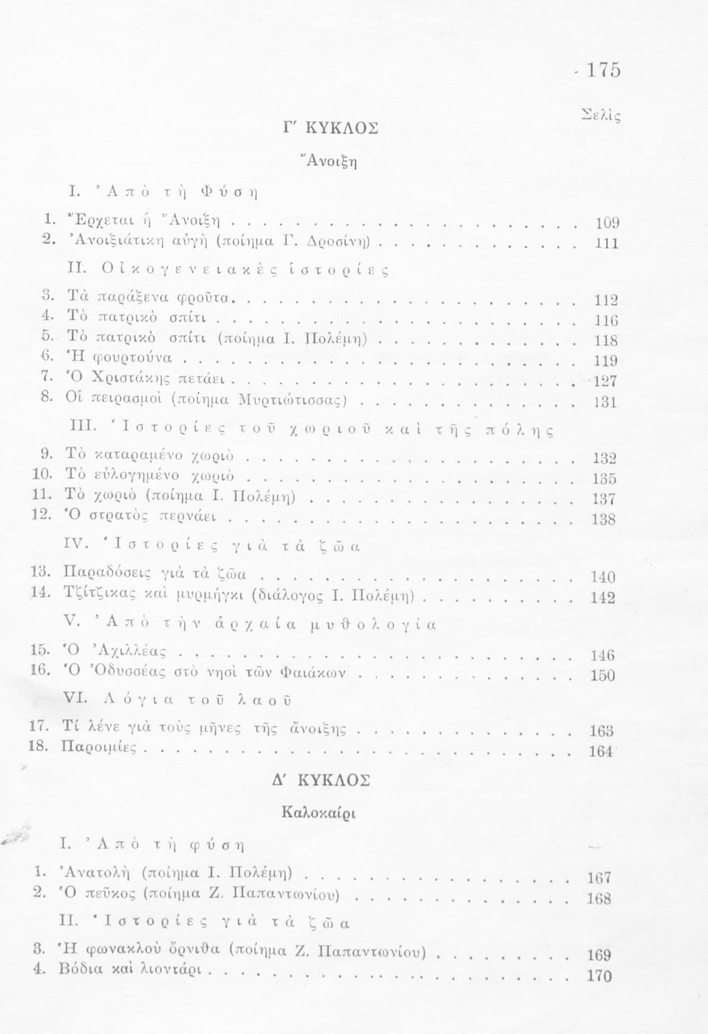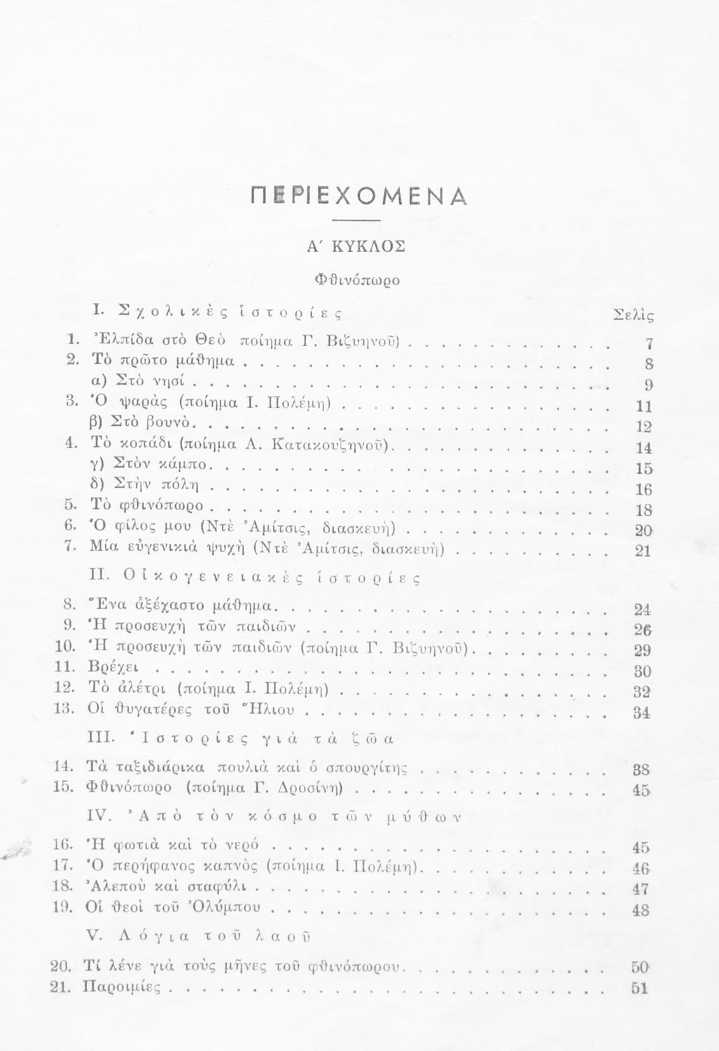 Αναγνωστικό Γ' Δημοτικού που περιέχει πεζά και ποιήματα εμπνευσμένα από τη θρησκευτική, εθνική, κοινωνική και ατομική ζωή, και την ελληνική φύση, ιστορία και μυθολογία.