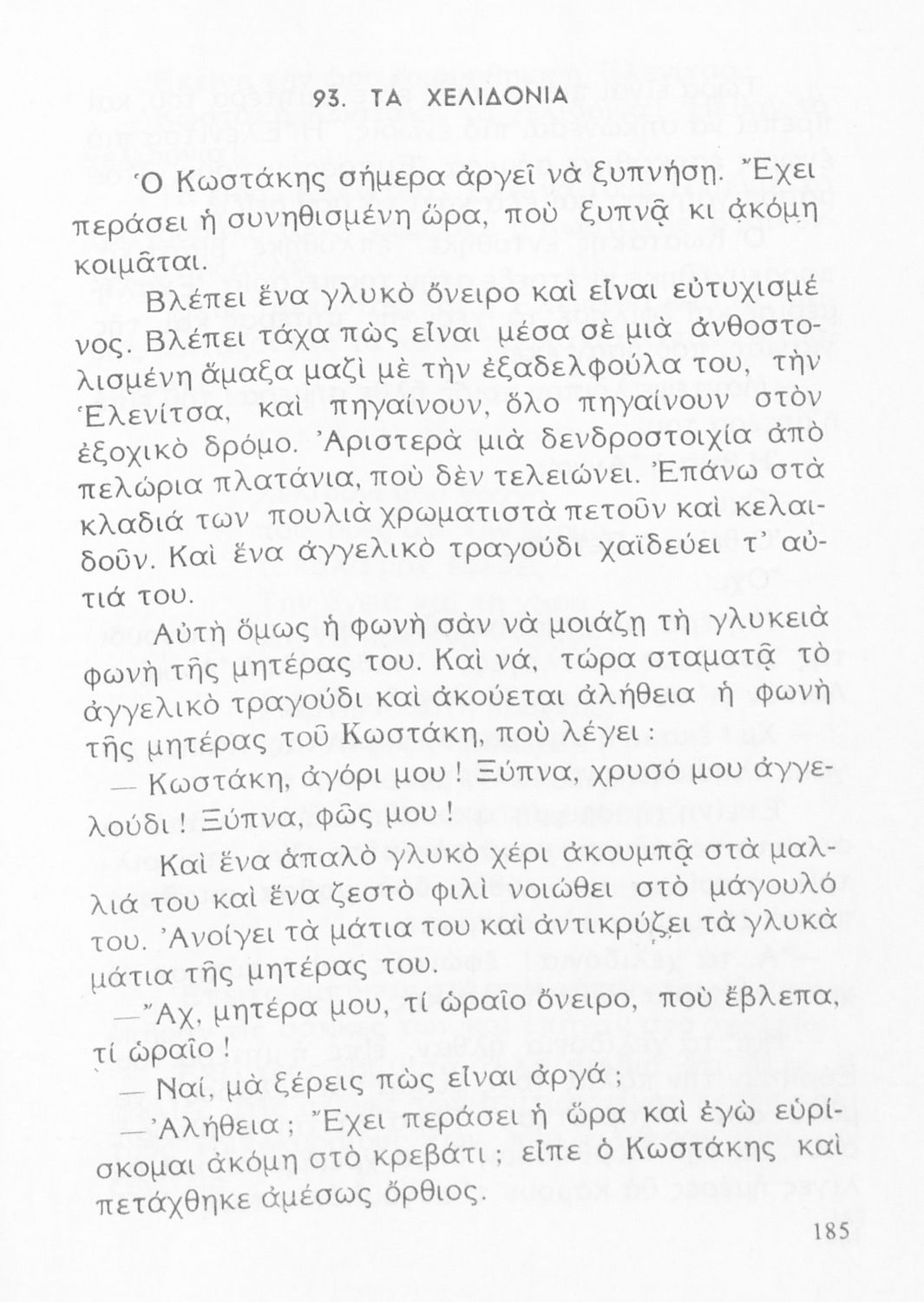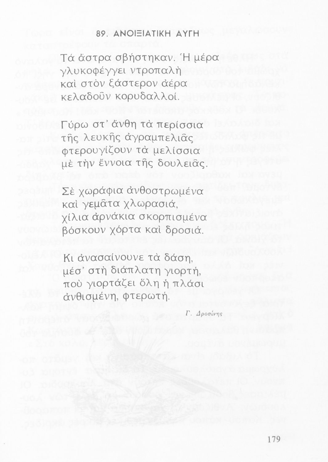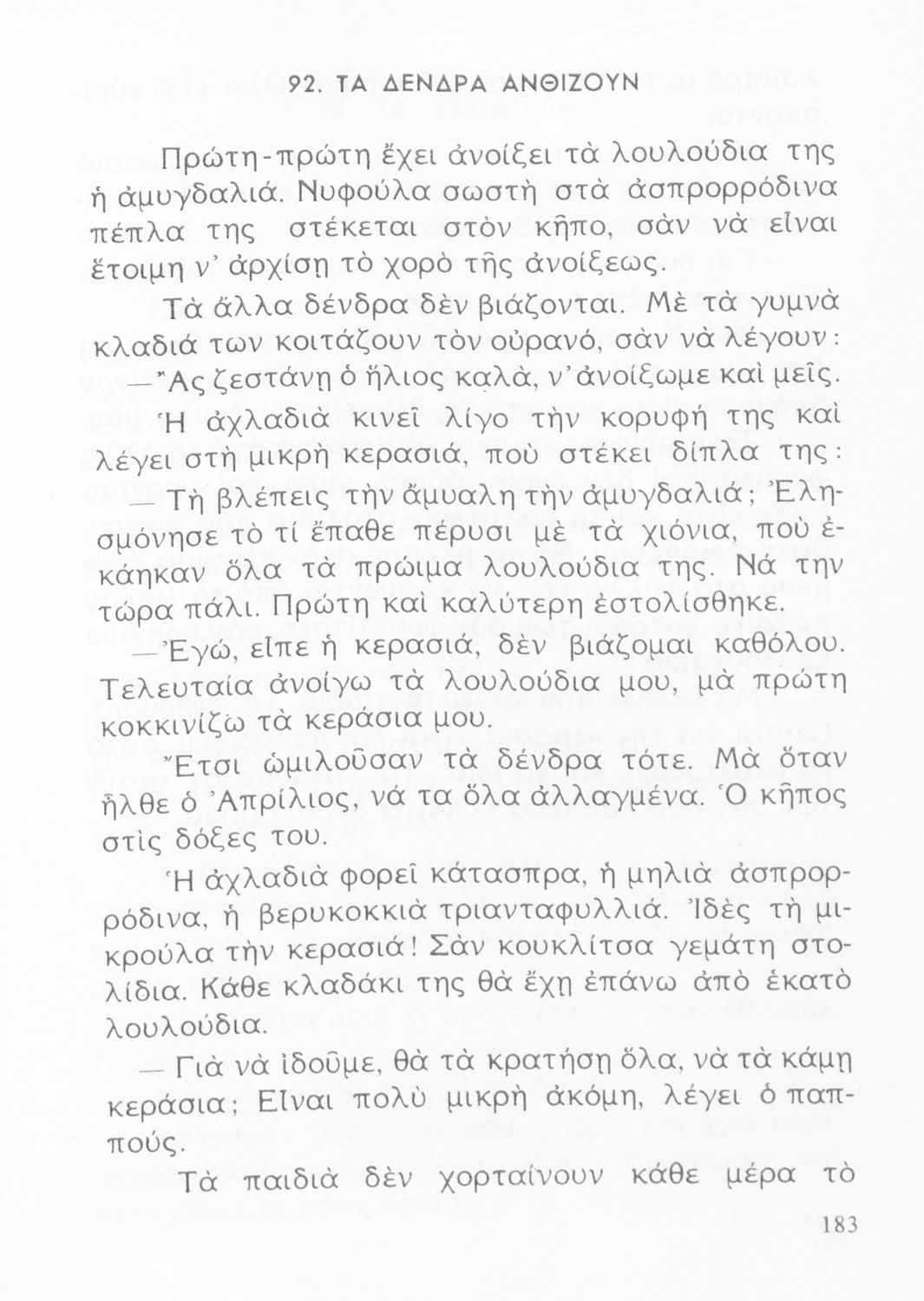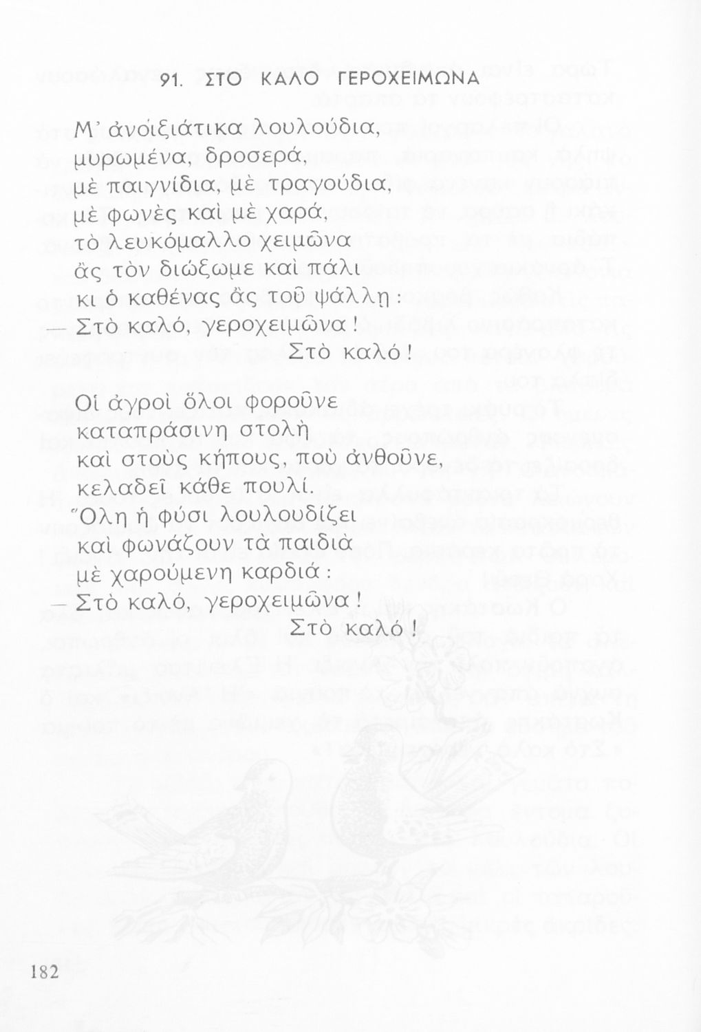 Αναγνωστικό Γ' Δημοτικού που είναι χωρισμένο σύμφωνα με τις εποχές του χρόνου και περιλαμβάνει ποιήματα και πεζά εμπνευσμένα από τη ζωή στην ύπαιθρο, την εθνική, οικογενειακή και κοινωνική ζωή, τη θρησκευτική παράδοση, τις ασχολίες των ανθρώπων, και την ελληνική φύση.