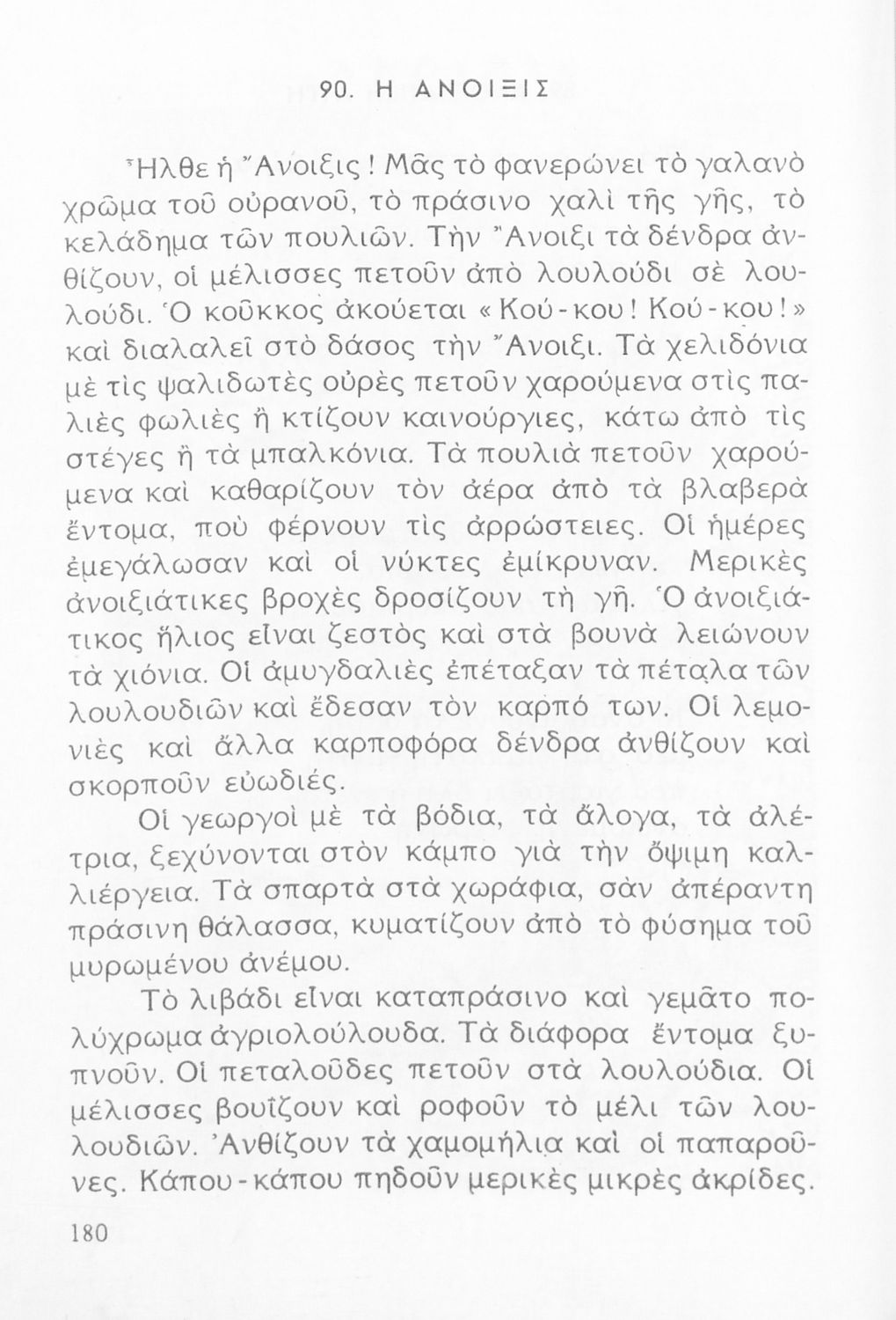 Αναγνωστικό Γ' Δημοτικού που είναι χωρισμένο σύμφωνα με τις εποχές του χρόνου και περιλαμβάνει ποιήματα και πεζά εμπνευσμένα από τη ζωή στην ύπαιθρο, την εθνική, οικογενειακή και κοινωνική ζωή, τη θρησκευτική ...