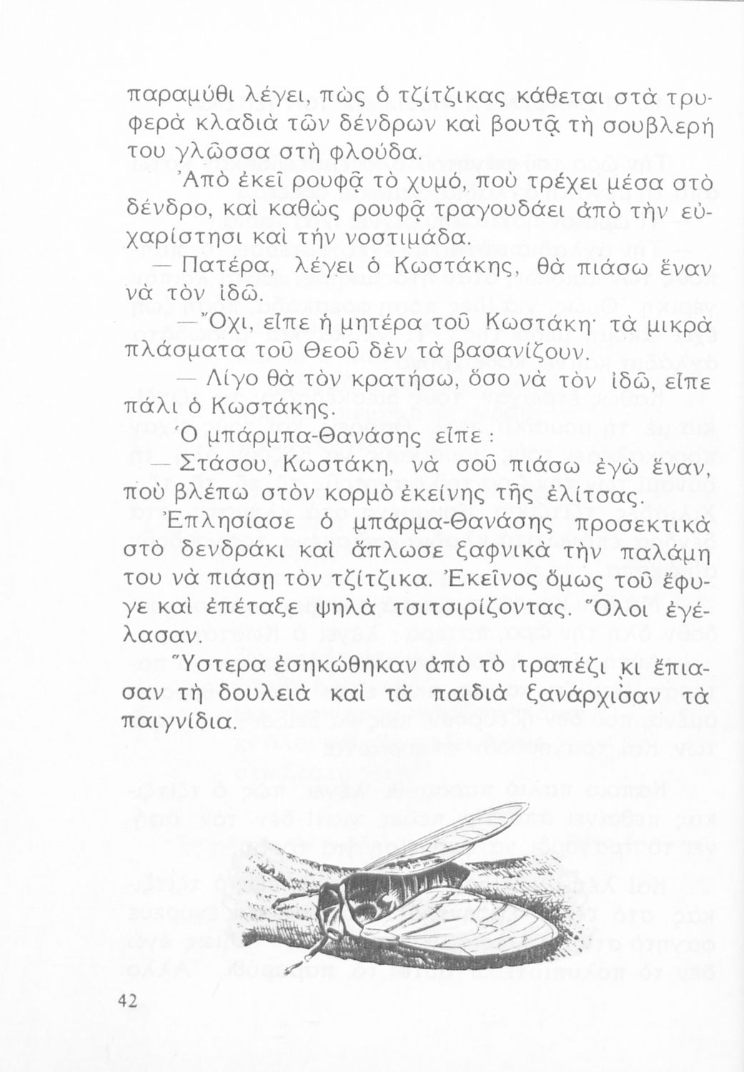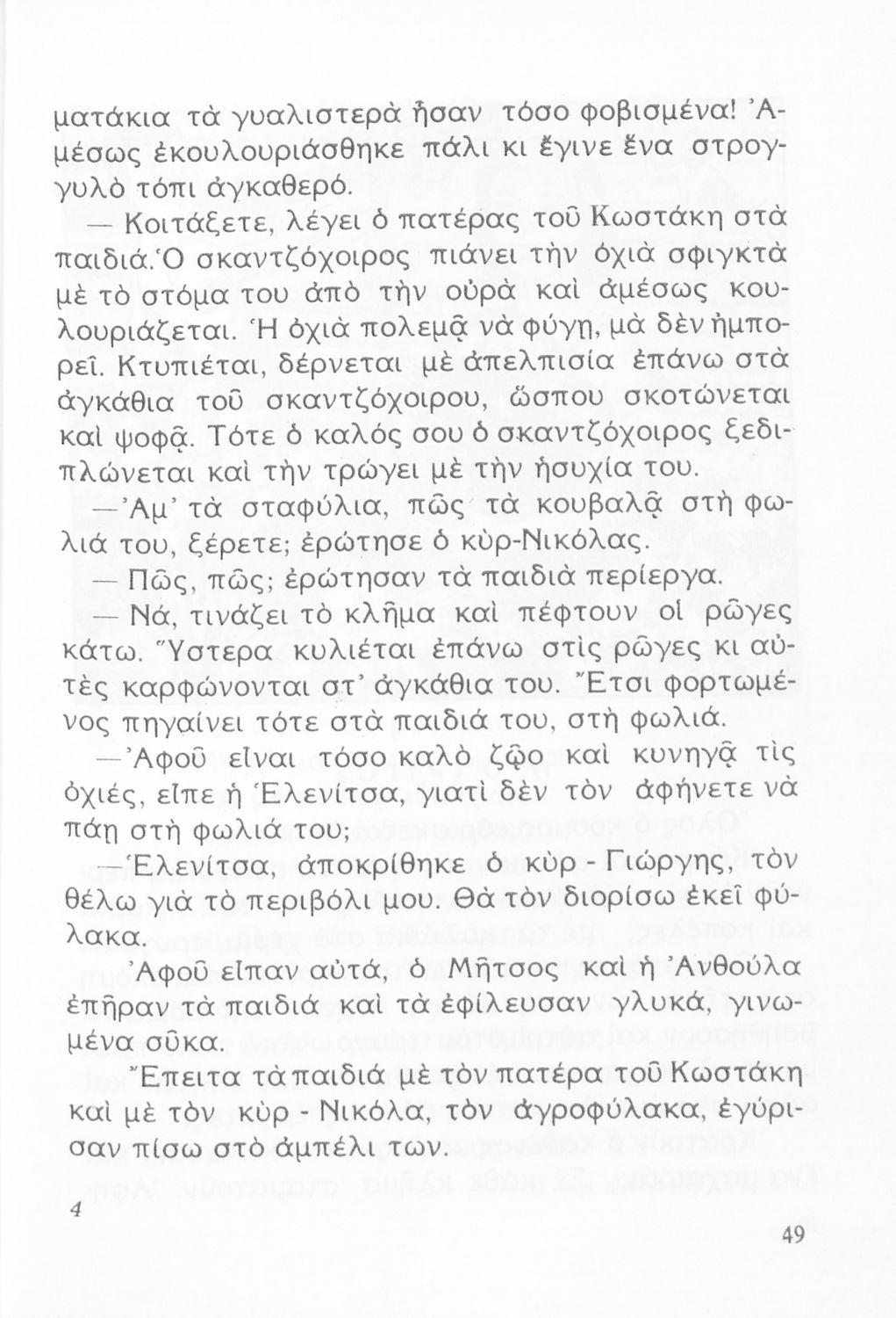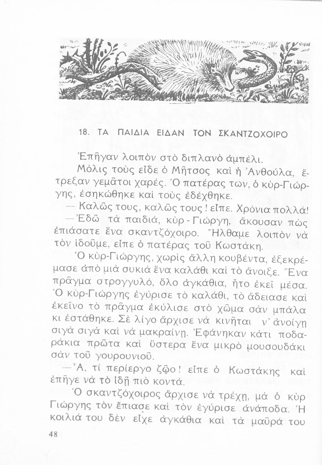520 ## _aΑναγνωστικό Γ' Δημοτικού που είναι χωρισμένο σύμφωνα με τις εποχές του χρόνου και περιλαμβάνει ποιήματα και πεζά εμπνευσμένα από τη ζωή στην ύπαιθρο, την εθνική, οικογενειακή και κοινωνική ζωή, τη θρησκευτική παράδοση, τις ασχολίες των ανθρώπων, και την ελληνική φύση.
