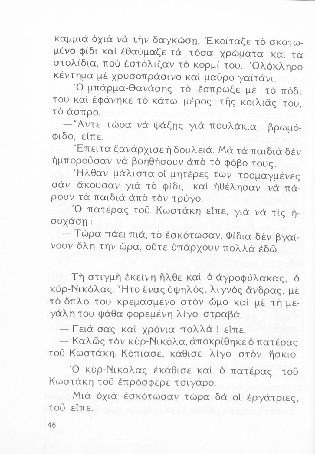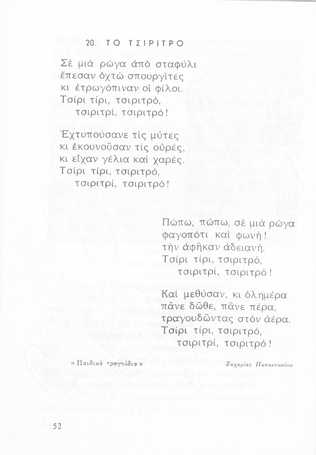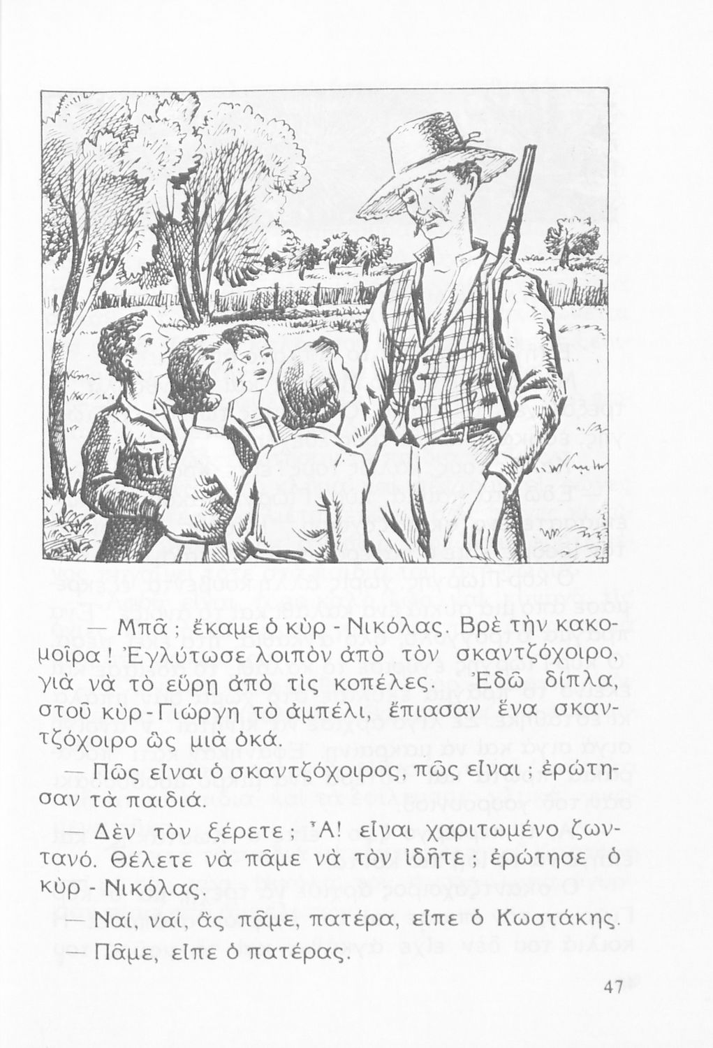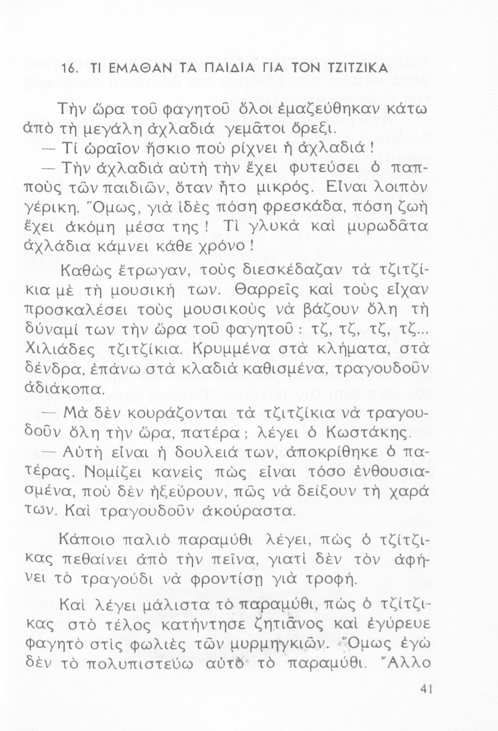 520 ## _aΑναγνωστικό Γ' Δημοτικού που είναι χωρισμένο σύμφωνα με τις εποχές του χρόνου και περιλαμβάνει ποιήματα και πεζά εμπνευσμένα από τη ζωή στην ύπαιθρο, την εθνική, οικογενειακή και κοινωνική ζωή, τη θρησκευτική παράδοση, τις ασχολίες των ανθρώπων, και την ελληνική φύση.