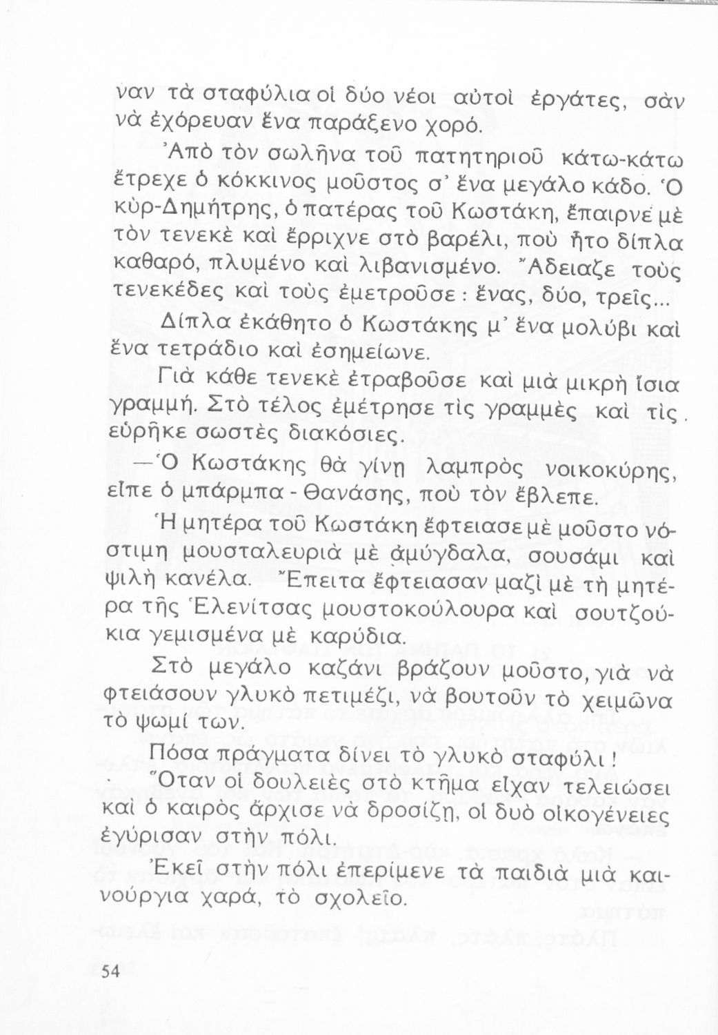 Αναγνωστικό Γ' Δημοτικού που είναι χωρισμένο σύμφωνα με τις εποχές του χρόνου και περιλαμβάνει ποιήματα και πεζά εμπνευσμένα από τη ζωή στην ύπαιθρο, την εθνική, οικογενειακή και κοινωνική ζωή, τη θρησκευτική παράδοση, τις ασχολίες των ανθρώπων, και την ελληνική φύση.