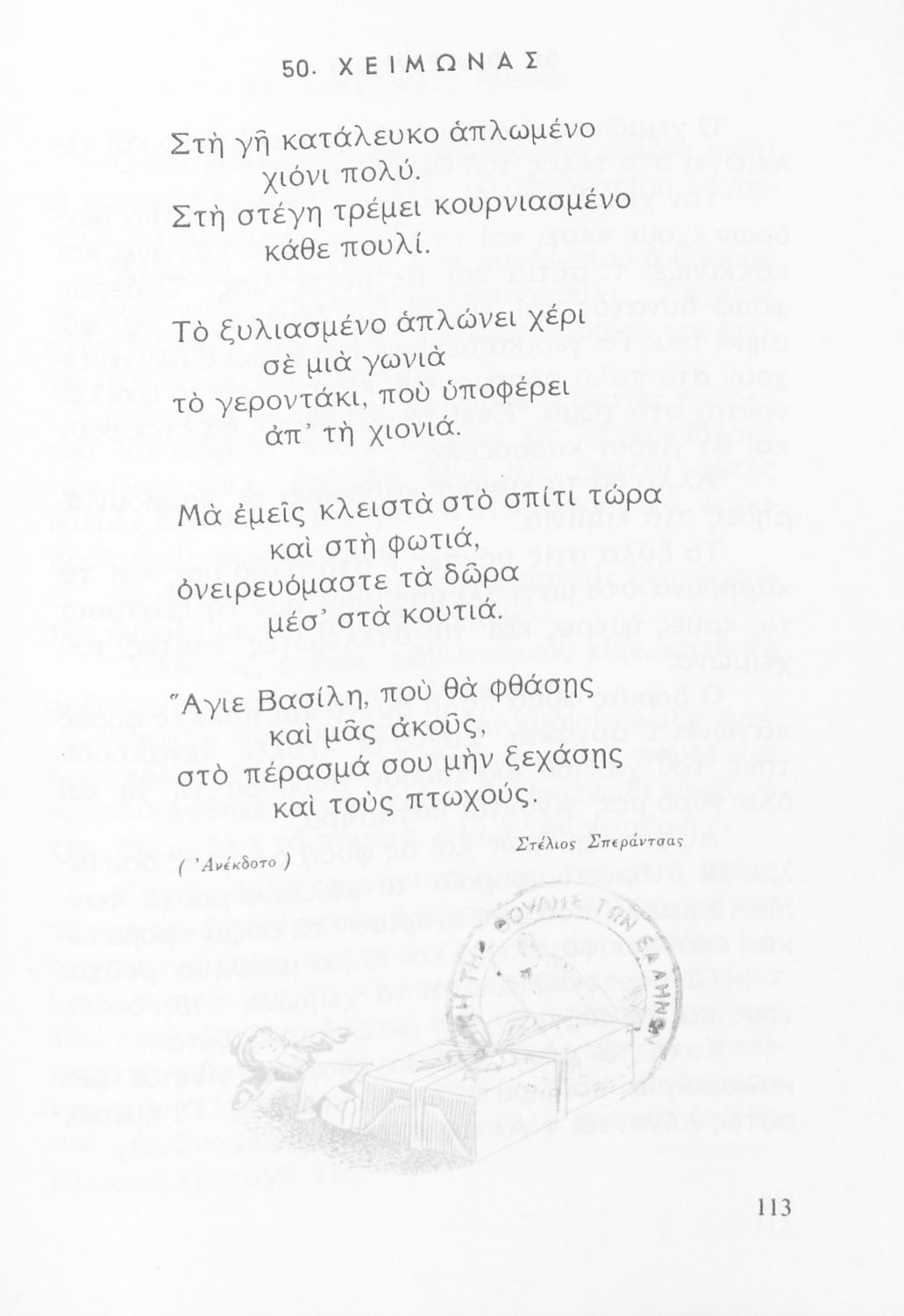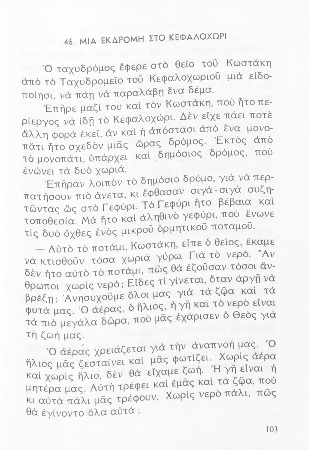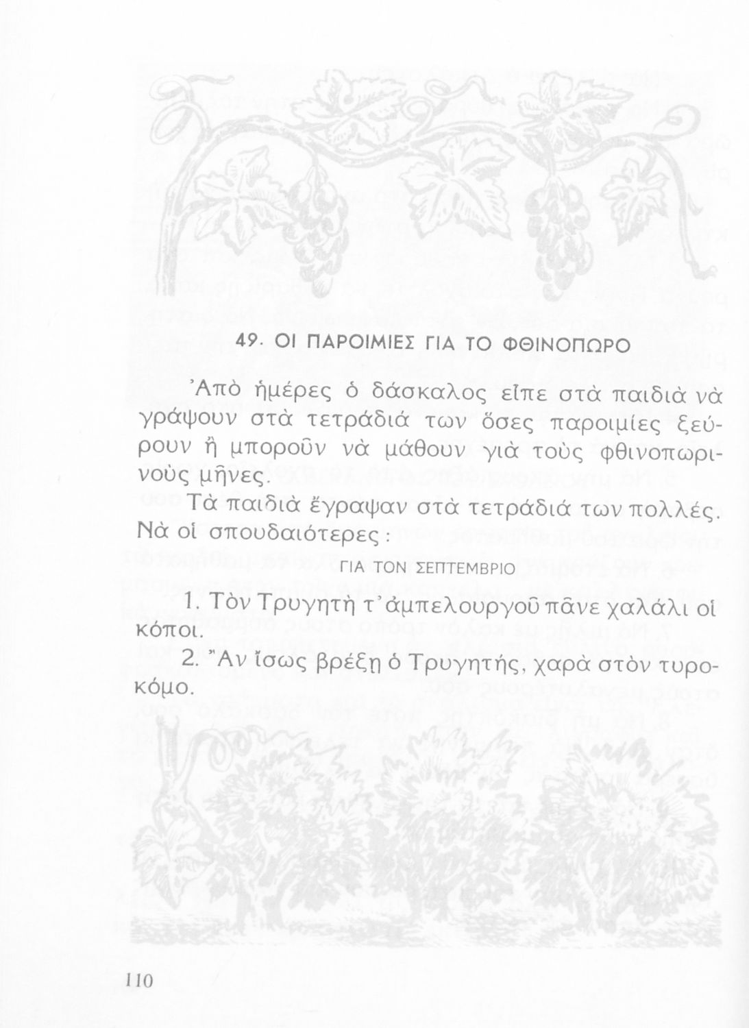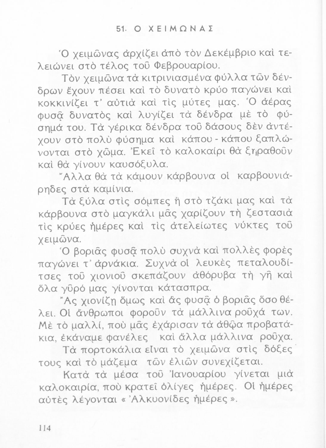 Αναγνωστικό Γ' Δημοτικού που είναι χωρισμένο σύμφωνα με τις εποχές του χρόνου και περιλαμβάνει ποιήματα και πεζά εμπνευσμένα από τη ζωή στην ύπαιθρο, την εθνική, οικογενειακή και κοινωνική ζωή, τη θρησκευτική παράδοση, τις ασχολίες των ανθρώπων, και την ελληνική φύση.