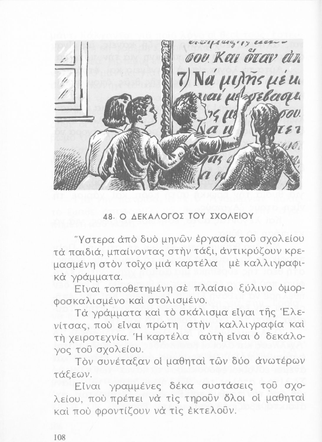 Αναγνωστικό Γ΄ Δημοτικού που περιλαμβάνει ποιήματα και πεζά με θέματα όπως η καλή και κακή συναναστροφή, η φρόνηση, η οκνηρία, η φιλανθρωπία και η πίστη στο Θεό