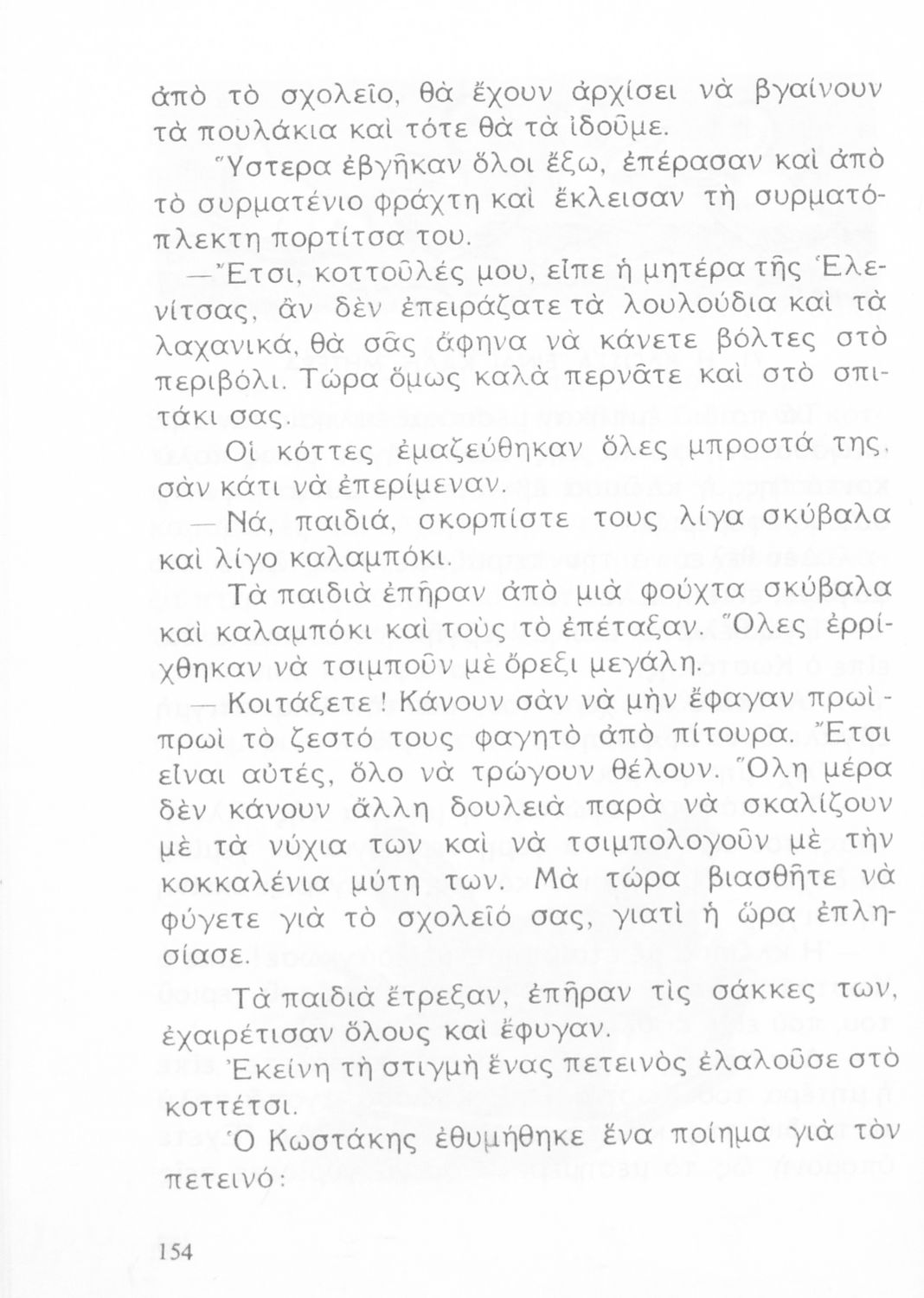 Αναγνωστικό Γ' Δημοτικού που είναι χωρισμένο σύμφωνα με τις εποχές του χρόνου και περιλαμβάνει ποιήματα και πεζά εμπνευσμένα από τη ζωή στην ύπαιθρο, την εθνική, οικογενειακή και κοινωνική ζωή, τη θρησκευτική παράδοση, τις ασχολίες των ανθρώπων, και την ελληνική φύση.