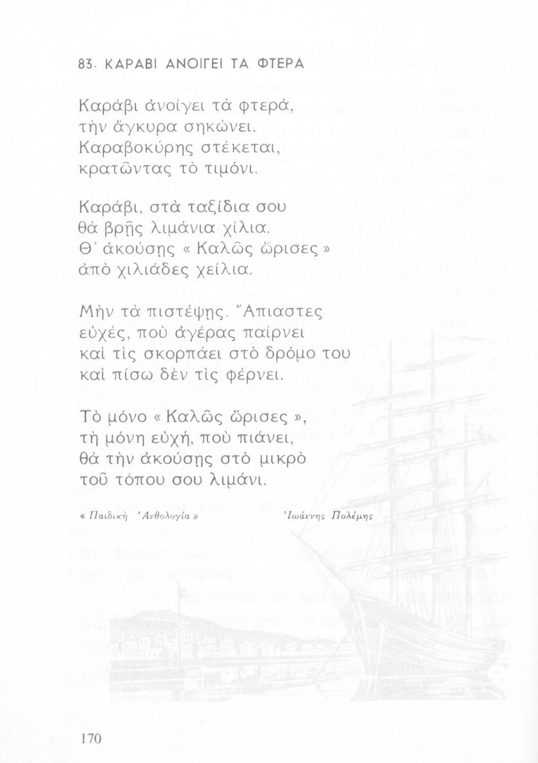 Αναγνωστικό Γ' Δημοτικού που είναι χωρισμένο σύμφωνα με τις εποχές του χρόνου και περιλαμβάνει ποιήματα και πεζά εμπνευσμένα από τη ζωή στην ύπαιθρο, την εθνική, οικογενειακή και κοινωνική ζωή, τη θρησκευτική παράδοση, τις ασχολίες των ανθρώπων, και την ελληνική φύση.