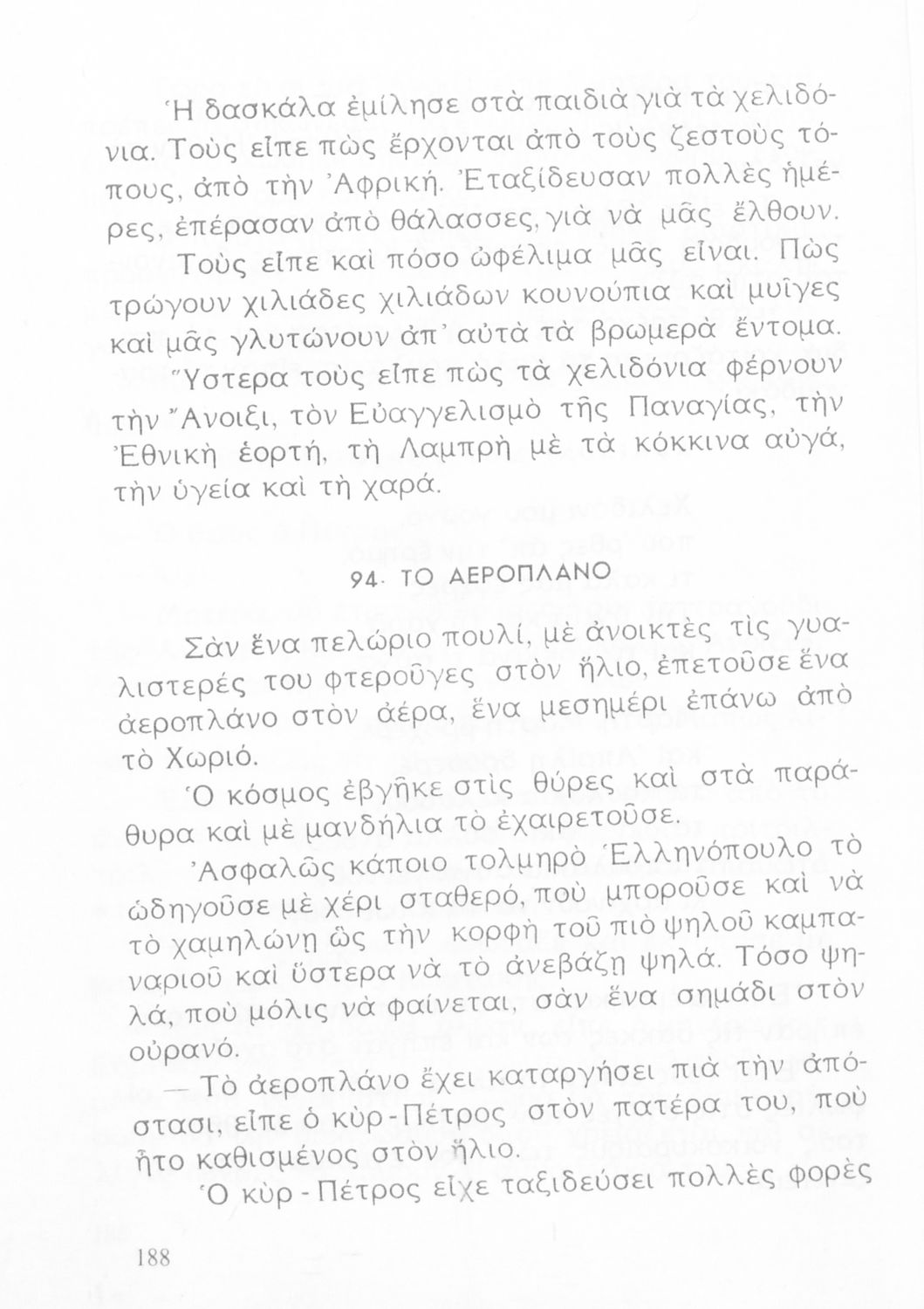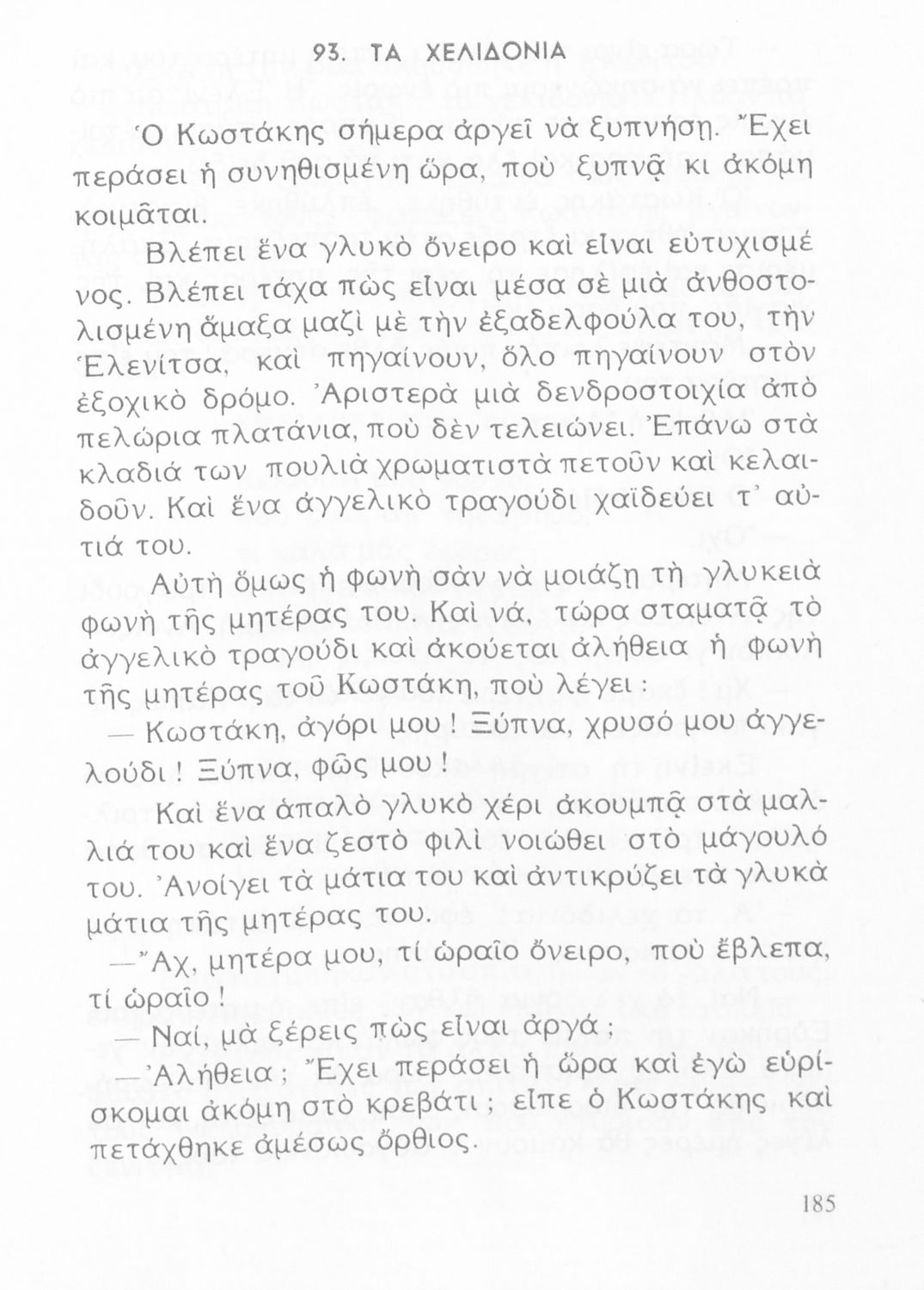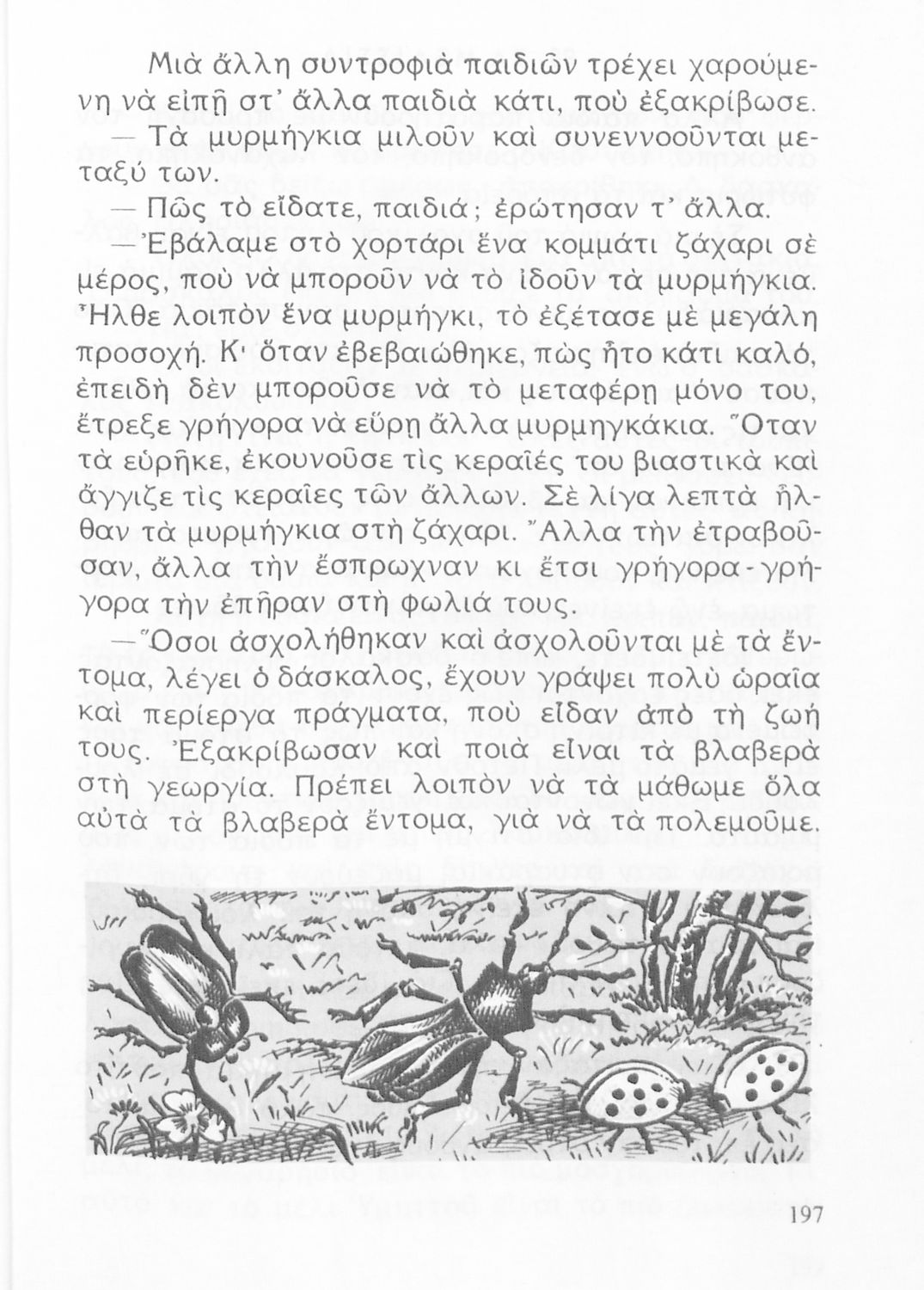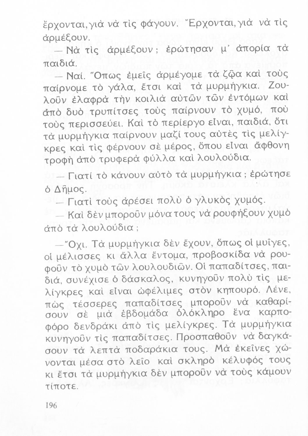 Αναγνωστικό Γ' Δημοτικού που είναι χωρισμένο σύμφωνα με τις εποχές του χρόνου και περιλαμβάνει ποιήματα και πεζά εμπνευσμένα από τη ζωή στην ύπαιθρο, την εθνική, οικογενειακή και κοινωνική ζωή, τη θρησκευτική παράδοση, τις ασχολίες των ανθρώπων, και την ελληνική φύση.