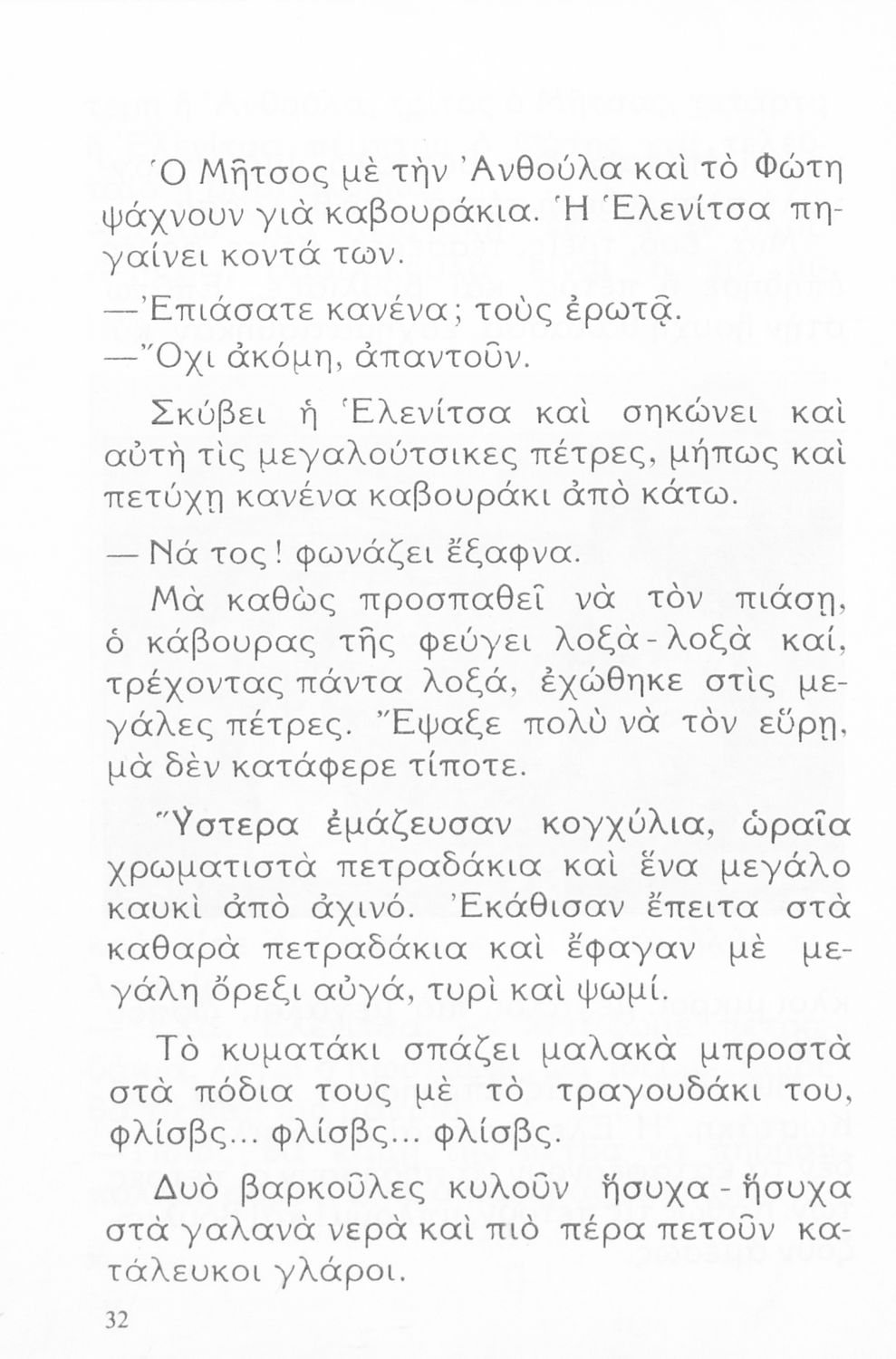 Αναγνωστικό Γ' Δημοτικού που είναι χωρισμένο σύμφωνα με τις εποχές του χρόνου και περιλαμβάνει ποιήματα και πεζά εμπνευσμένα από τη ζωή στην ύπαιθρο, την εθνική, οικογενειακή και κοινωνική ζωή, τη θρησκευτική παράδοση, τις ασχολίες των ανθρώπων, και την ελληνική φύση.