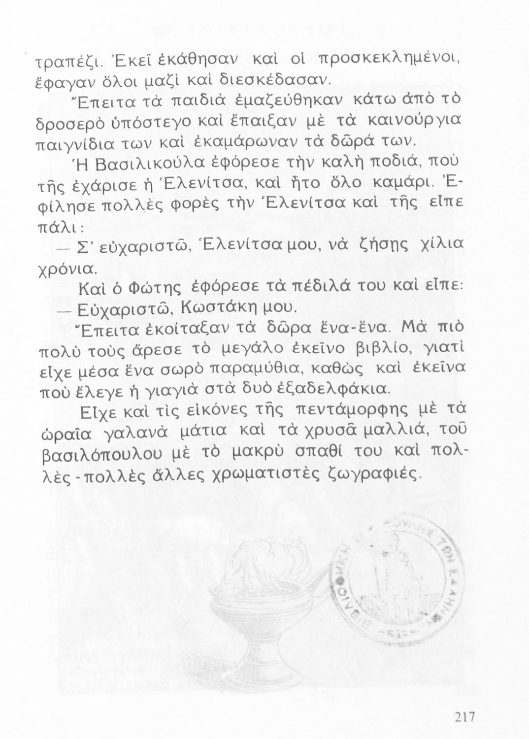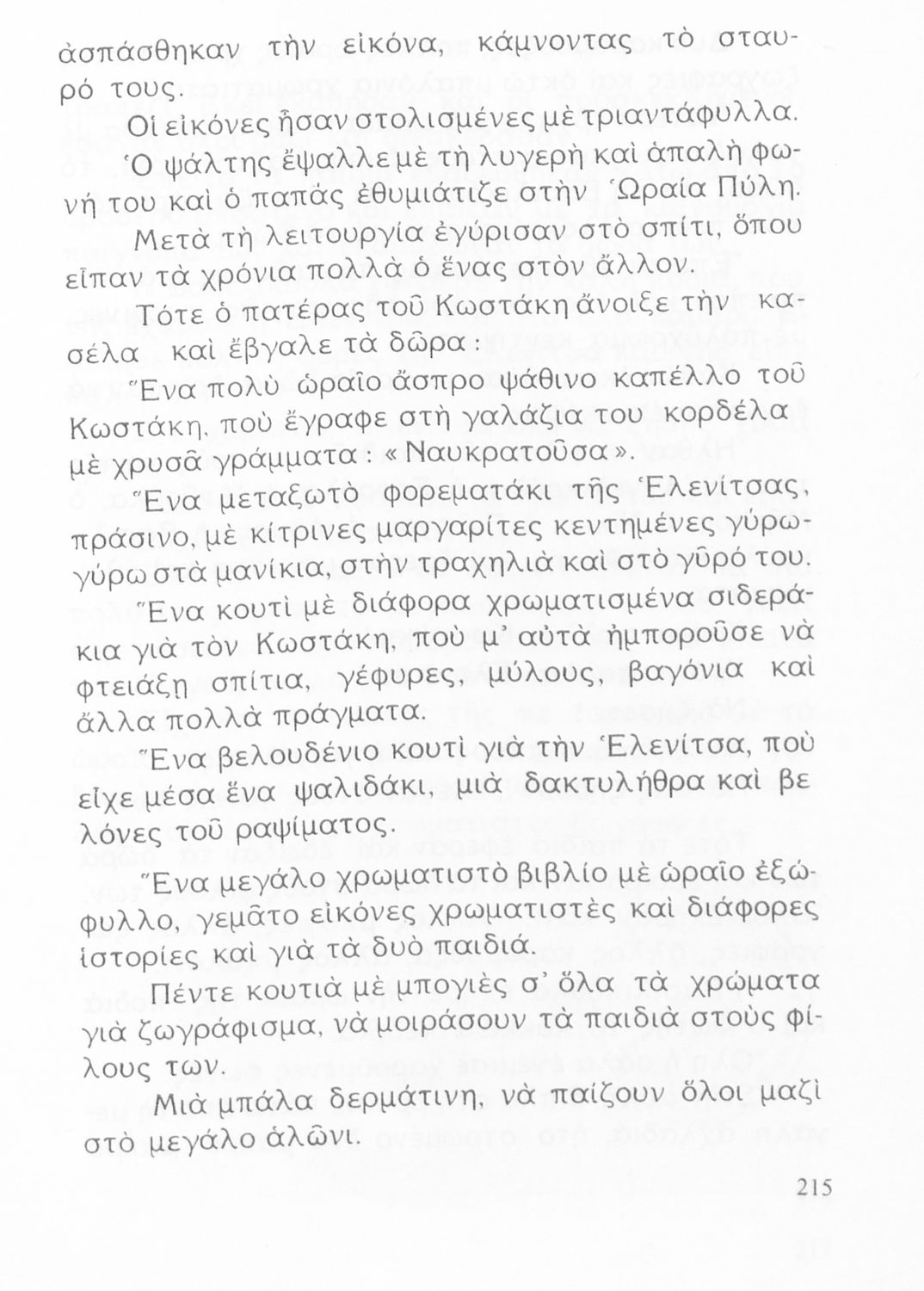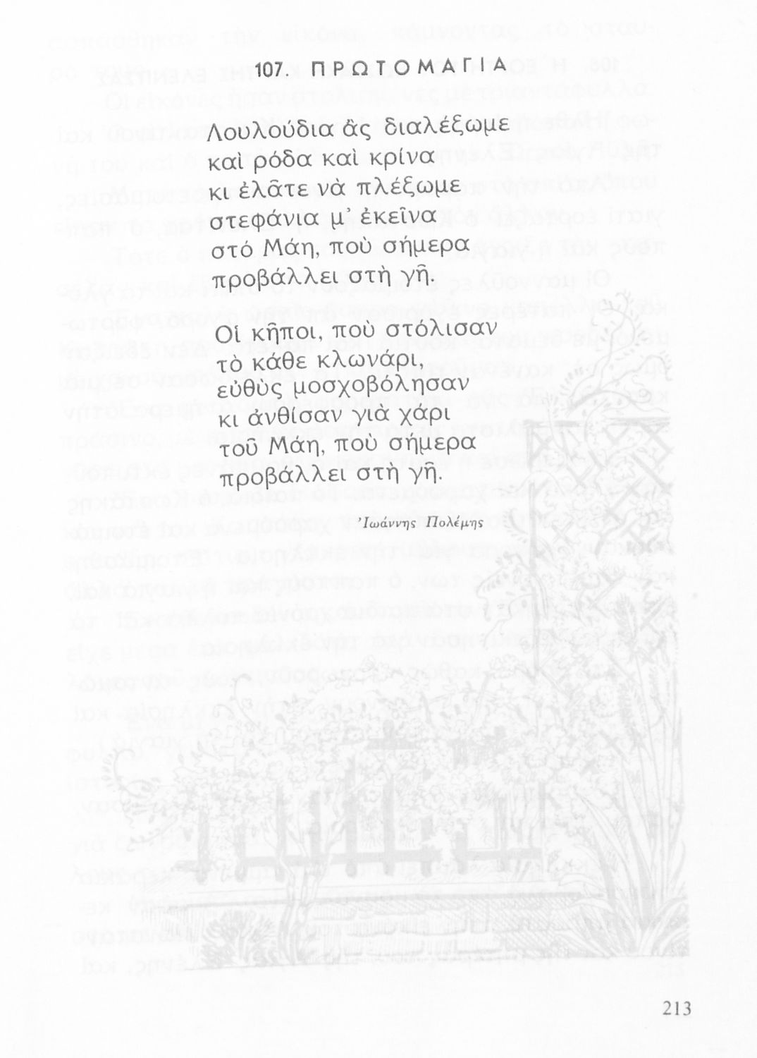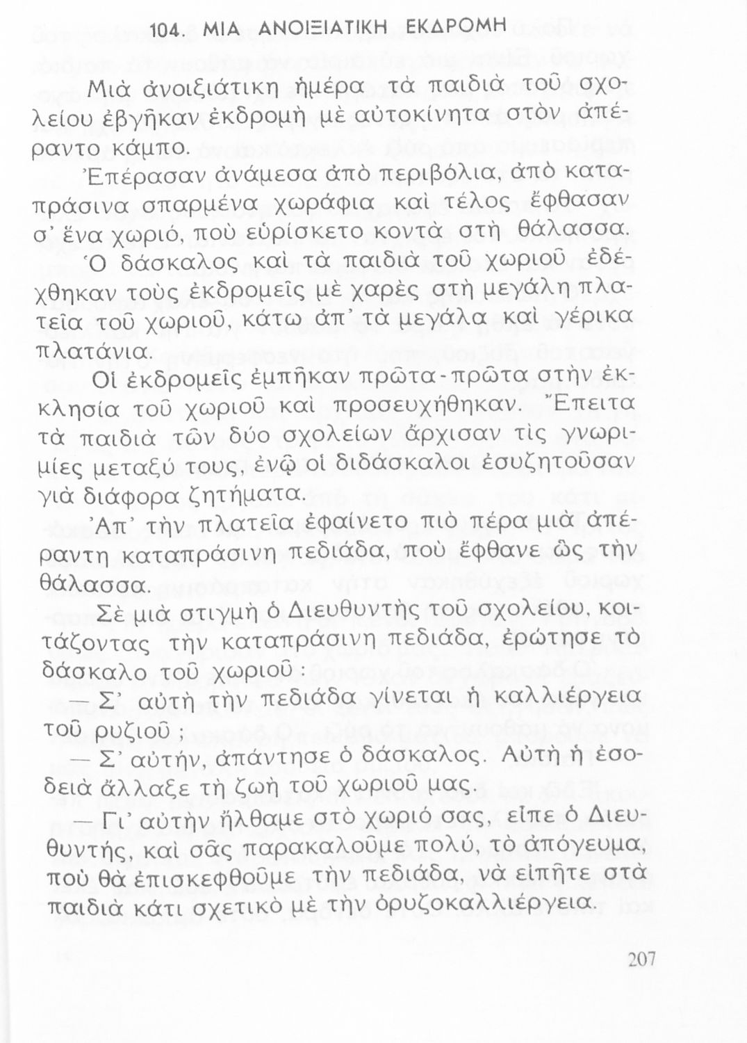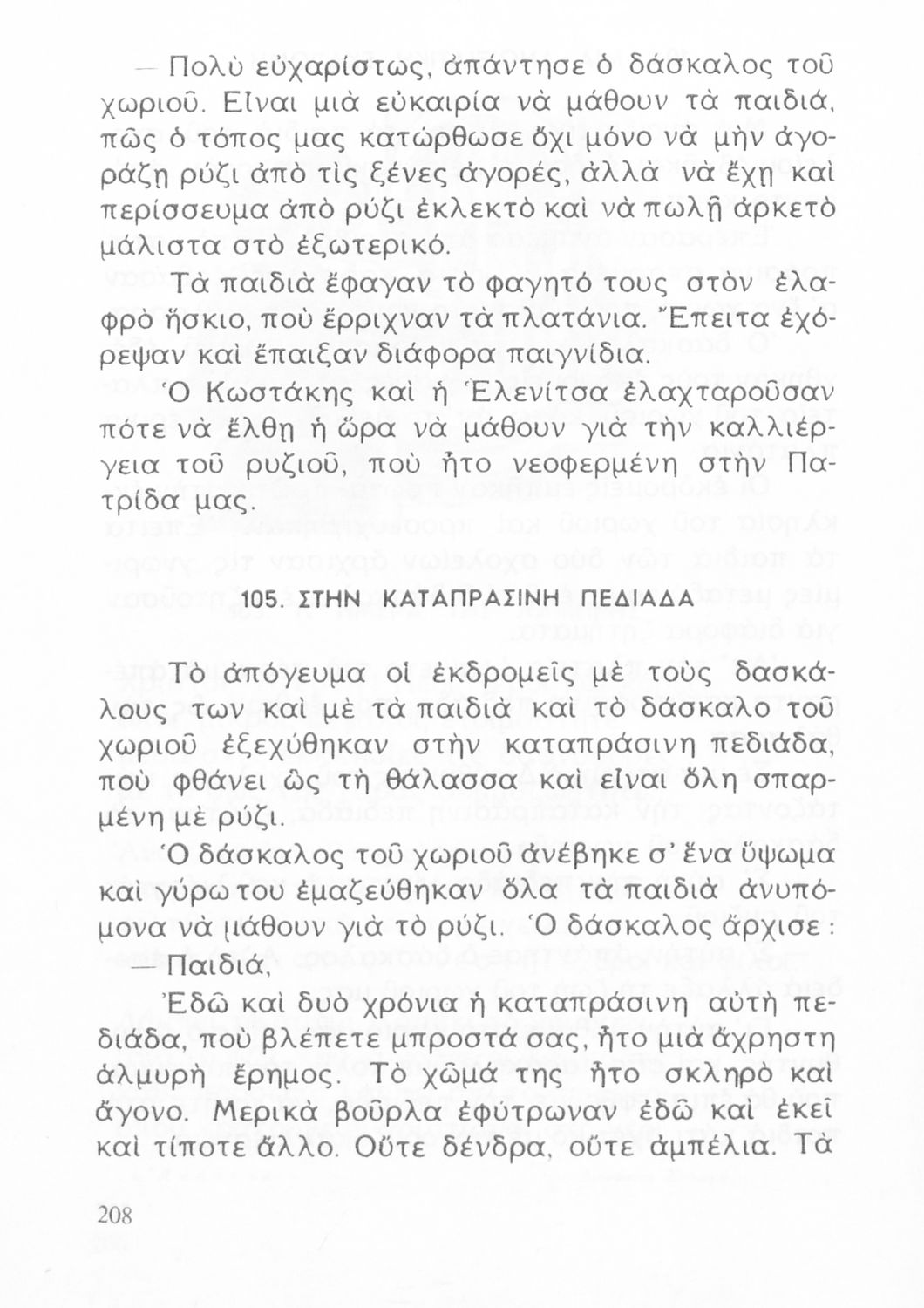 Αναγνωστικό Γ' Δημοτικού που είναι χωρισμένο σύμφωνα με τις εποχές του χρόνου και περιλαμβάνει ποιήματα και πεζά εμπνευσμένα από τη ζωή στην ύπαιθρο, την εθνική, οικογενειακή και κοινωνική ζωή, τη θρησκευτική παράδοση, τις ασχολίες των ανθρώπων, και την ελληνική φύση.