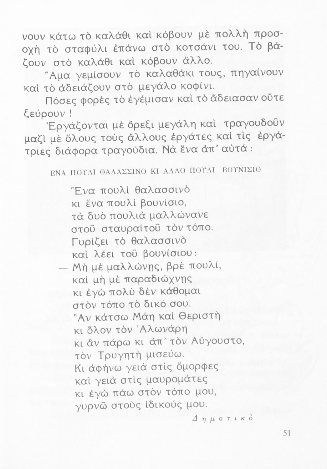 Αναγνωστικό της Γ΄ Δημοτικού που περιέχει πεζά και ποιήματα εμπνευσμένα από την κοινωνική και οικογενειακή ζωή του τόπου. Περιλαμβάνει ερωτήσεις κατανόησης και λεξιλογικές ασκήσεις.