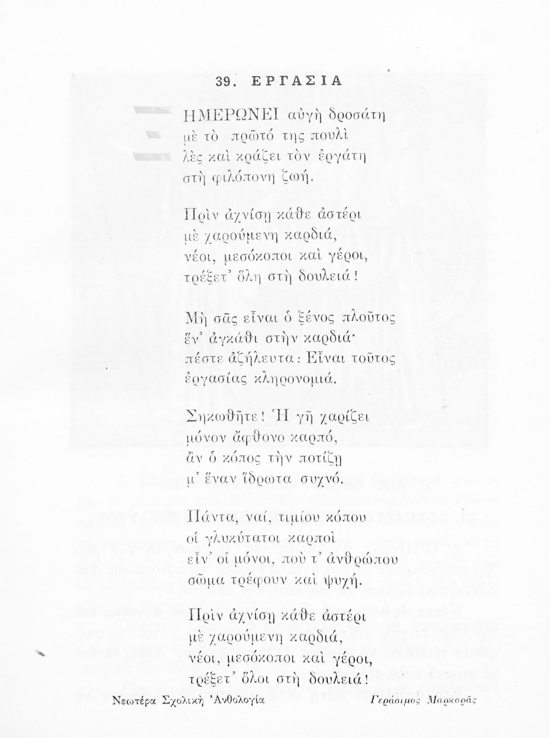 Αναγνωστικό Δ' Δημοτικού που είναι χωρισμένο σύμφωνα με τις εποχές του χρόνου και περιλαμβάνει ποιήματα και πεζά εμπνευσμένα από τη ζωή στην ύπαιθρο, την εθνική, οικογενειακή και κοινωνική ζωή, τη θρησκευτική παράδοση, τις ασχολίες των ανθρώπων, και την ελληνική φύση, ιστορία και μυθολογία.