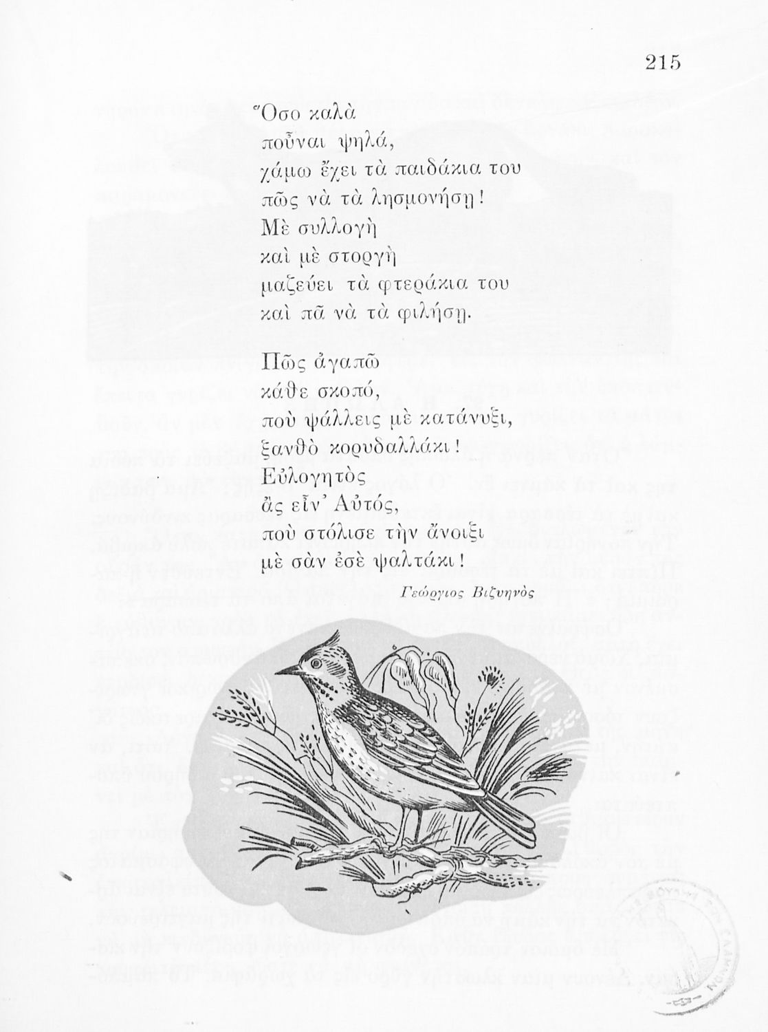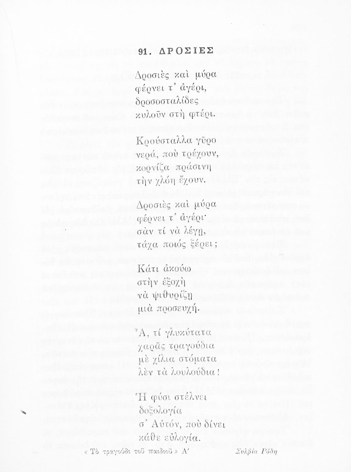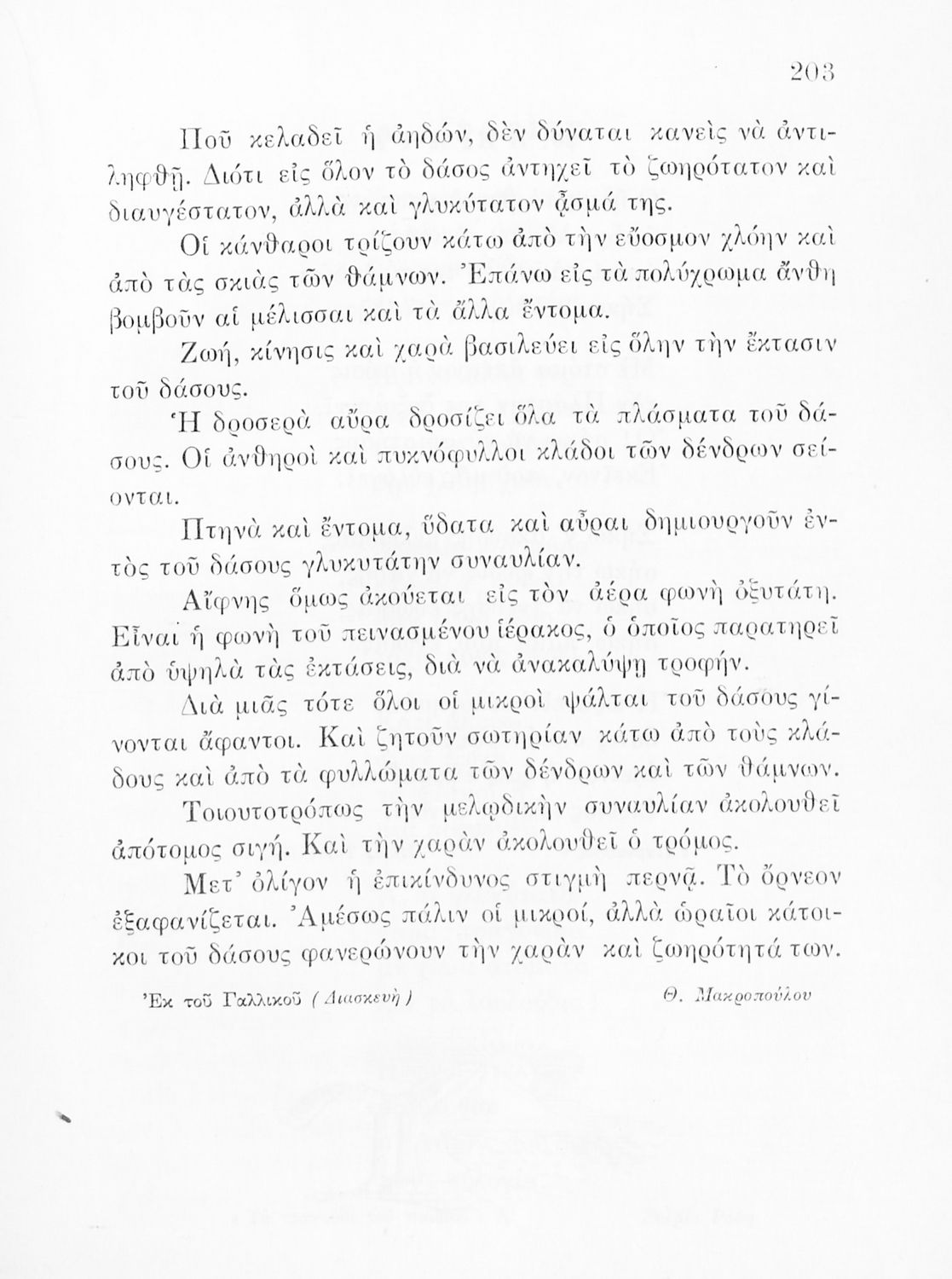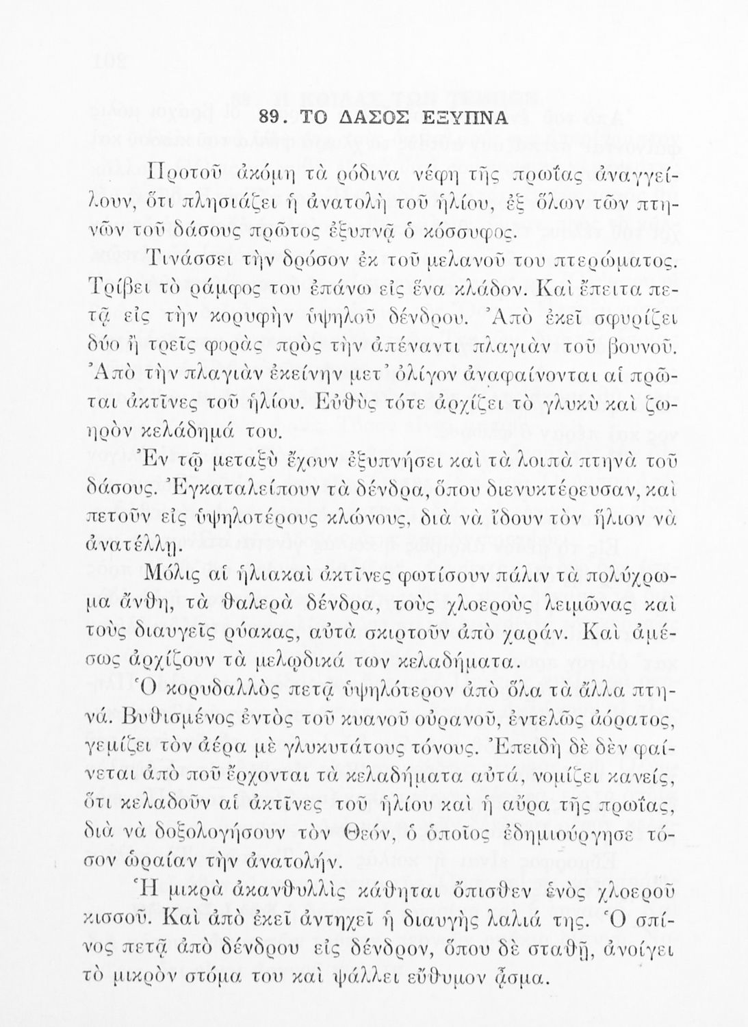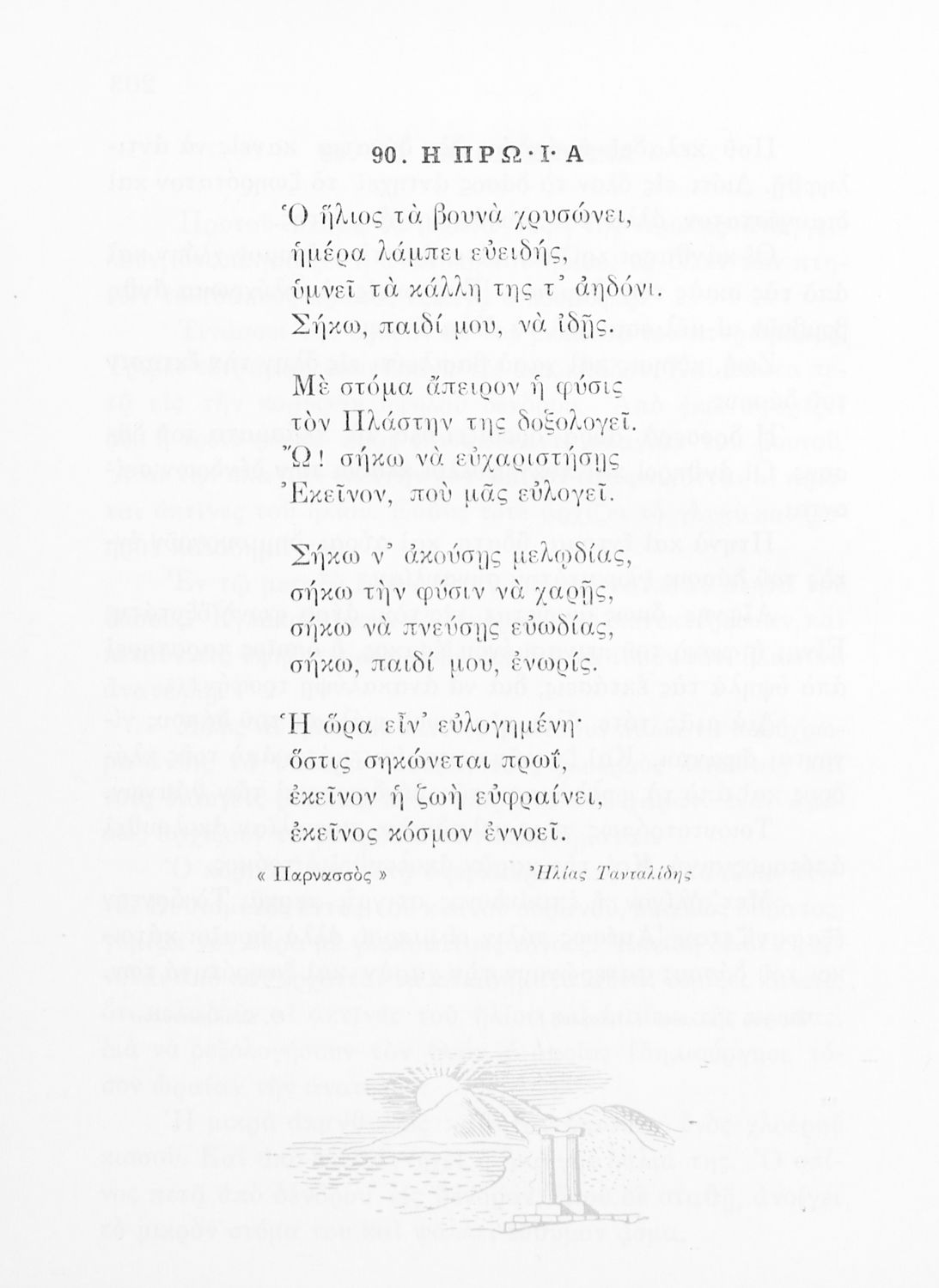 Αναγνωστικό Δ' Δημοτικού που είναι χωρισμένο σύμφωνα με τις εποχές του χρόνου και περιλαμβάνει ποιήματα και πεζά εμπνευσμένα από τη ζωή στην ύπαιθρο, την εθνική, οικογενειακή και κοινωνική ζωή, τη θρησκευτική παράδοση, τις ασχολίες των ανθρώπων, και την ελληνική φύση, ιστορία και μυθολογία.