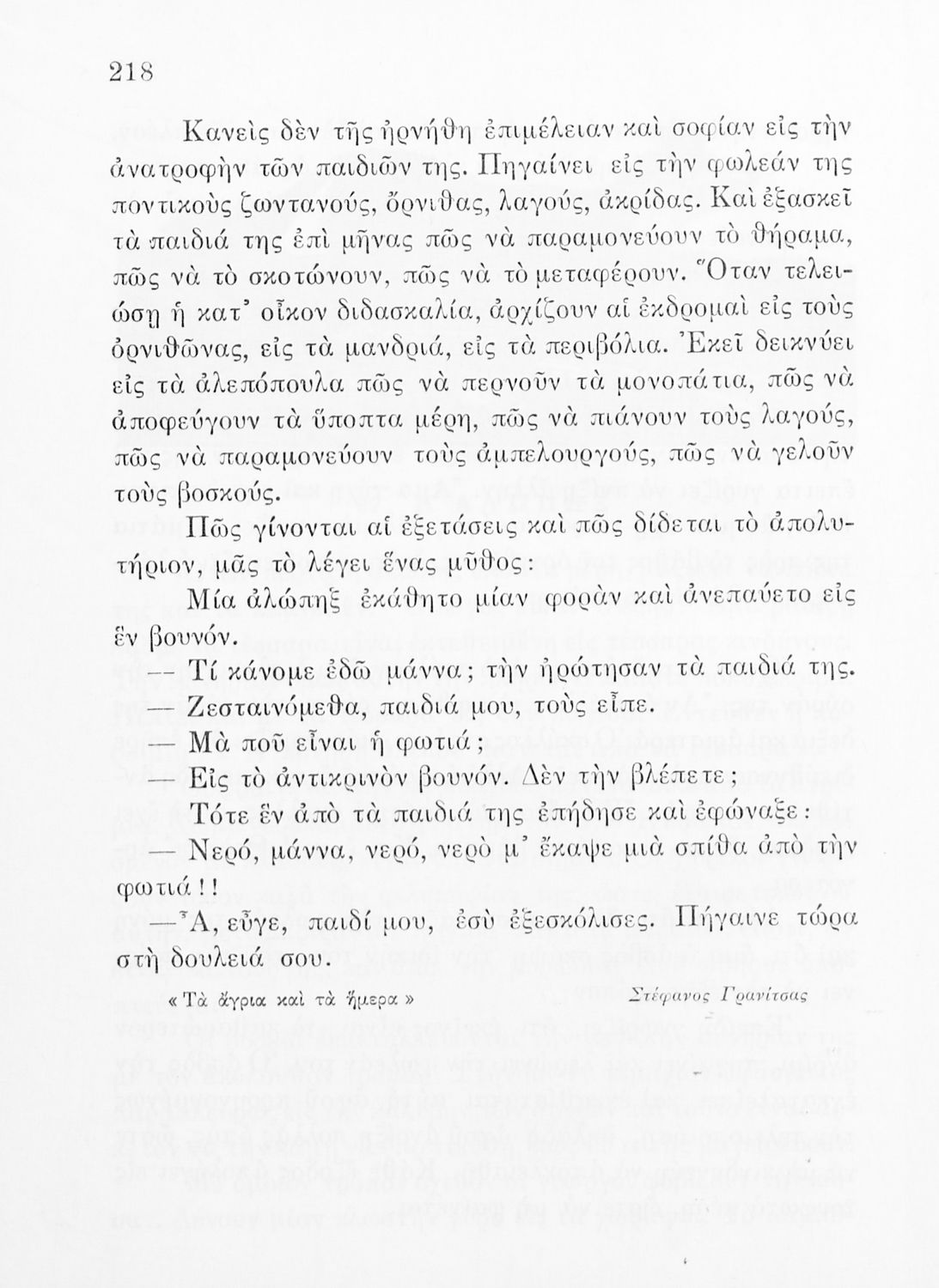 Αναγνωστικό Δ' Δημοτικού που είναι χωρισμένο σύμφωνα με τις εποχές του χρόνου και περιλαμβάνει ποιήματα και πεζά εμπνευσμένα από τη ζωή στην ύπαιθρο, την εθνική, οικογενειακή και κοινωνική ζωή, τη θρησκευτική παράδοση, τις ασχολίες των ανθρώπων, και την ελληνική φύση, ιστορία και μυθολογία.