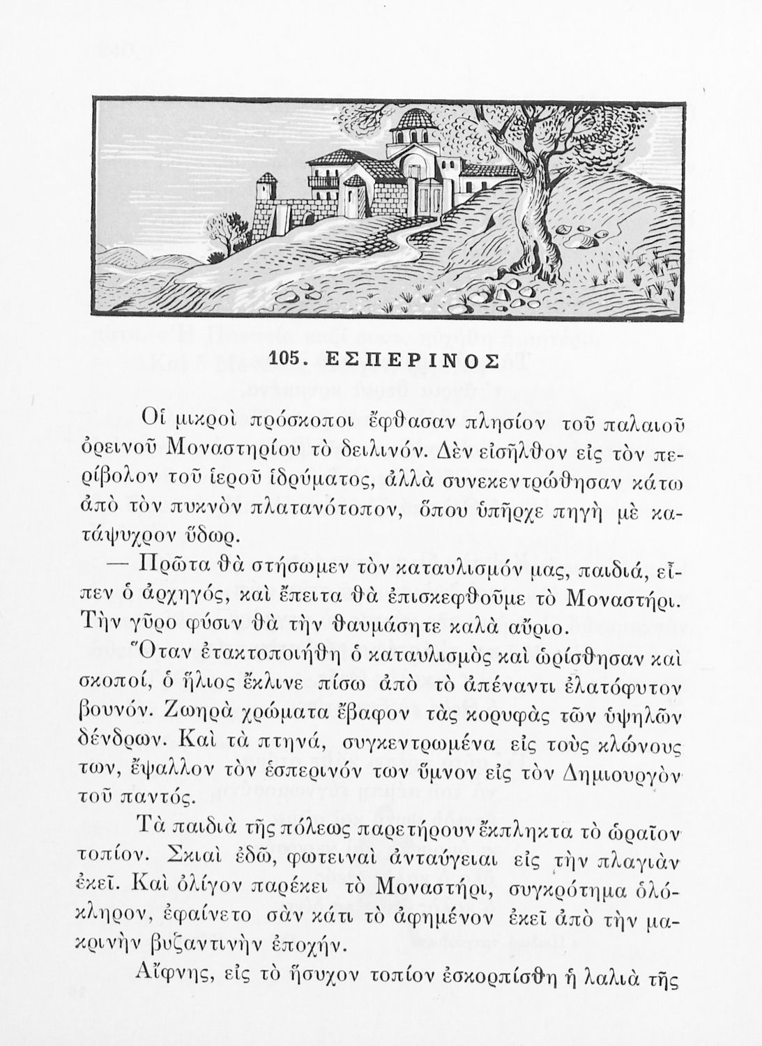 Αναγνωστικό Δ' Δημοτικού που είναι χωρισμένο σύμφωνα με τις εποχές του χρόνου και περιλαμβάνει ποιήματα και πεζά εμπνευσμένα από τη ζωή στην ύπαιθρο, την εθνική, οικογενειακή και κοινωνική ζωή, τη θρησκευτική παράδοση, τις ασχολίες των ανθρώπων, και την ελληνική φύση, ιστορία και μυθολογία.
