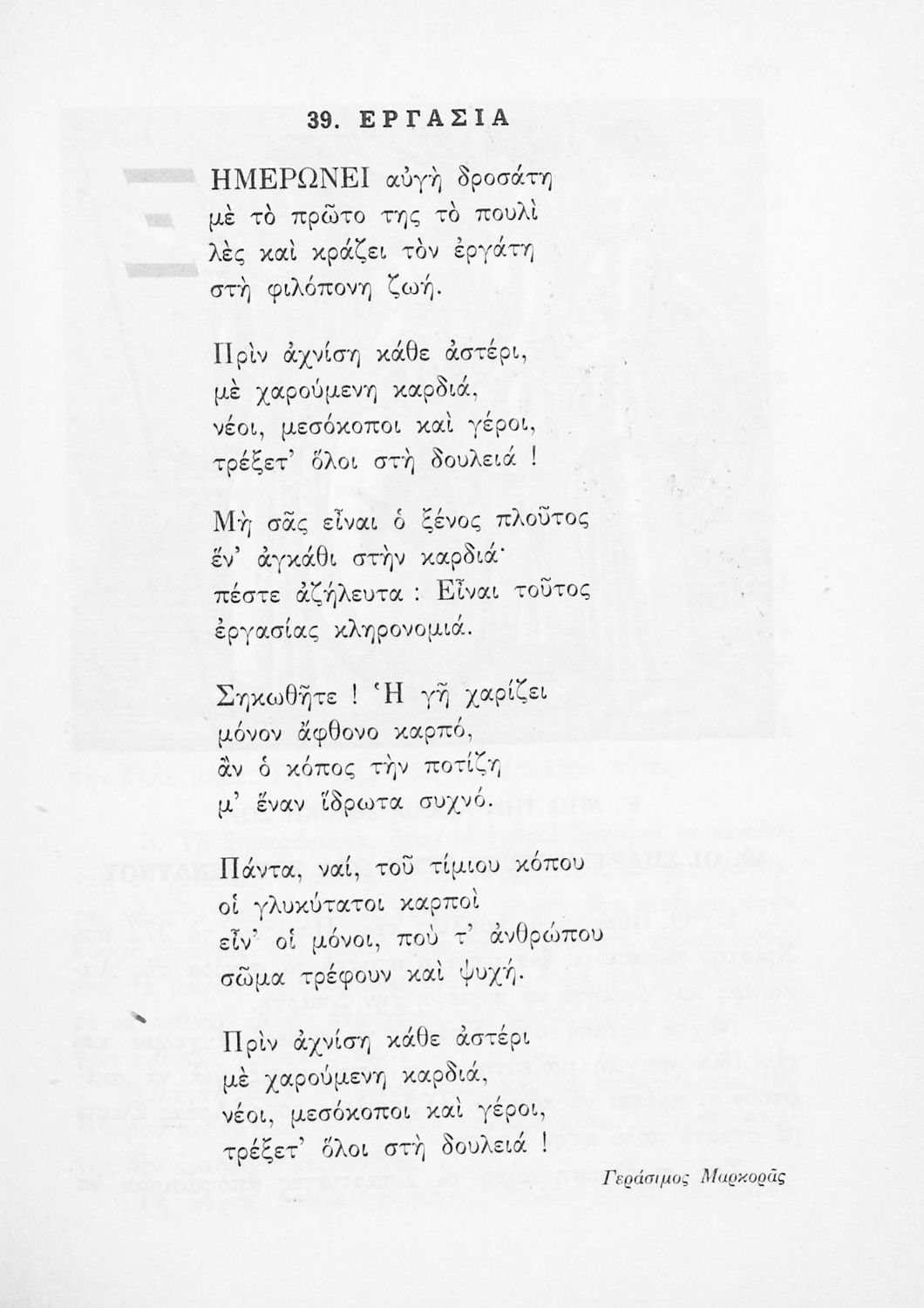 Αναγνωστικό για την Δ΄ τάξη του Δημοτικού. Περιλαμβάνει ένα κείμενο στο οποίο παρεμβάλλονται ποιήματα δημοτικά και Ελλήνων ποιητών.