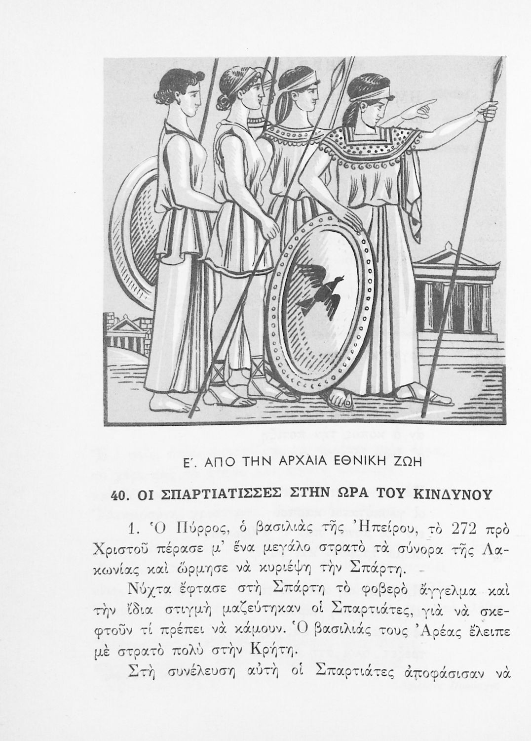 Αναγνωστικό Δ΄ Δημοτικού που περιέχει πεζά και ποιήματα εμπνευσμένα από την ελληνική ιστορία και μυθολογία, την κοινωνική ζωή και την ελληνική φύση.
